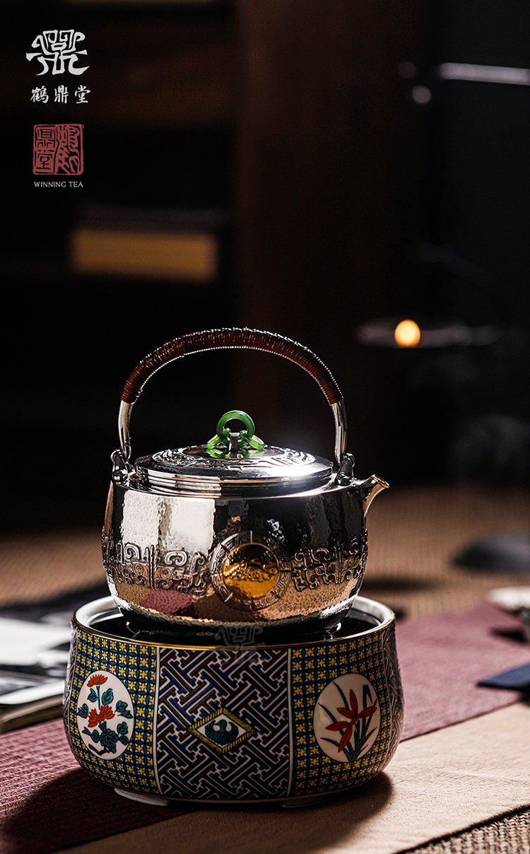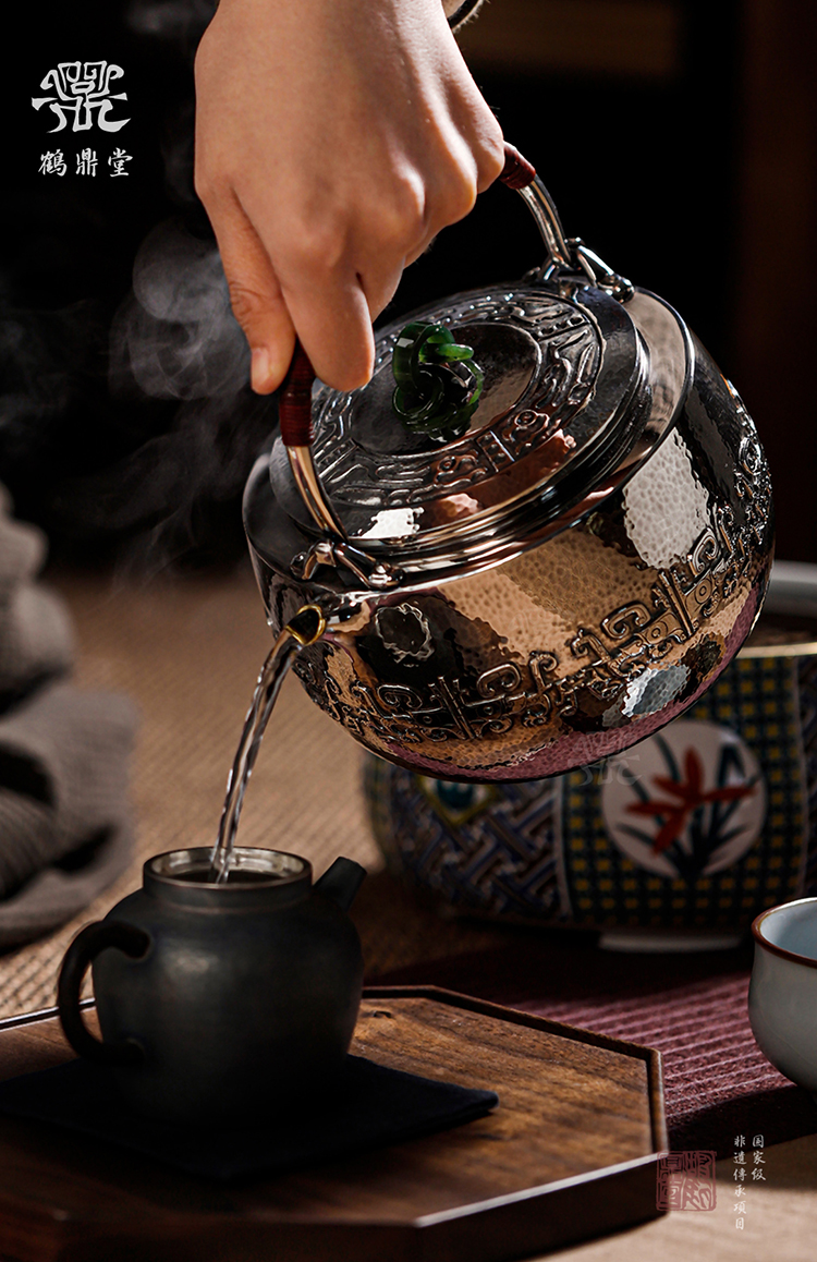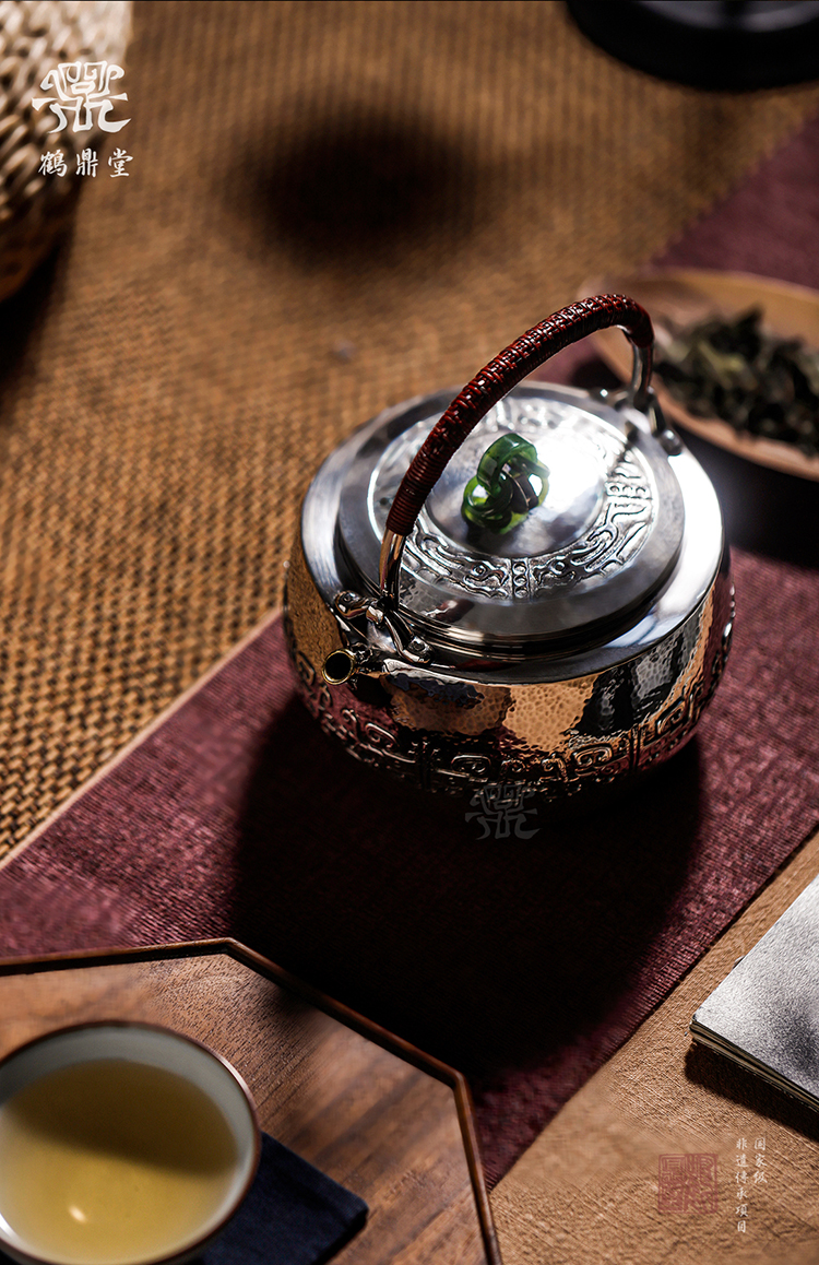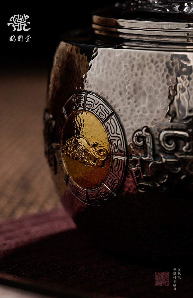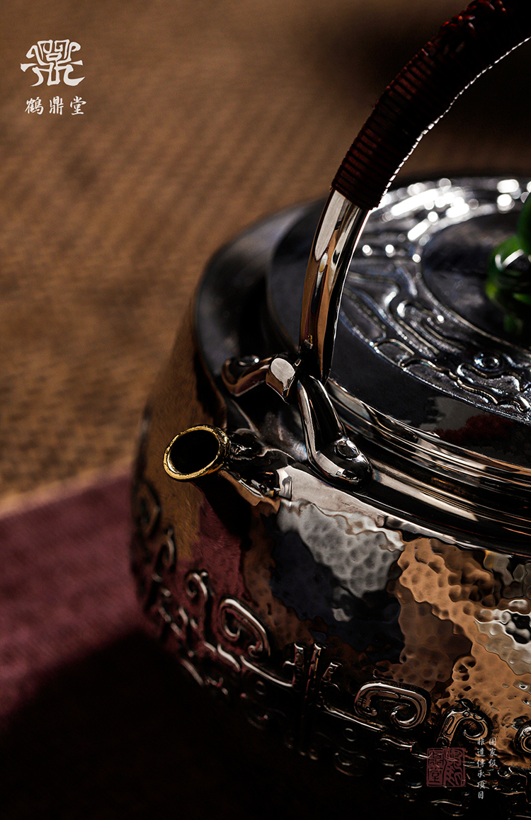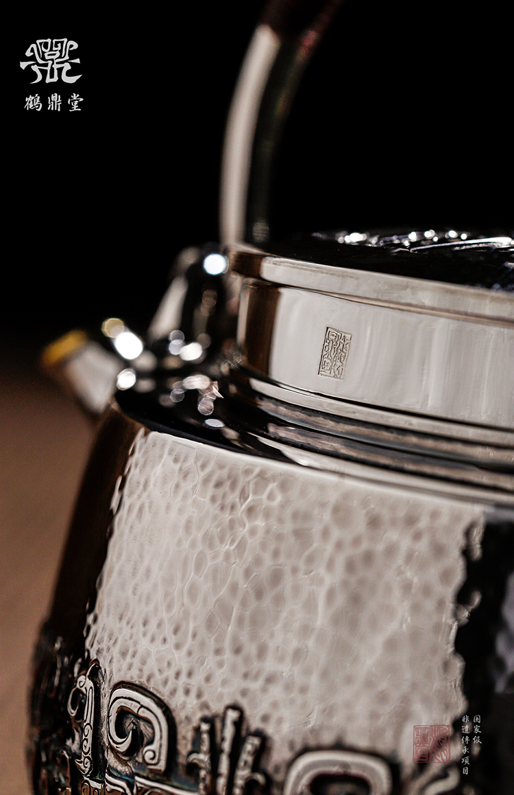 鹤鼎堂银壶闻天系列晨风汤沸錾刻饕餮纹金犀牛(银色)(缺货)