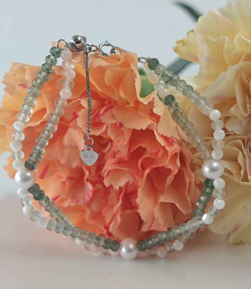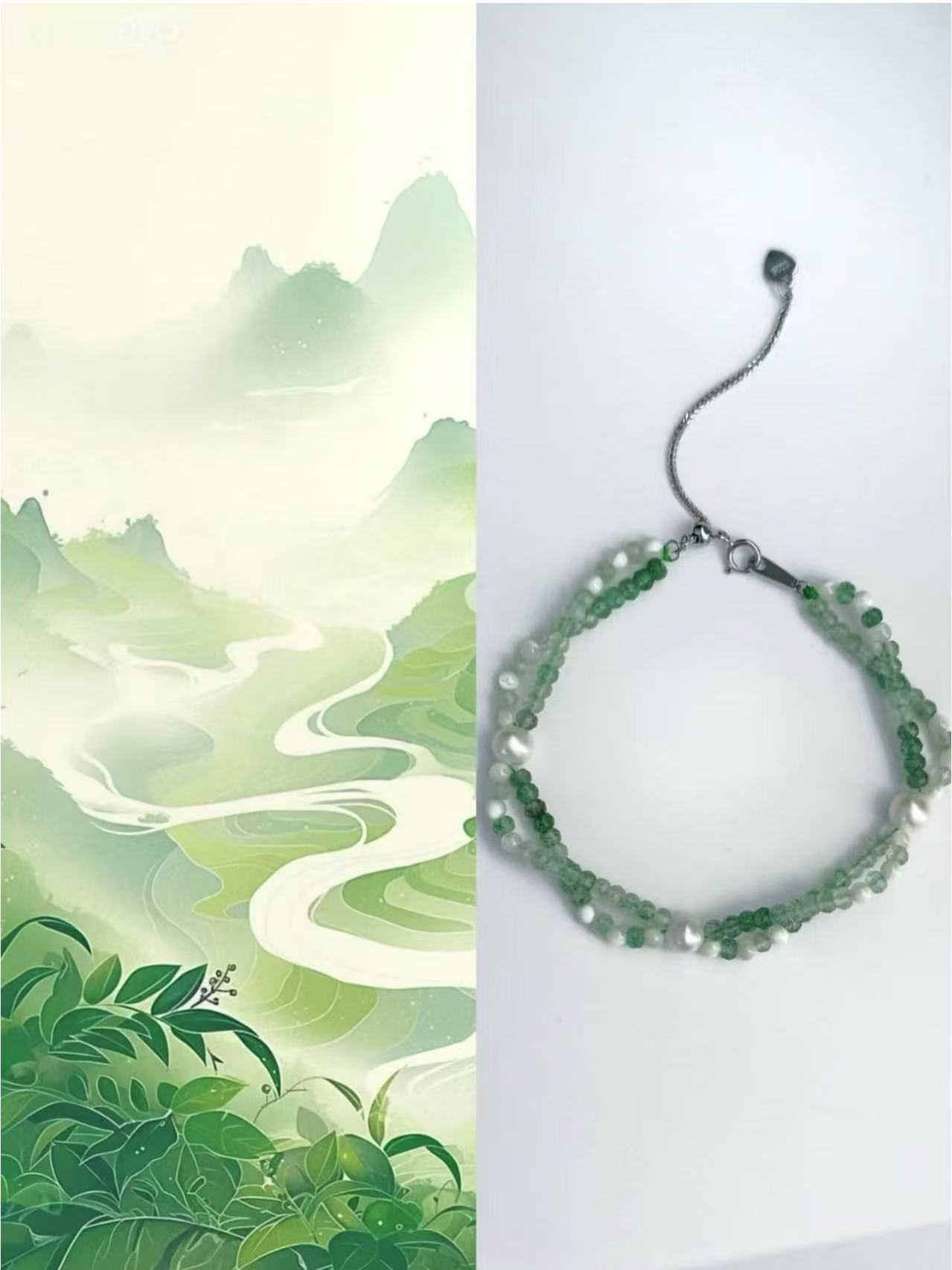 在喧嚣尘世中寻觅一方宁静天地,“青山”手链应运而生。它以清新绿珠串联,恰似青山绵延起伏,颗颗温润珍珠点缀,如云雾缭绕山间