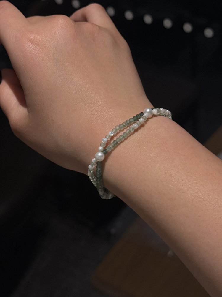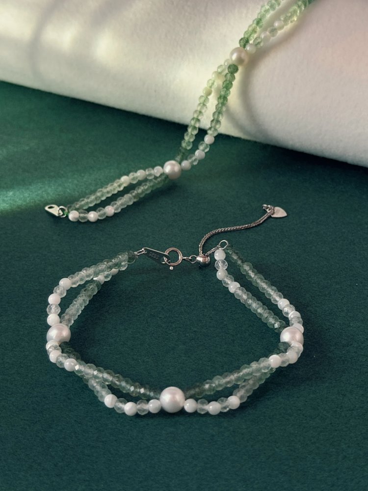 【自然与优雅的邂逅】东陵玉×珍珠叠戴手链