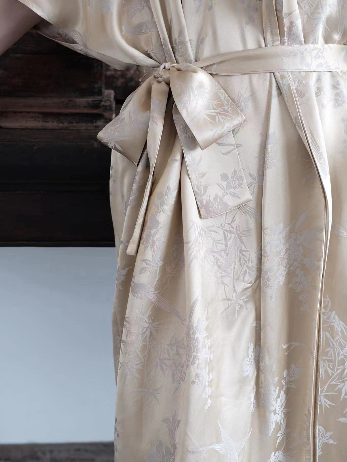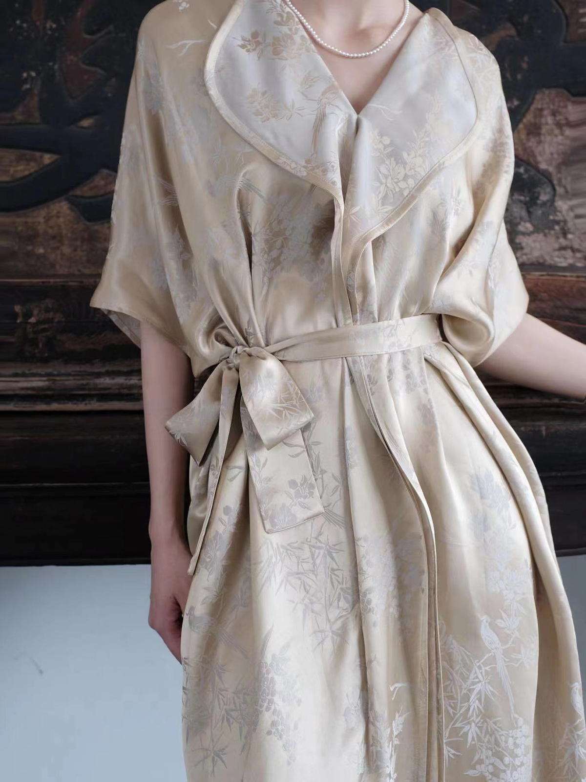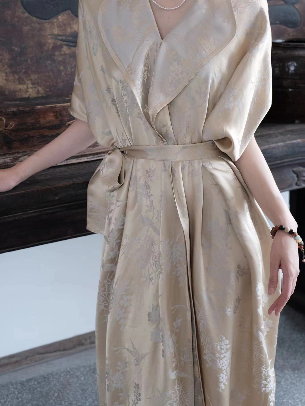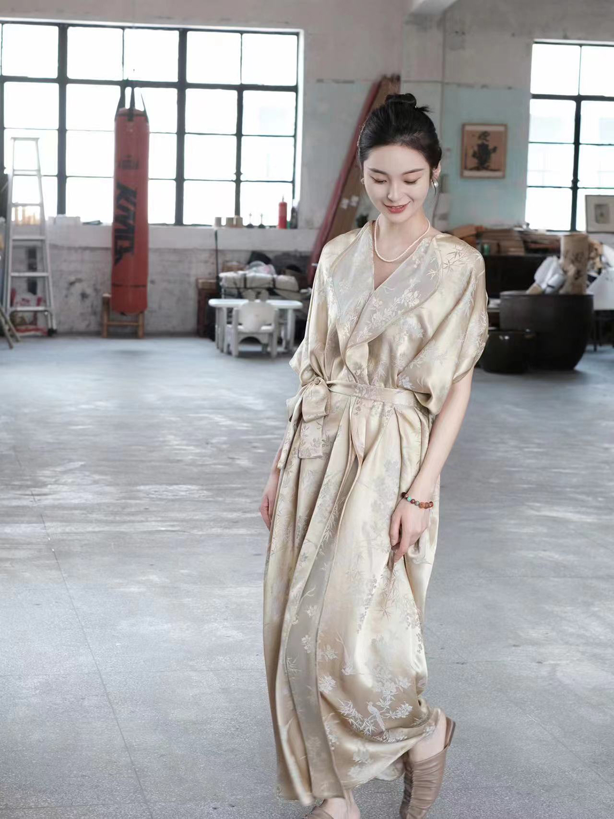 盛唐牡丹 |真丝提花香槟金喜上眉梢连衣裙(配腰带)