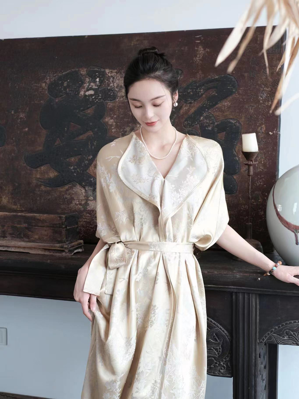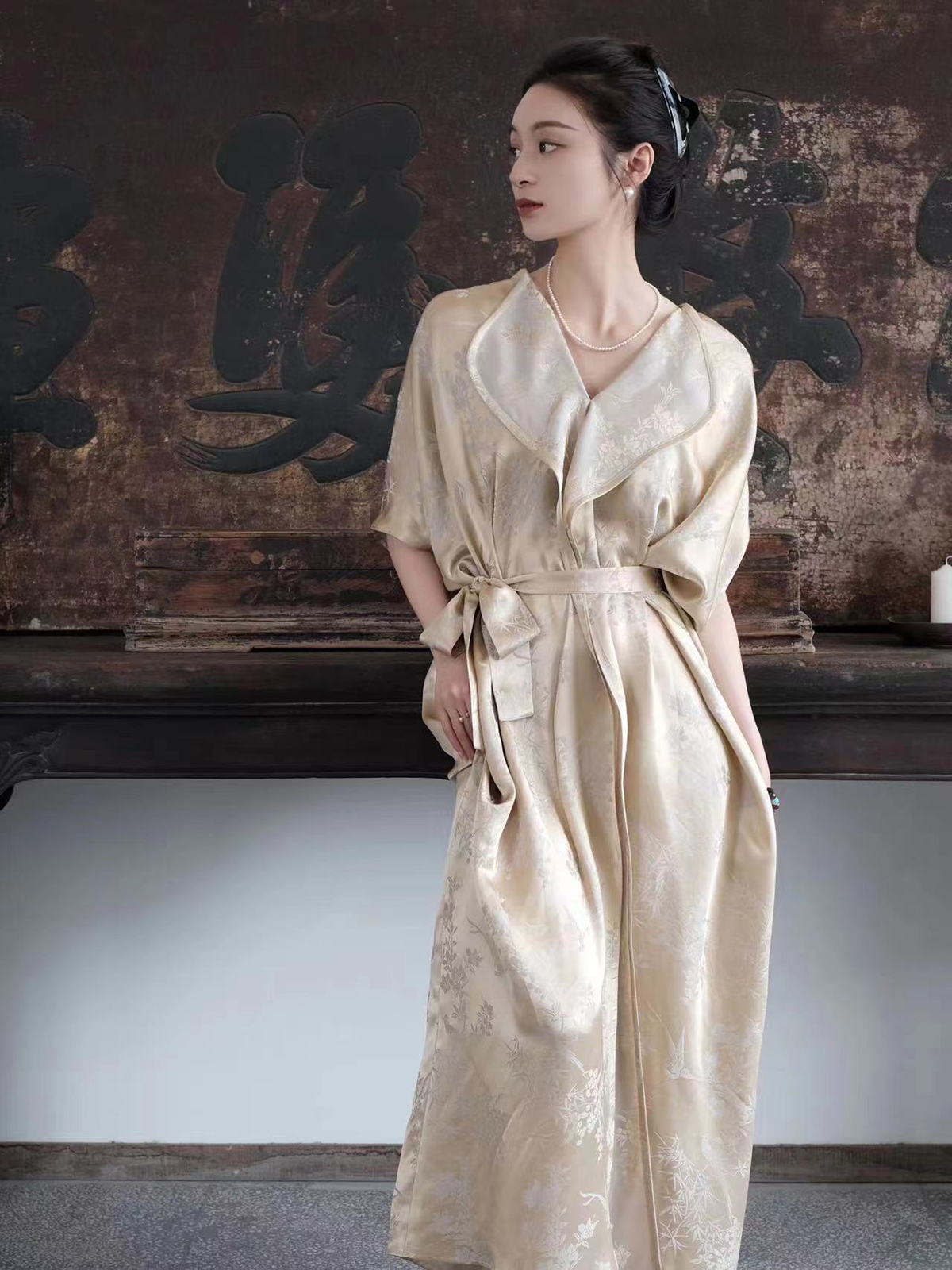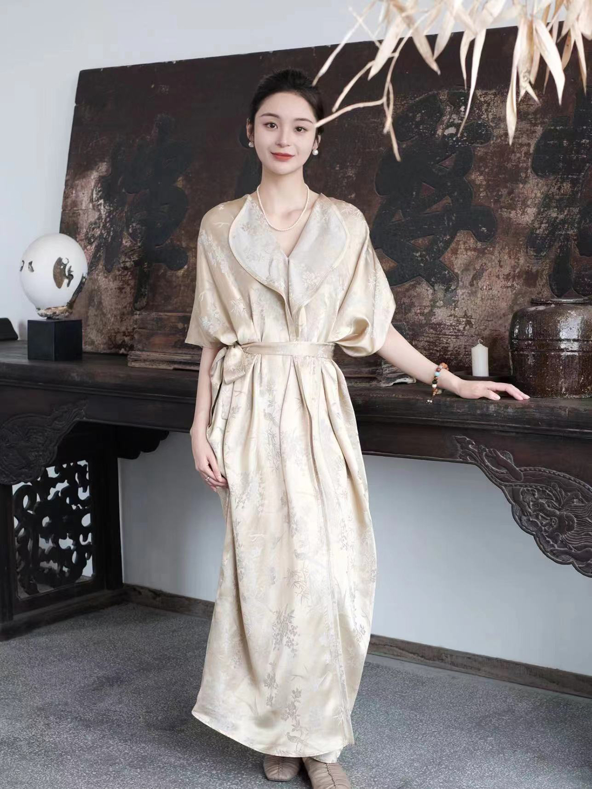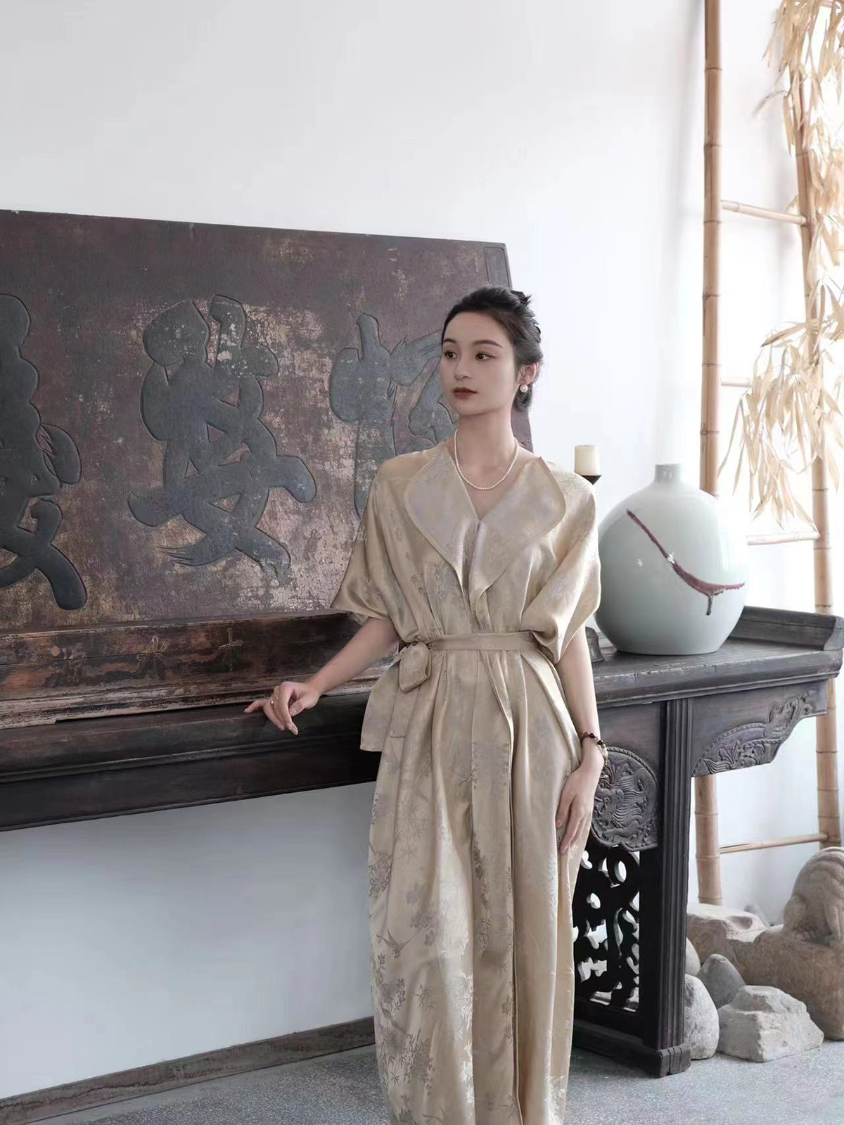 盛唐牡丹 |真丝提花香槟金喜上眉梢连衣裙(配腰带)