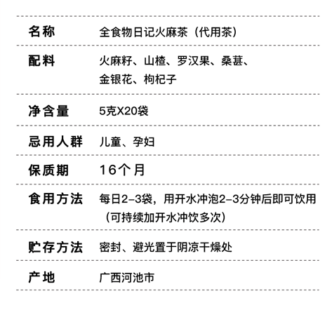 全食物日记 T1火麻茶 5g*20袋
