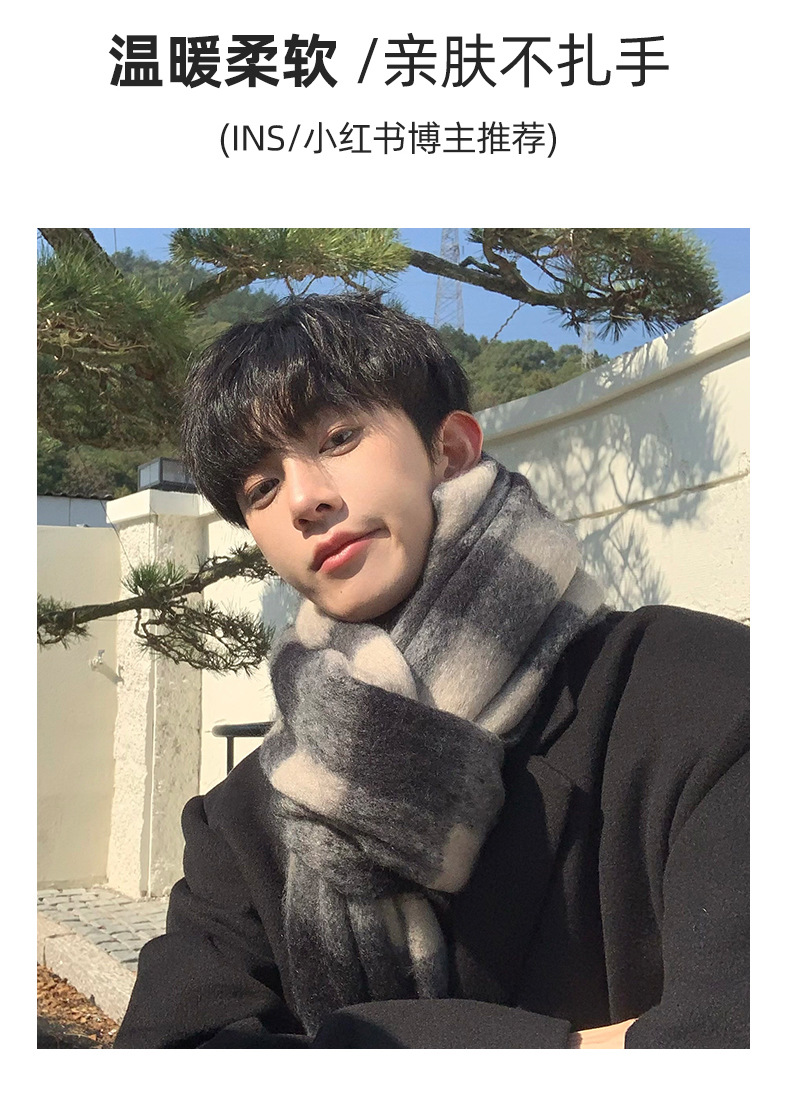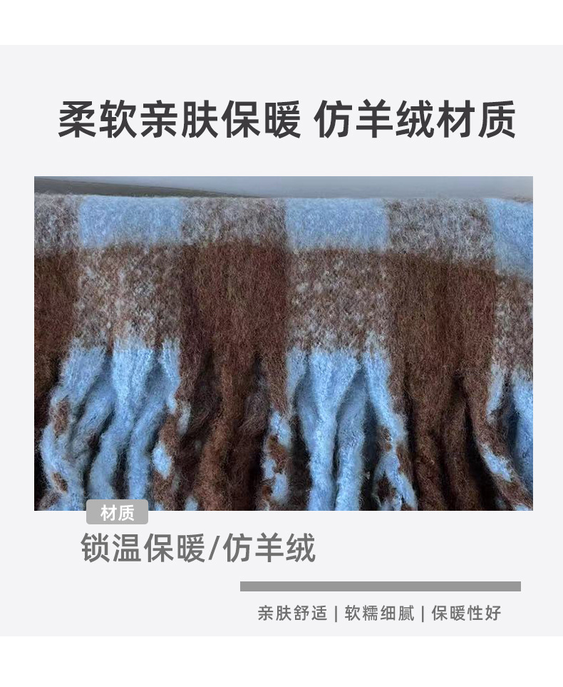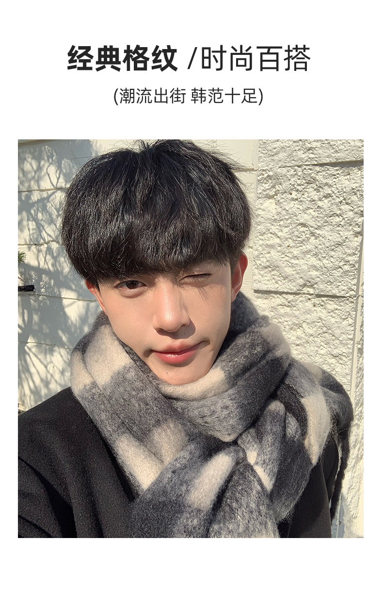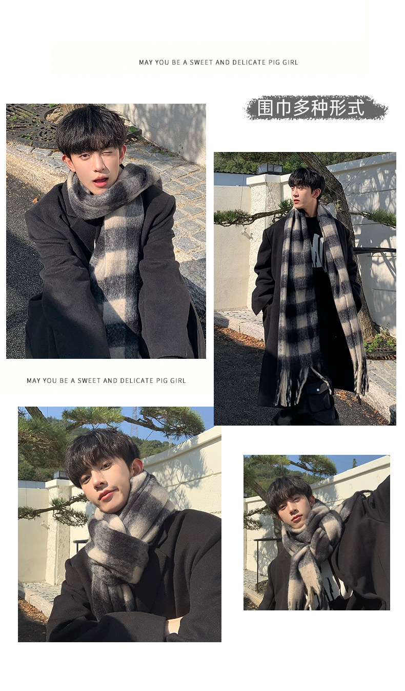 【保暖百搭❗️马海毛格子围巾】温暖柔软,秋冬御寒,黑白女冬季韩系氛围感加厚仿羊绒围脖男生女生