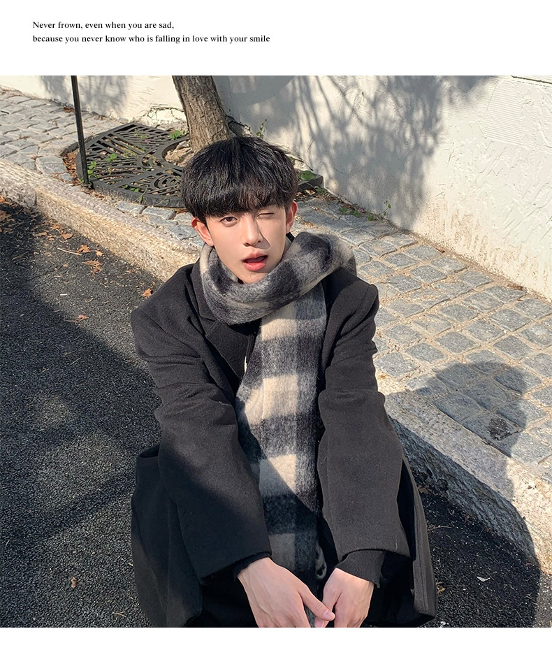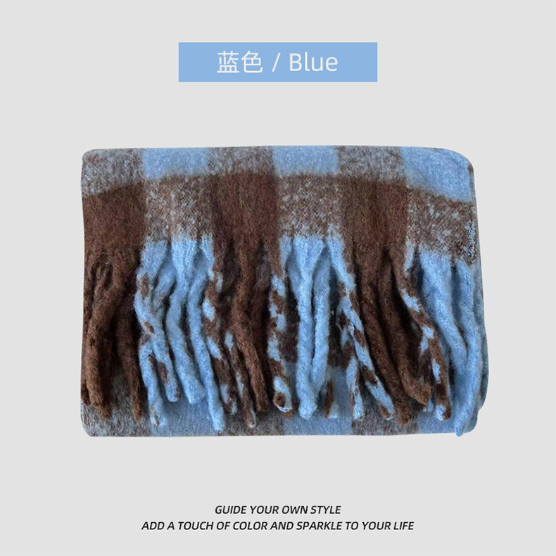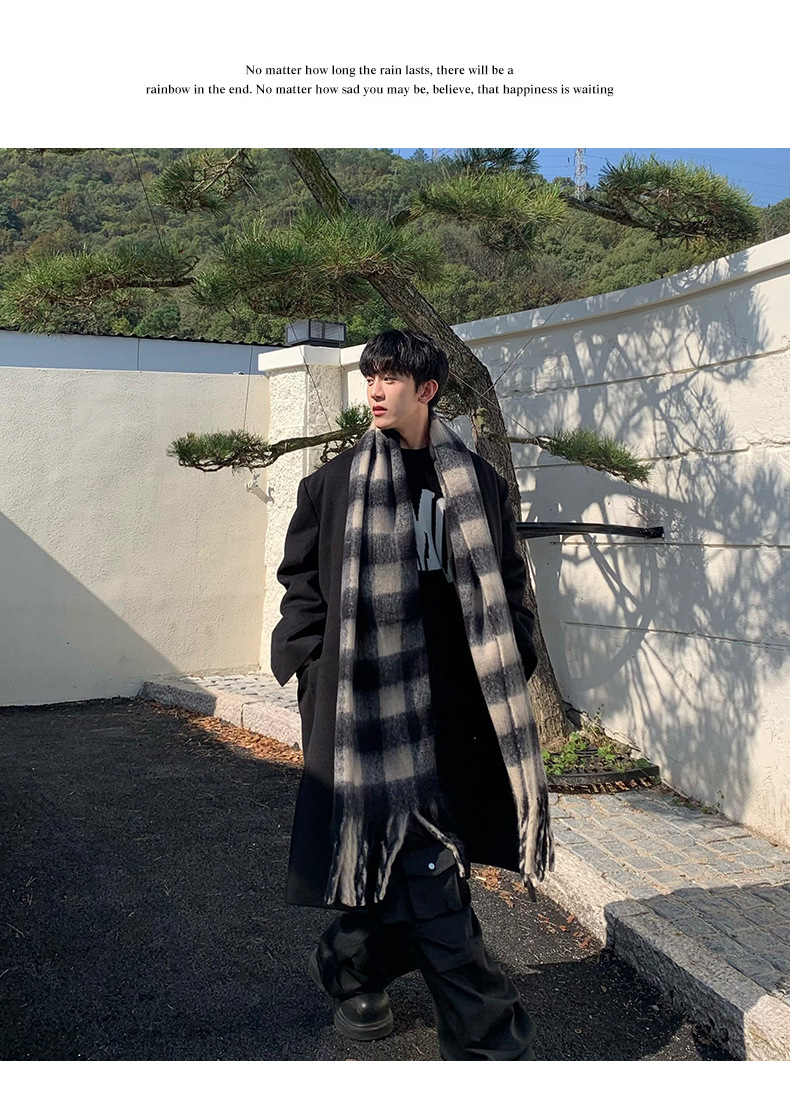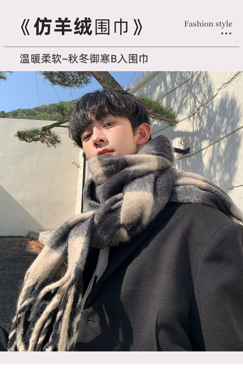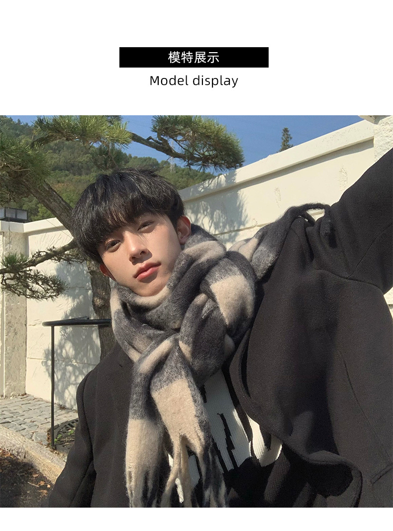 【保暖百搭❗️马海毛格子围巾】温暖柔软,秋冬御寒,黑白女冬季韩系氛围感加厚仿羊绒围脖男生女生