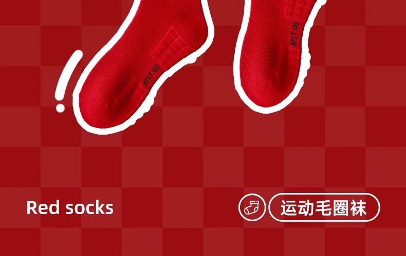 【行好运❗️加厚毛巾底红袜子】云般轻盈,细腻贴肤,2026马年本命年女士男士纯秋冬男袜篮球运动长筒袜棉