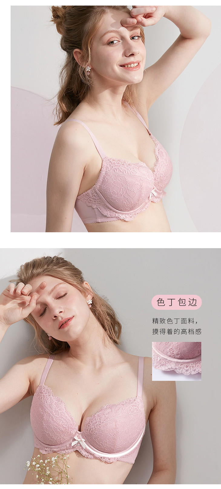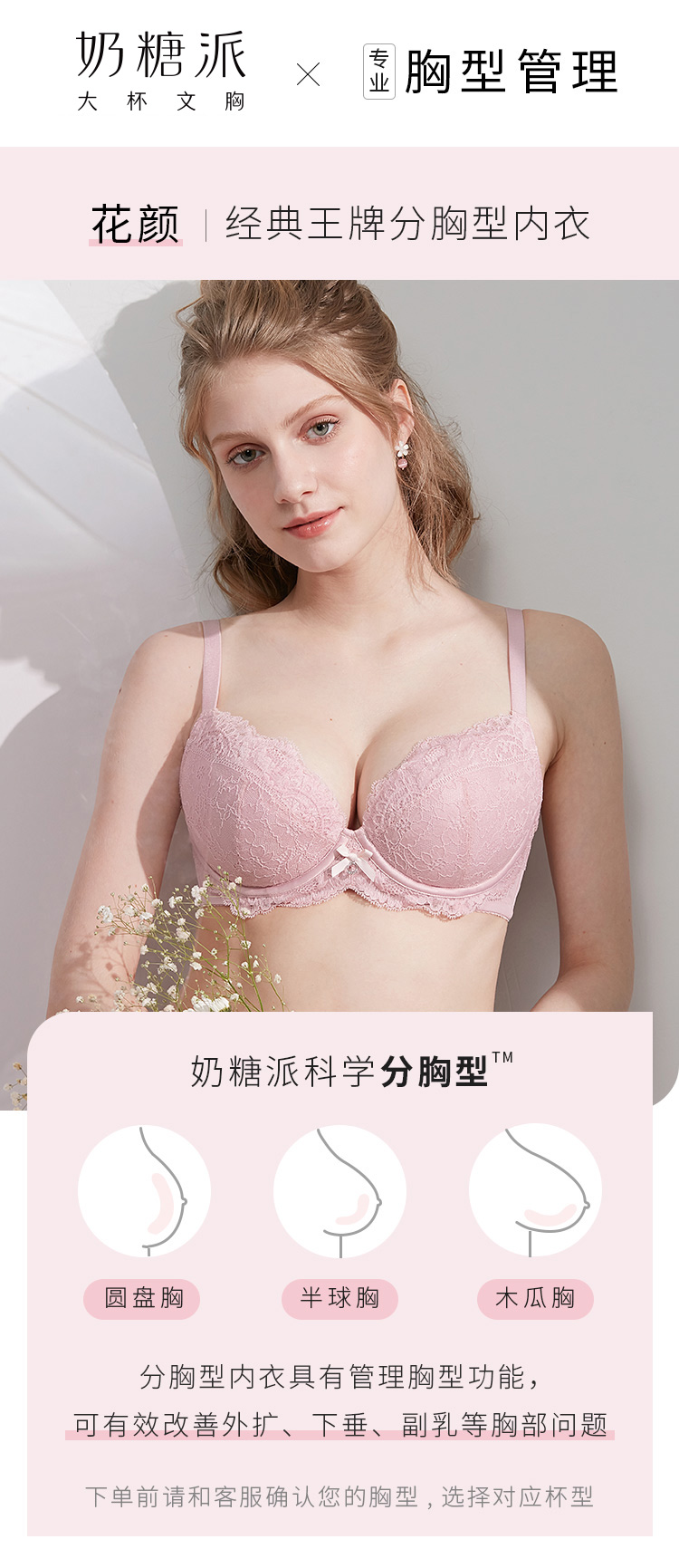奶糖派大罩杯文胸花颜蕾丝春夏薄款透气上托侧收稳定女大码内衣圆盘半球木瓜