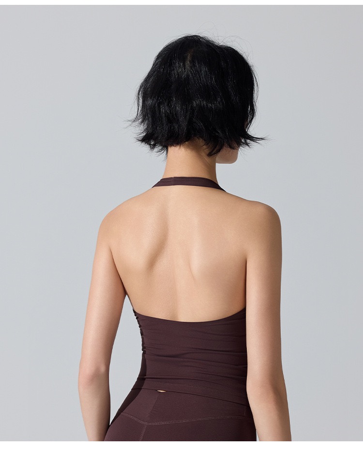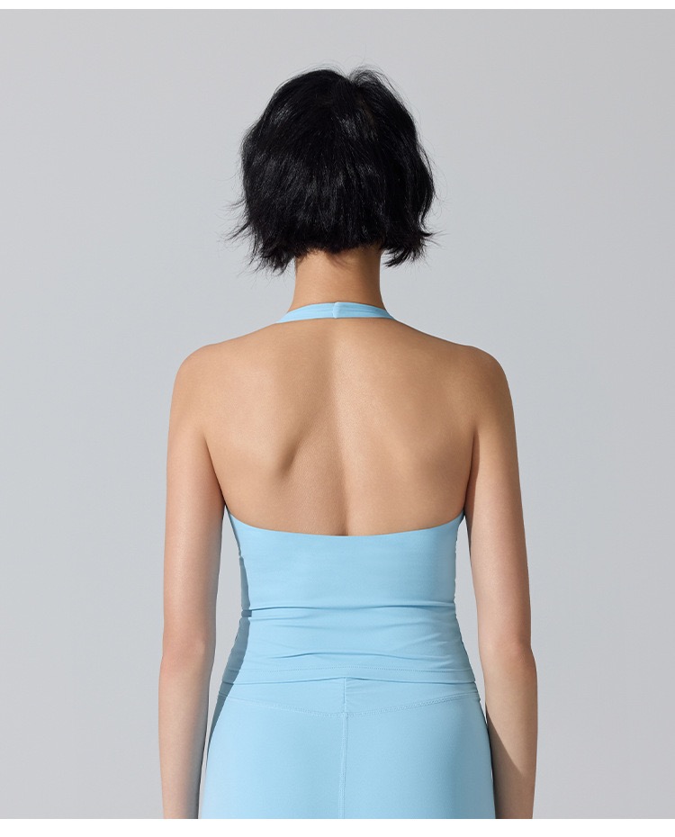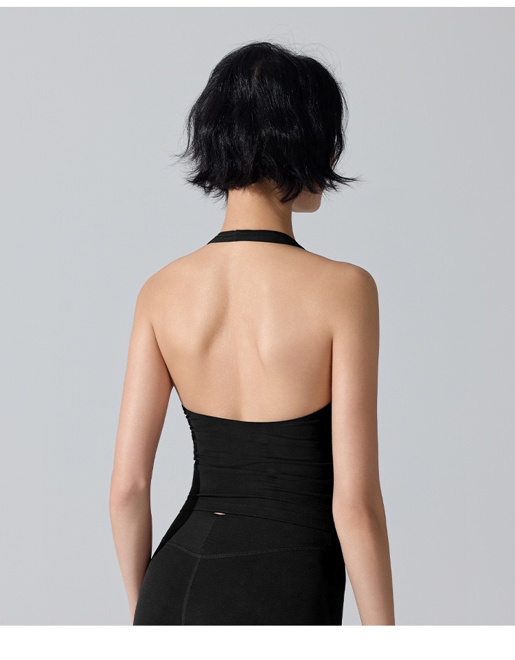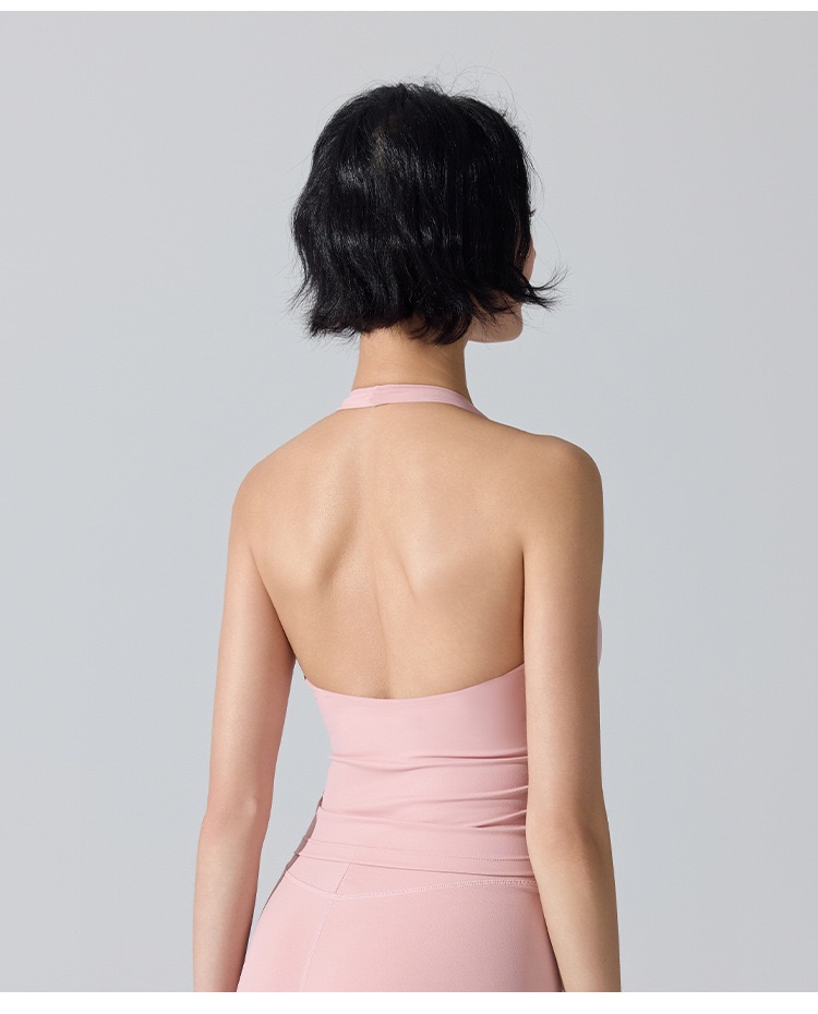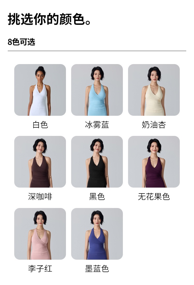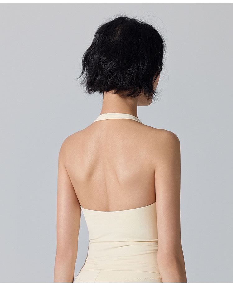 新款欧美挂脖内搭瑜伽无痕背心女V领显胸聚拢跑步运动美背健身服 000JLYW446
