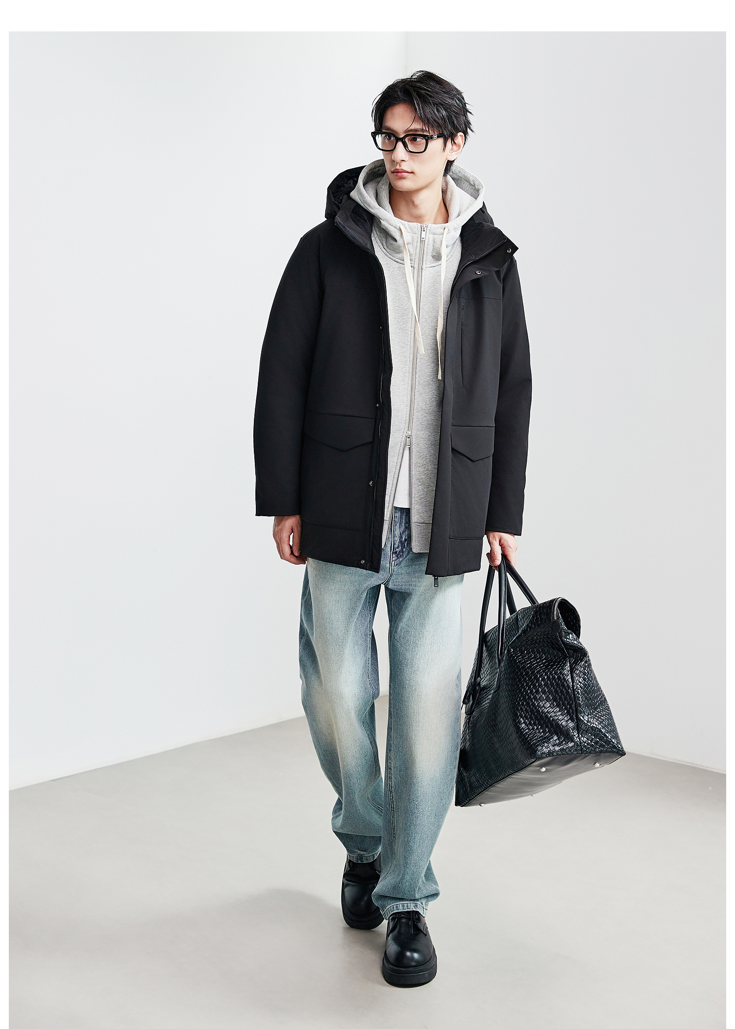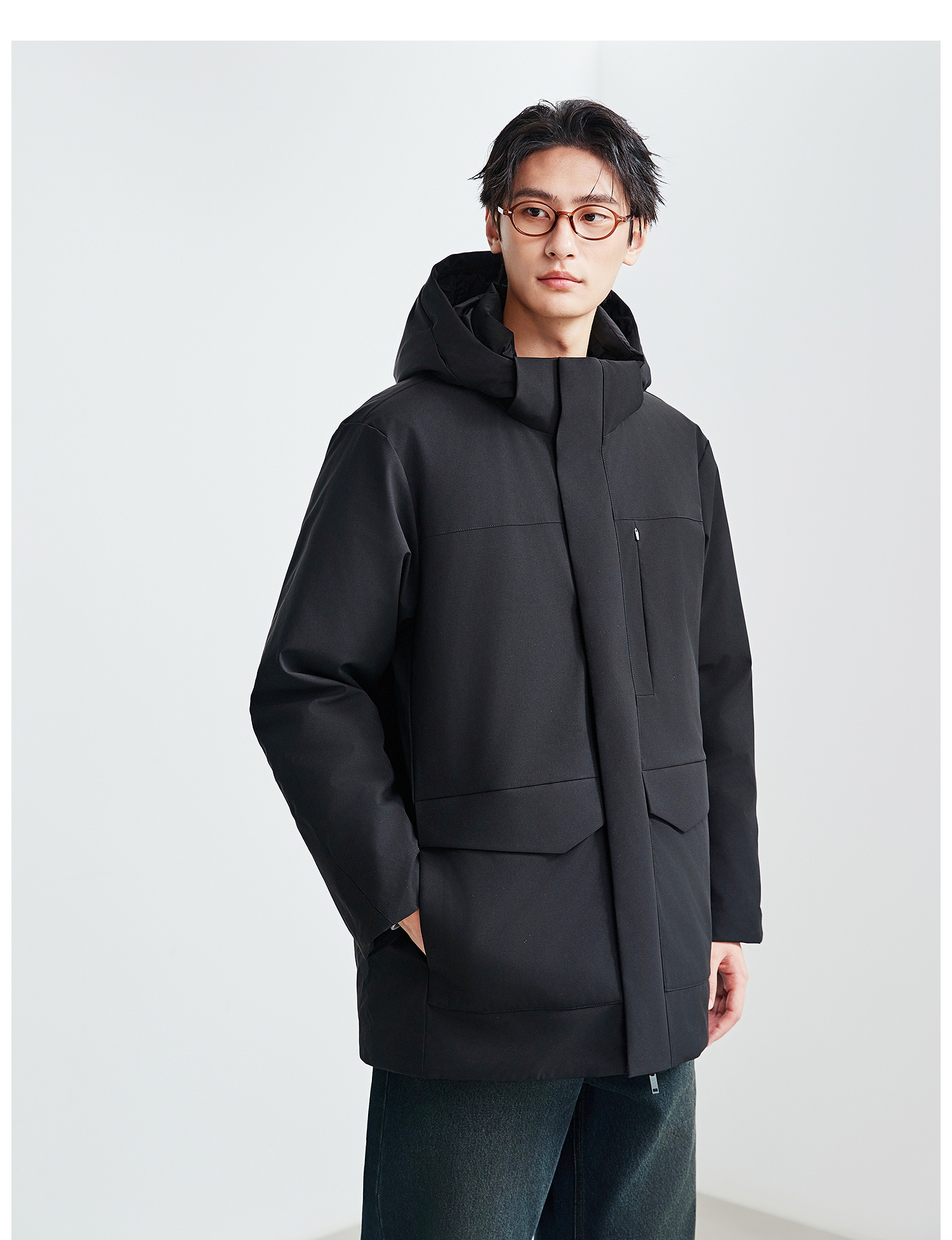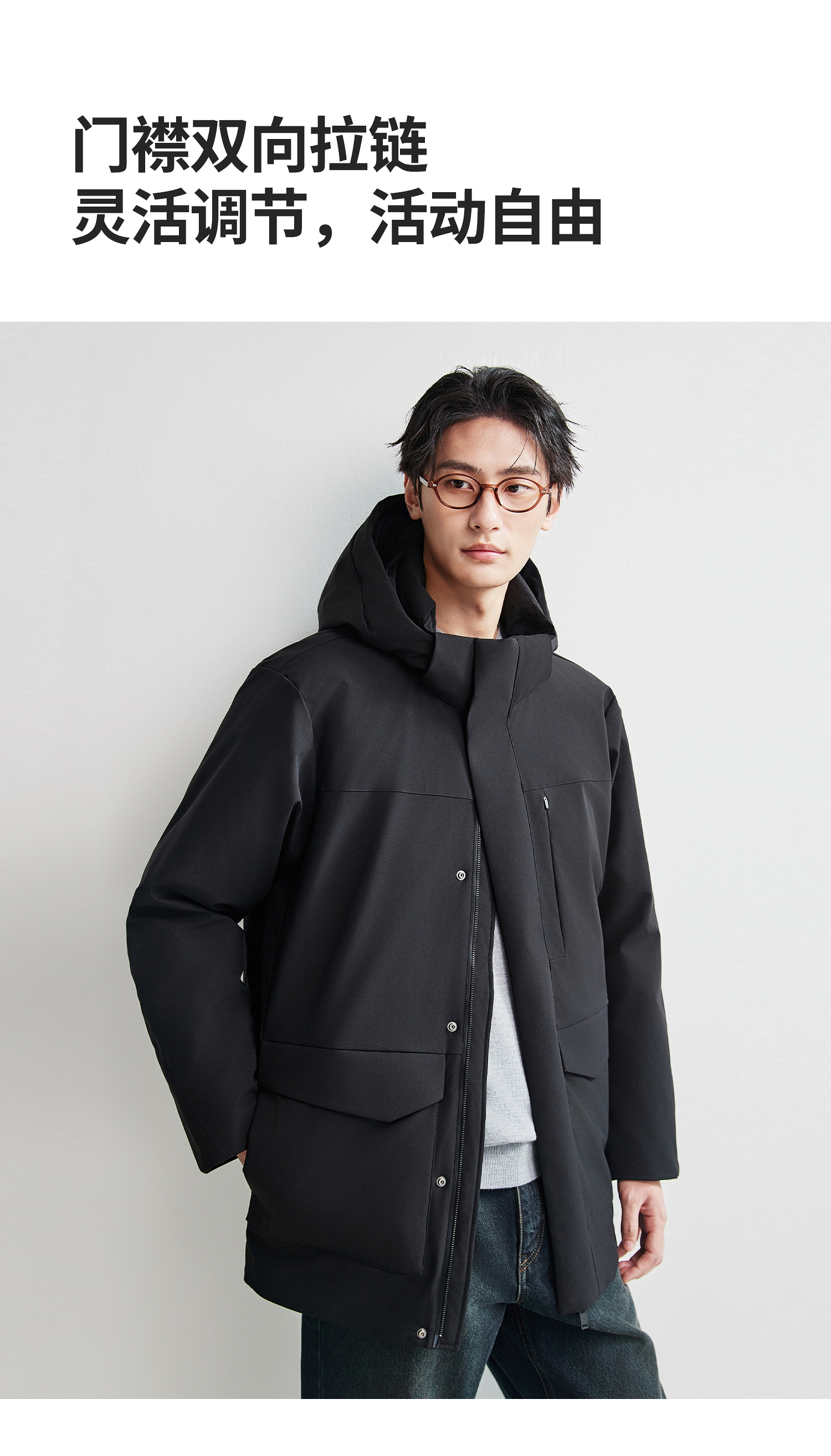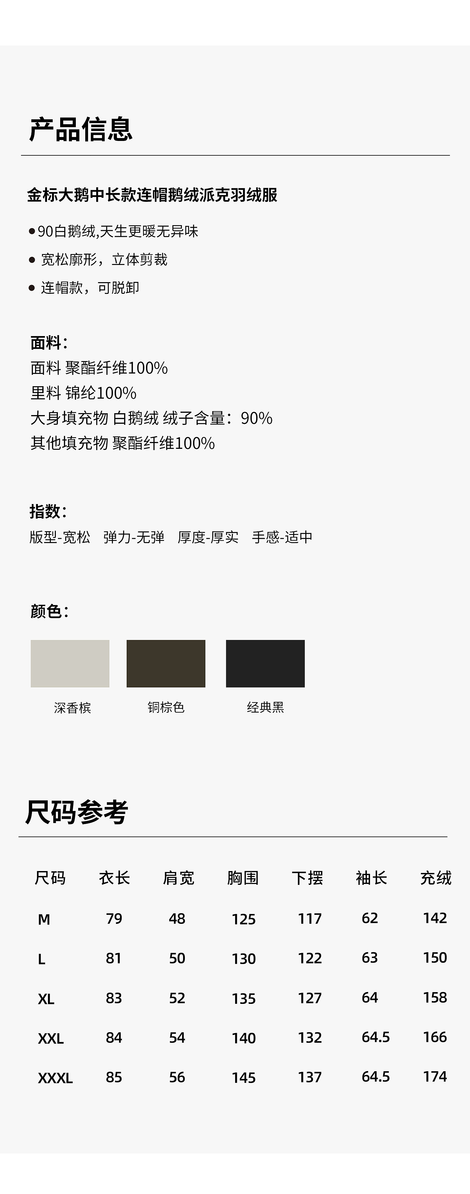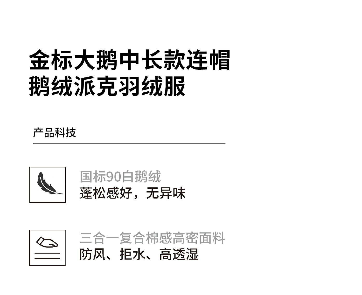 棉仓367815009-【金标大鹅】白鹅绒连帽派克中长款羽绒服冬季加厚保暖外套