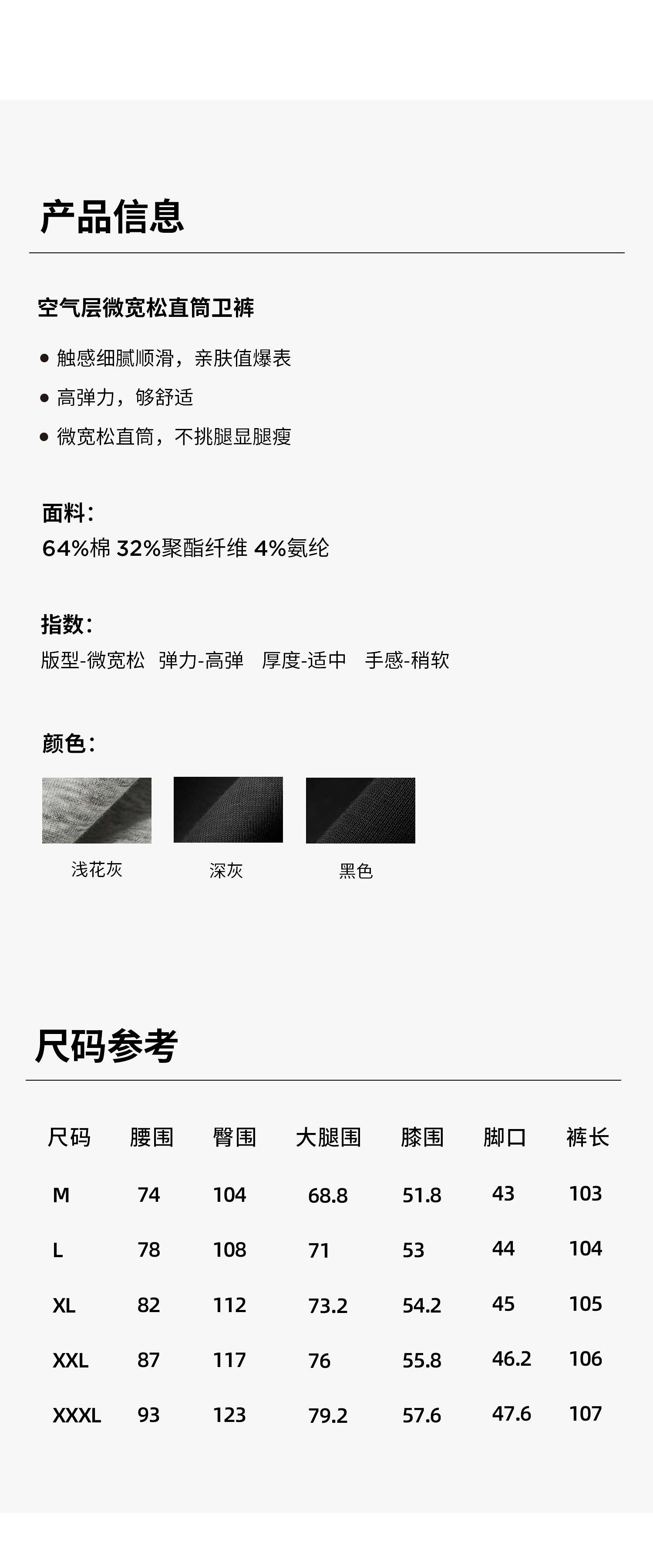 棉仓366818032-超柔纱空气层微宽松直筒卫裤男 秋季运动休闲长裤灰色卫裤