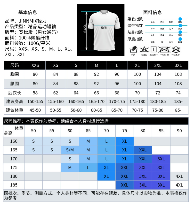 尺码:XS-2XL,XXS即为女码的S,依次类推