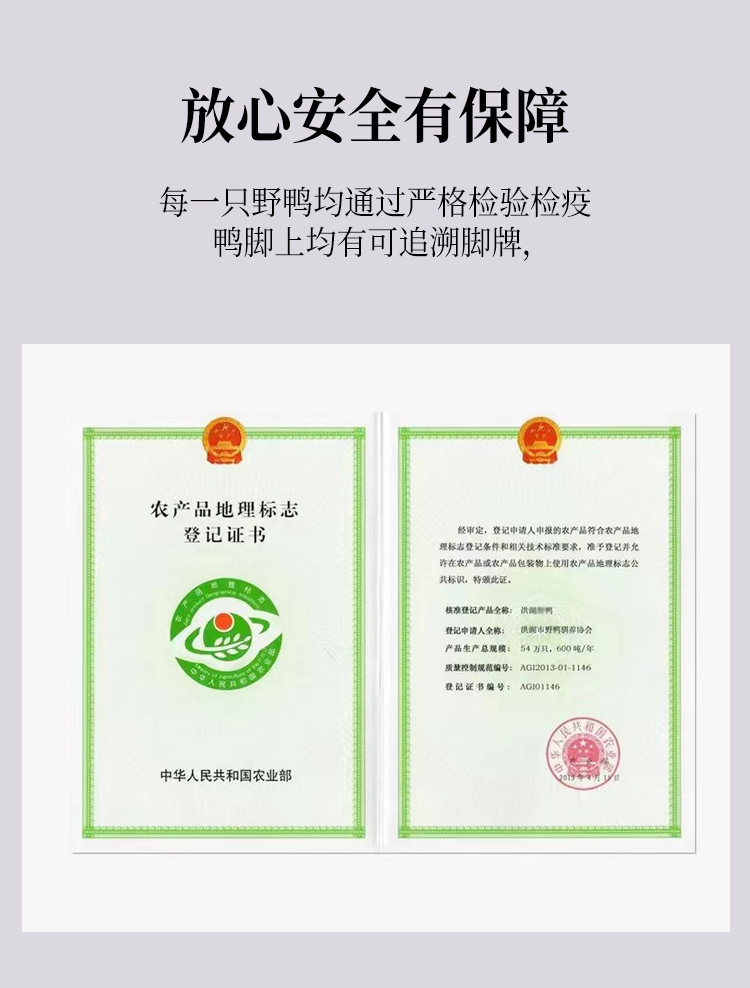 1.所有发货野鸭皆为洪湖绿头老野鸭,为国家专属授权养殖,带溯源码。