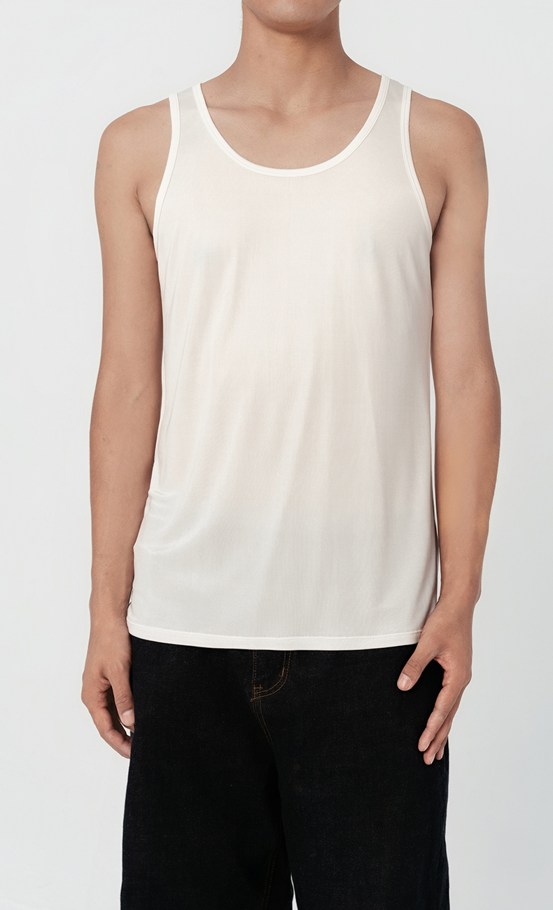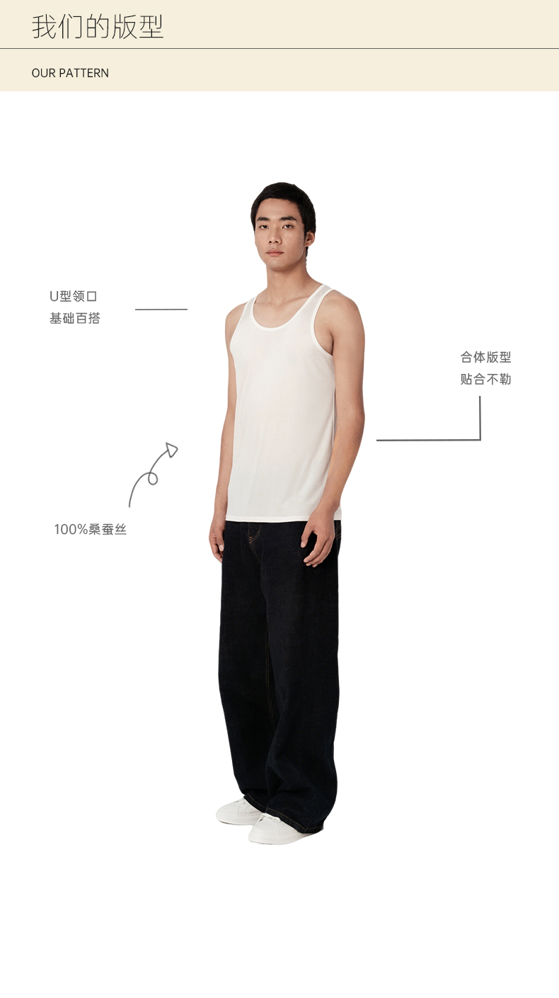 干爽体感』桑罗男士U领背心桑蚕丝透气舒适基础百搭打底