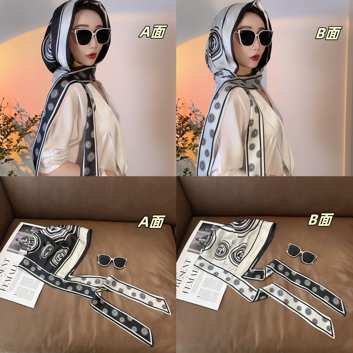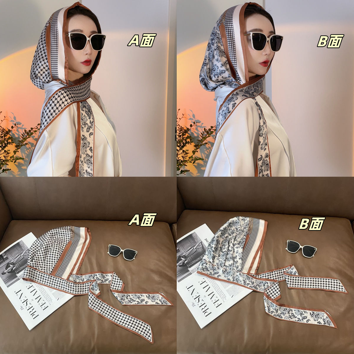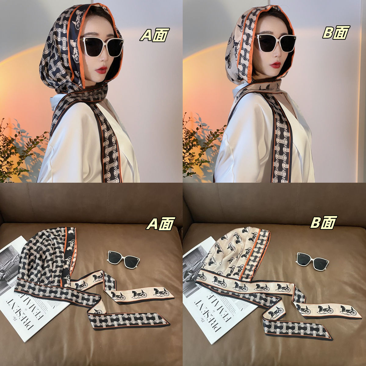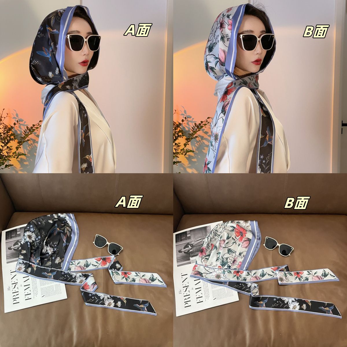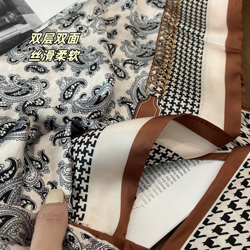 双面防晒包头巾黑色山茶花复古气质两面可带丽锦缎面连帽围巾丝巾