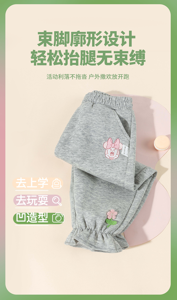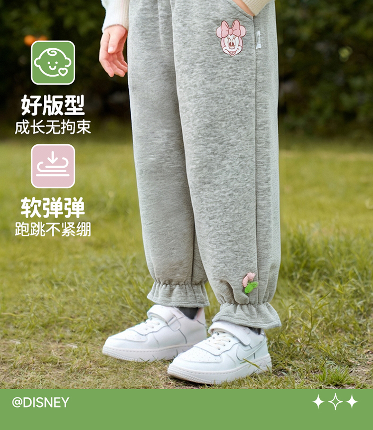 迪士尼25春秋新款女童休闲长裤棉弹舒适耐磨不易起球卫裤ZD3EK017