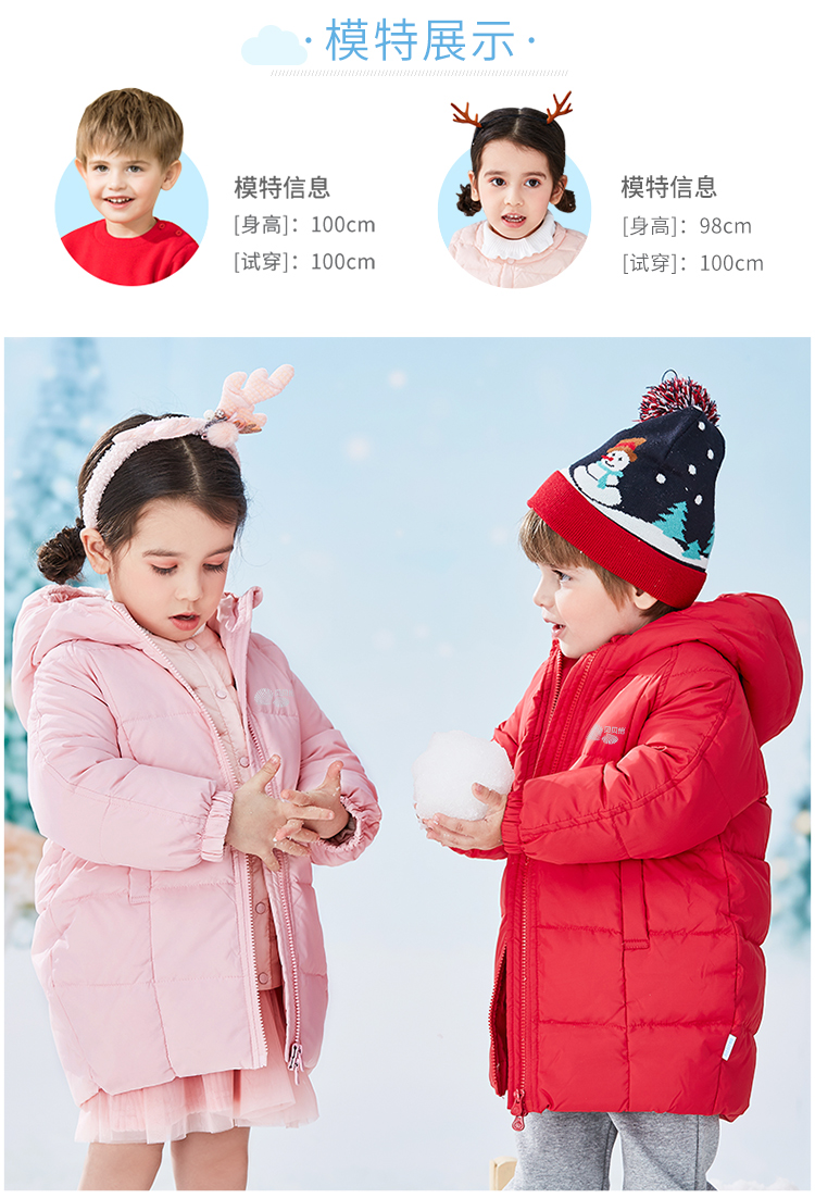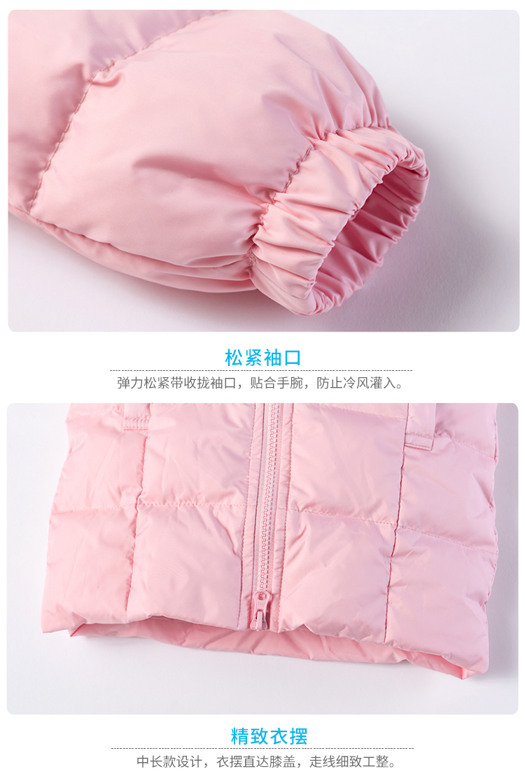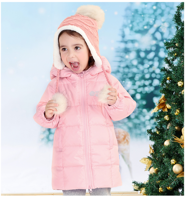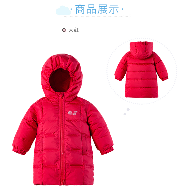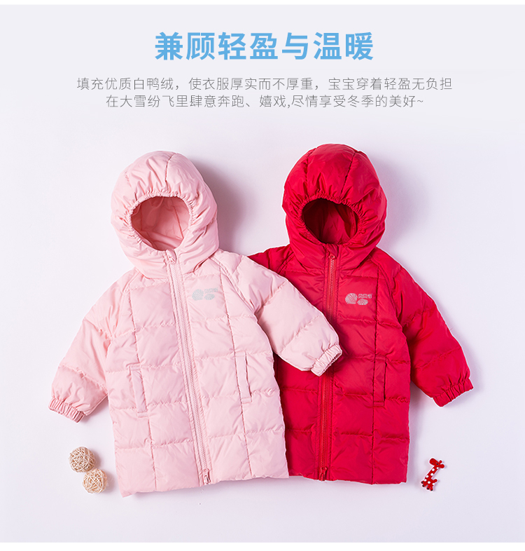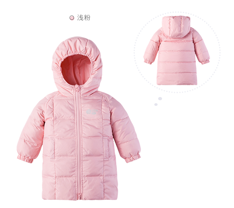贝贝怡男女童冬天保暖白鸭绒连帽加长款中长款防风羽绒服外套