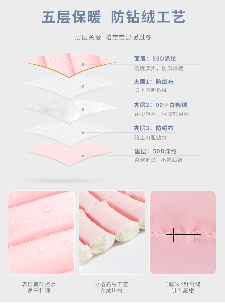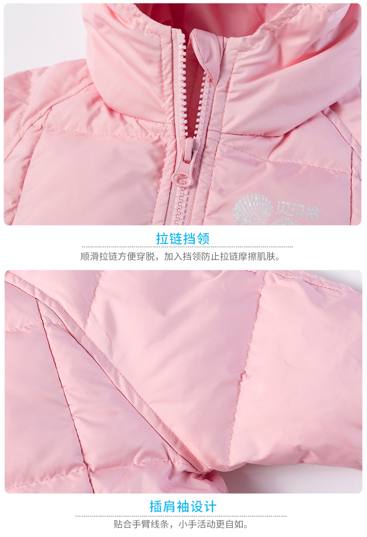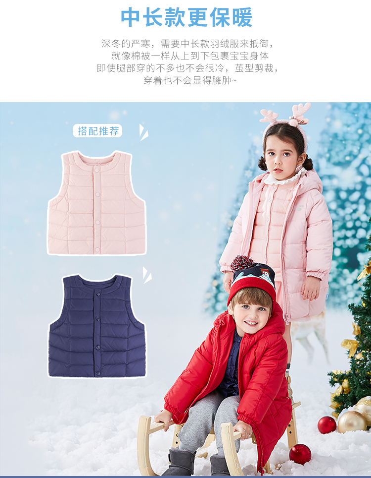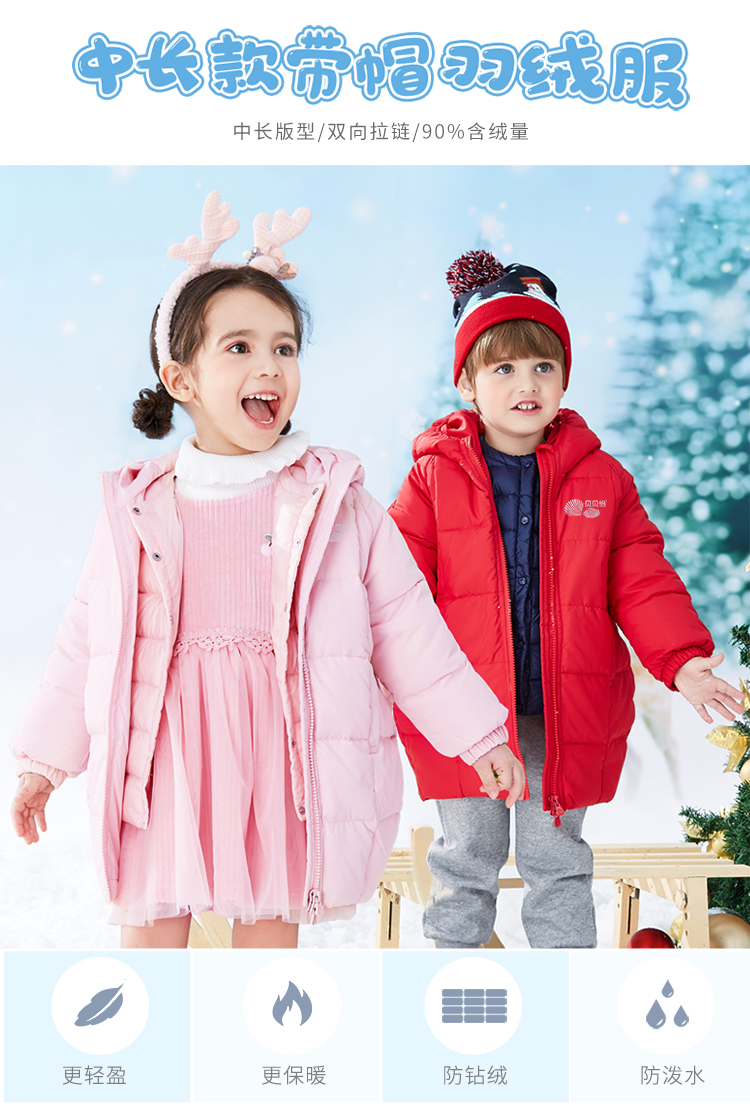贝贝怡男女童冬天保暖白鸭绒连帽加长款中长款防风羽绒服外套