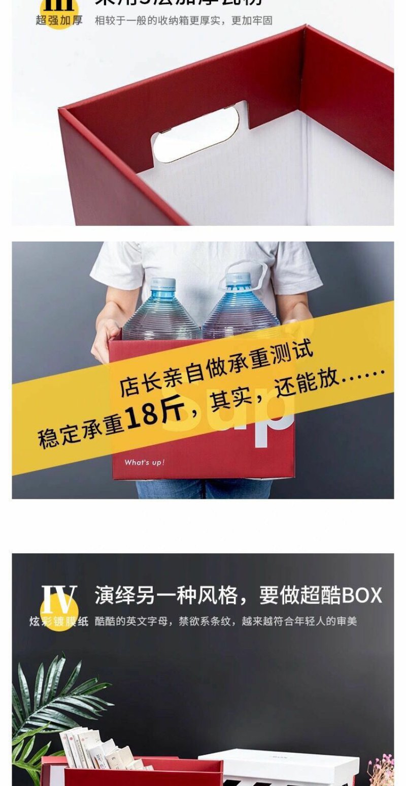 抖音同款网红sup收纳纸箱reme装衣物书零食玩具后备箱大号储物箱
