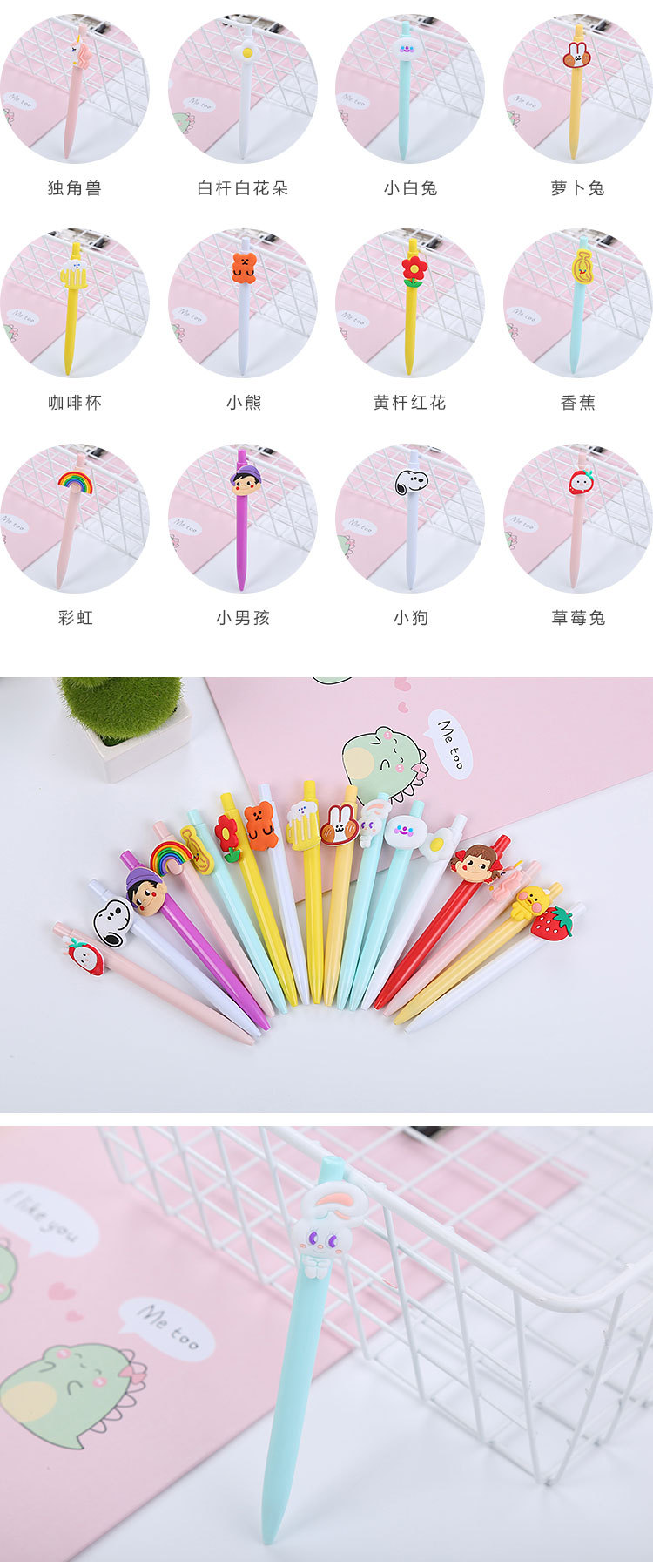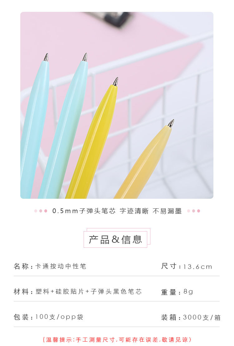 学生按动中性笔韩版少女心卡通按压水笔可爱清新办公文具签字笔笔头0.5mm 8g/支