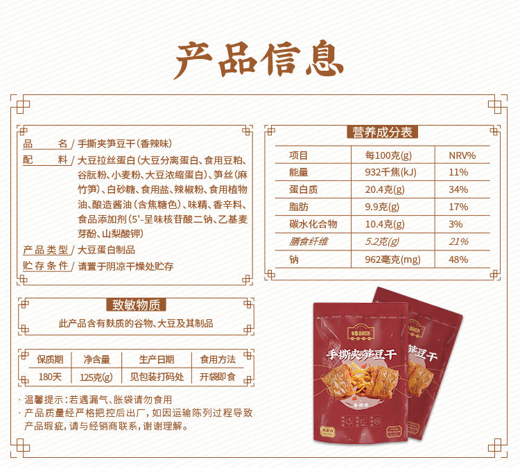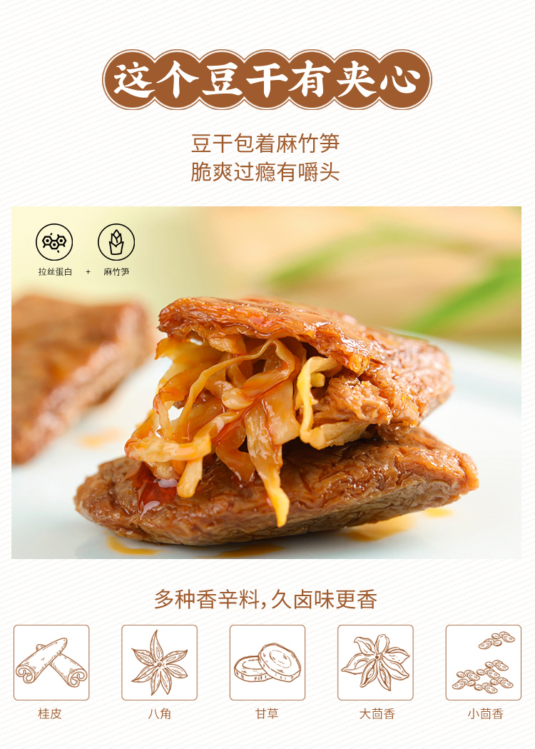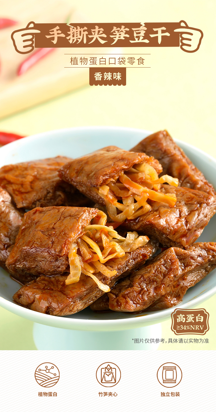 福建手撕肉豆干素肉麻辣零食烤肉豆干酱香肉豆干125g*3袋