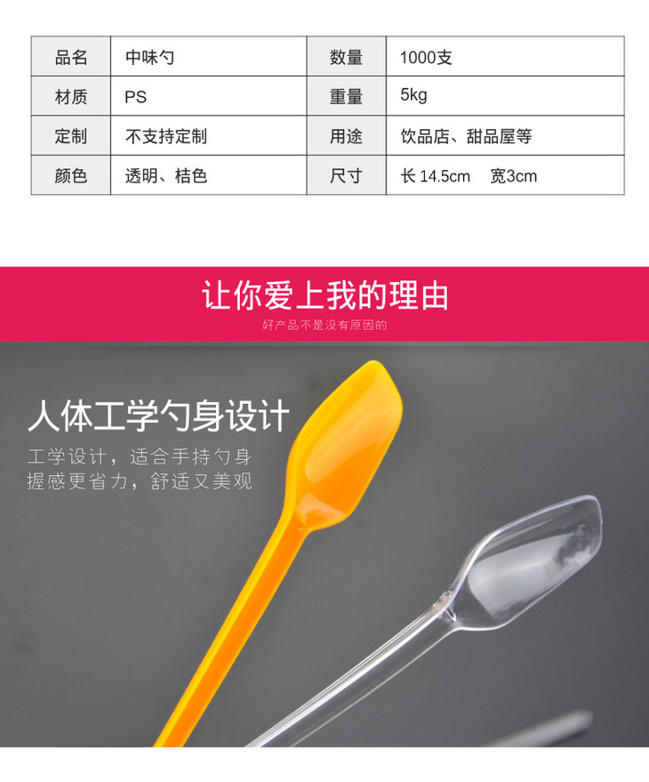 喇叭花一次性勺子水果勺长柄羹淀粉酸奶勺冰激凌勺加厚单个装1000支