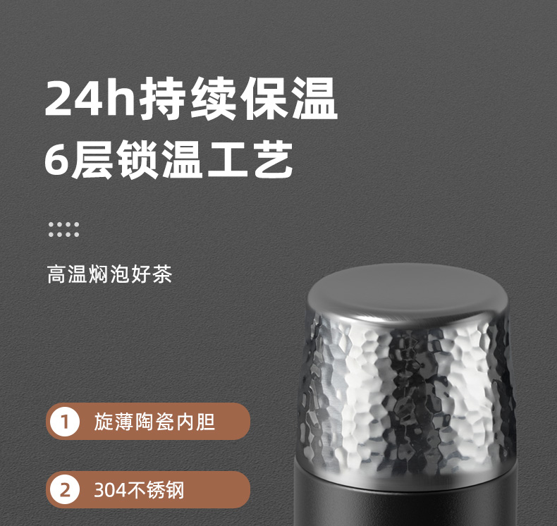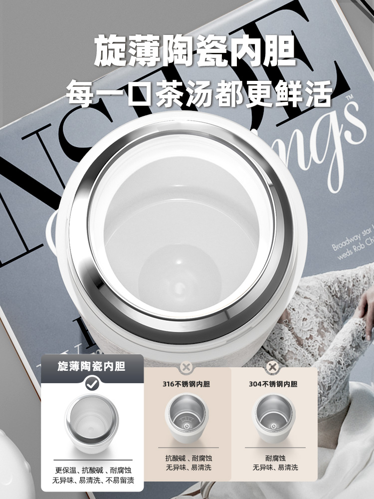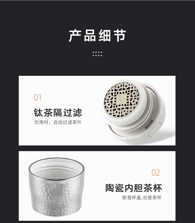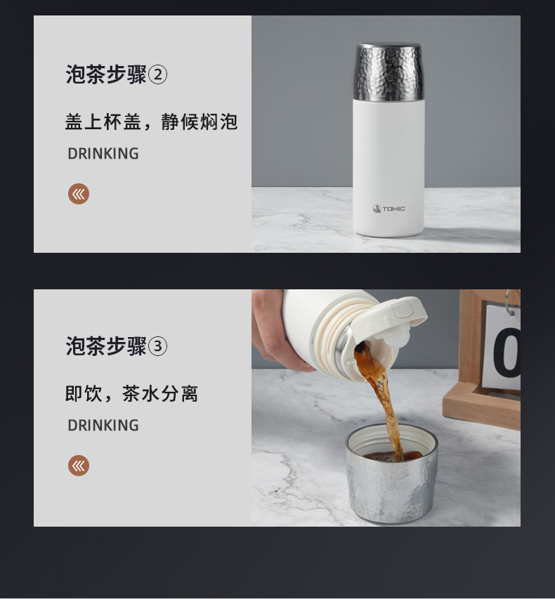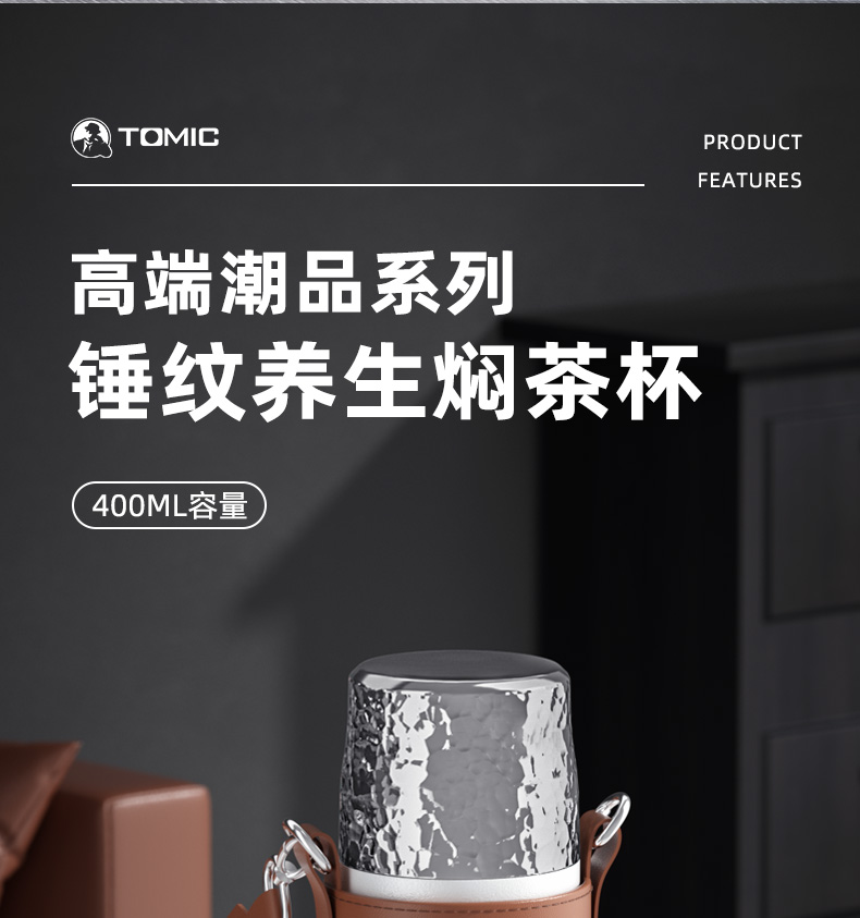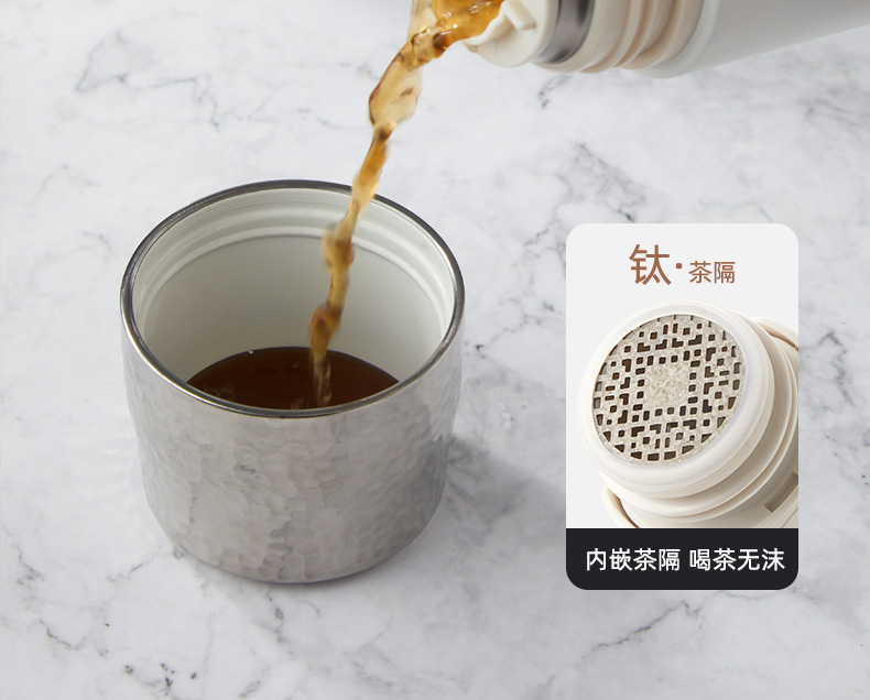 【纯钛茶仓+陶瓷内胆】tomic特美刻保温杯钛焖茶杯锤纹水杯女陶瓷内胆茶水分离泡茶杯子