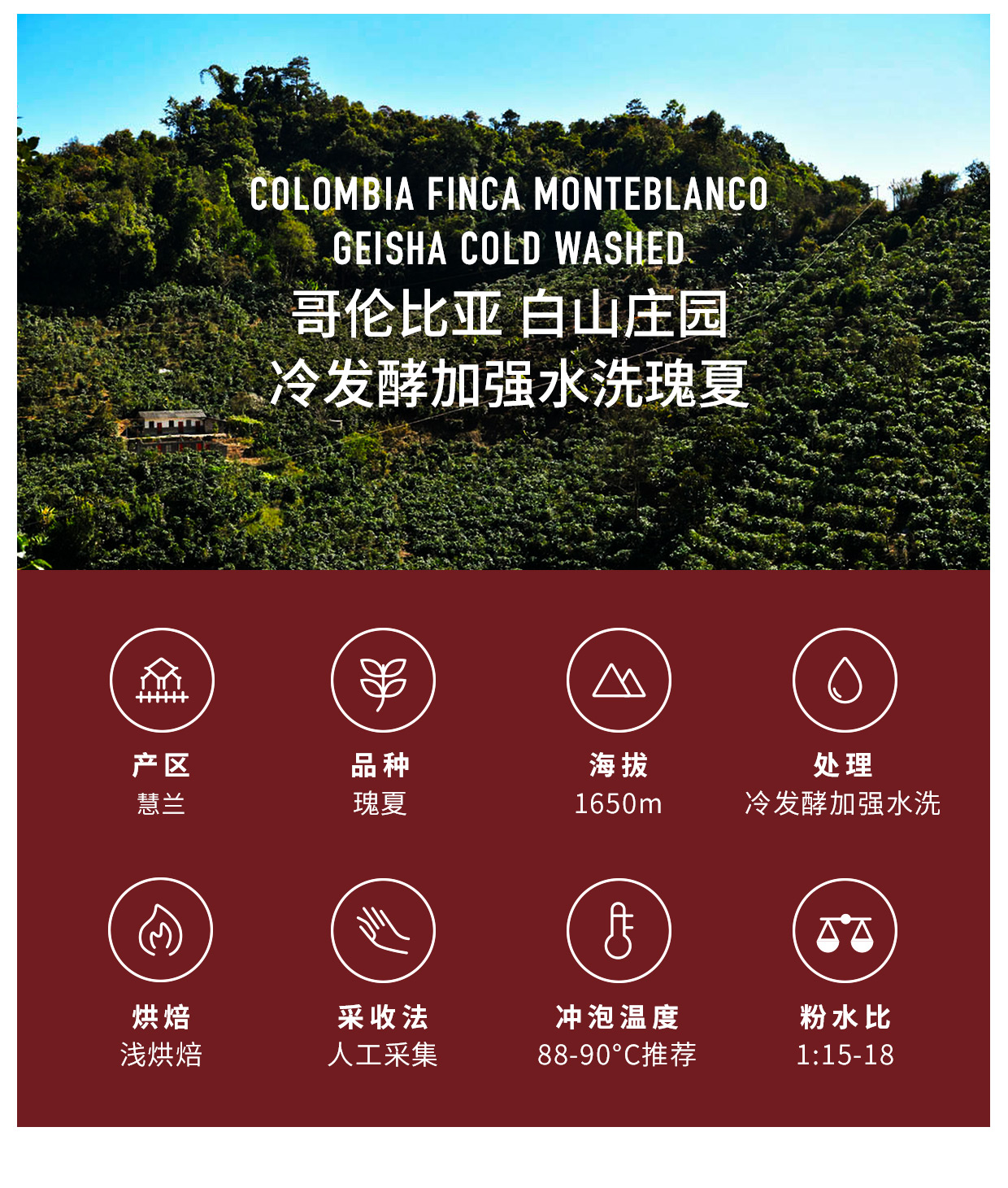 【甄选白金】泰摩哥伦比亚白山庄园冷发酵加强水洗瑰夏-100g