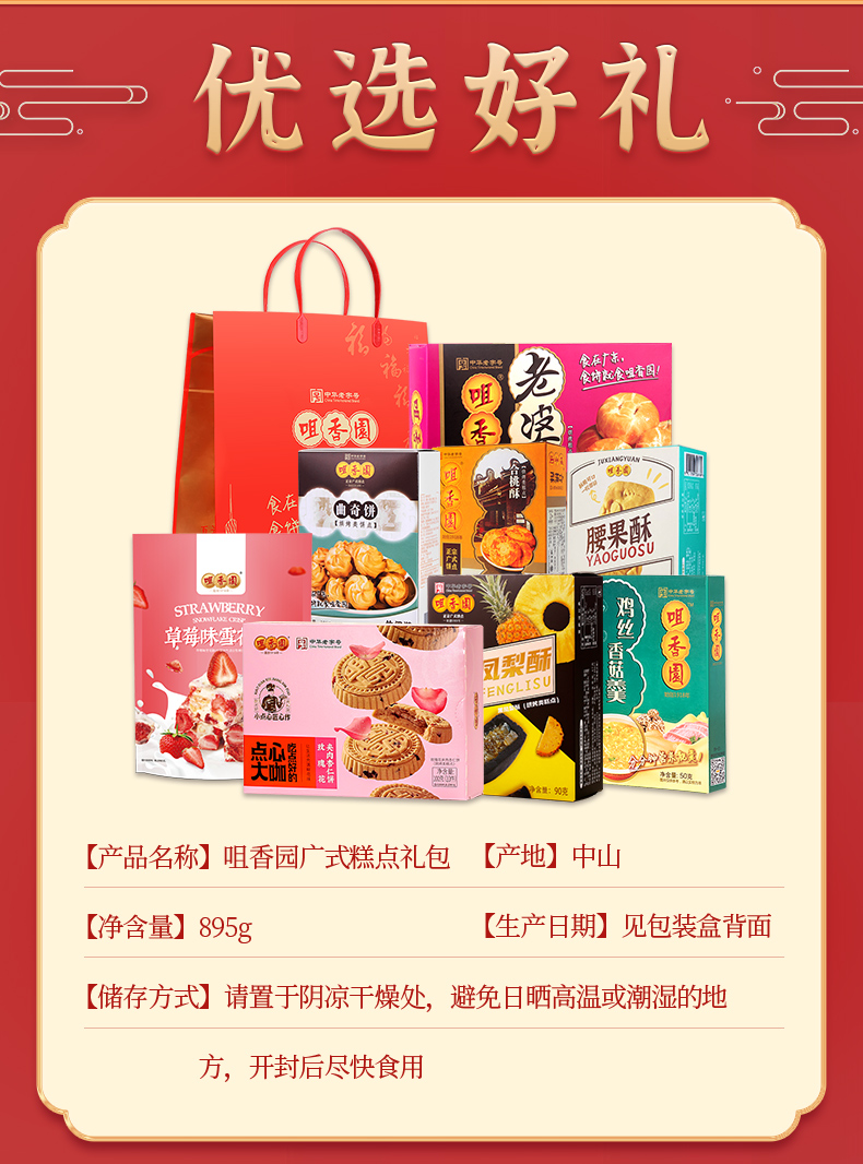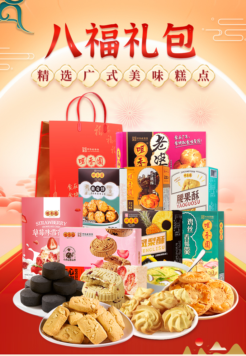 咀香园大礼包8盒装 广东广州中山特产年货伴手礼小吃零食广式点心 可自由组合