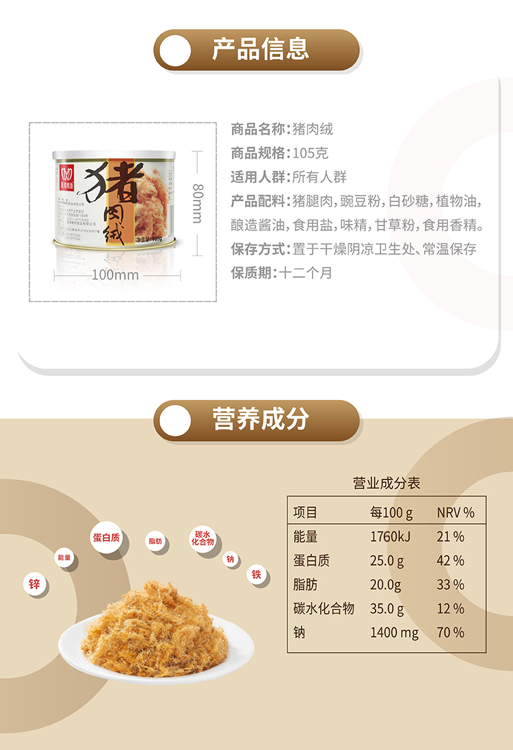 【休闲食品 肉绒】美奇唯新 105g猪肉绒