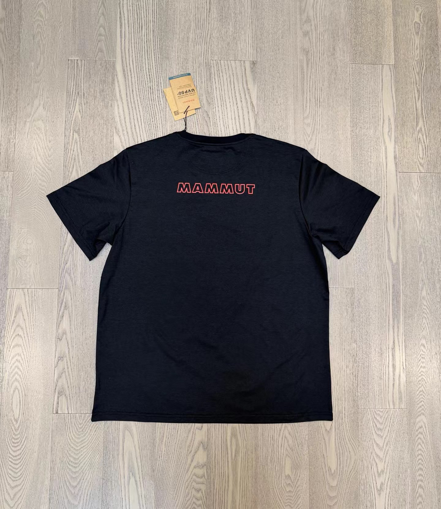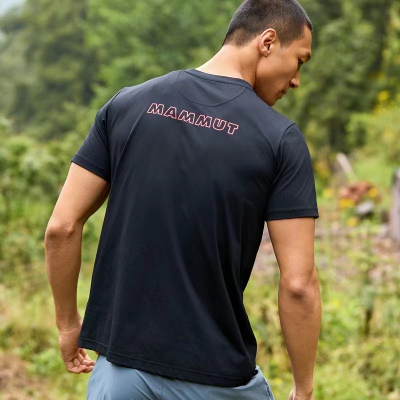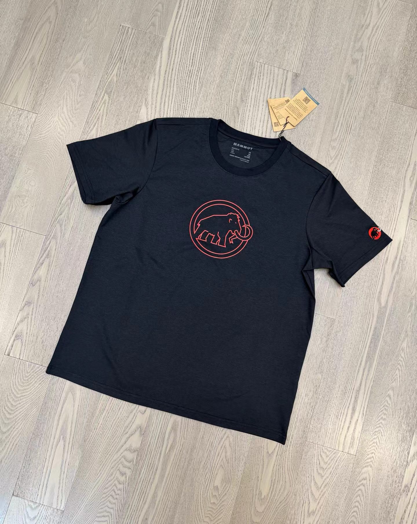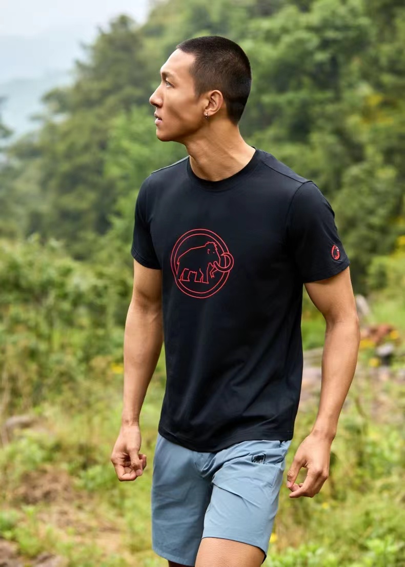 男士户外红标舒适休闲短袖T恤。正面采用标志性的红标Logo,线条简洁醒目;左袖也有小标呼应,整体风格低调专业。面料与性能:采用QD(Quick Dry)180克速干面料,透气排汗,适合运动和户外环境,同时保持舒适亲肤。