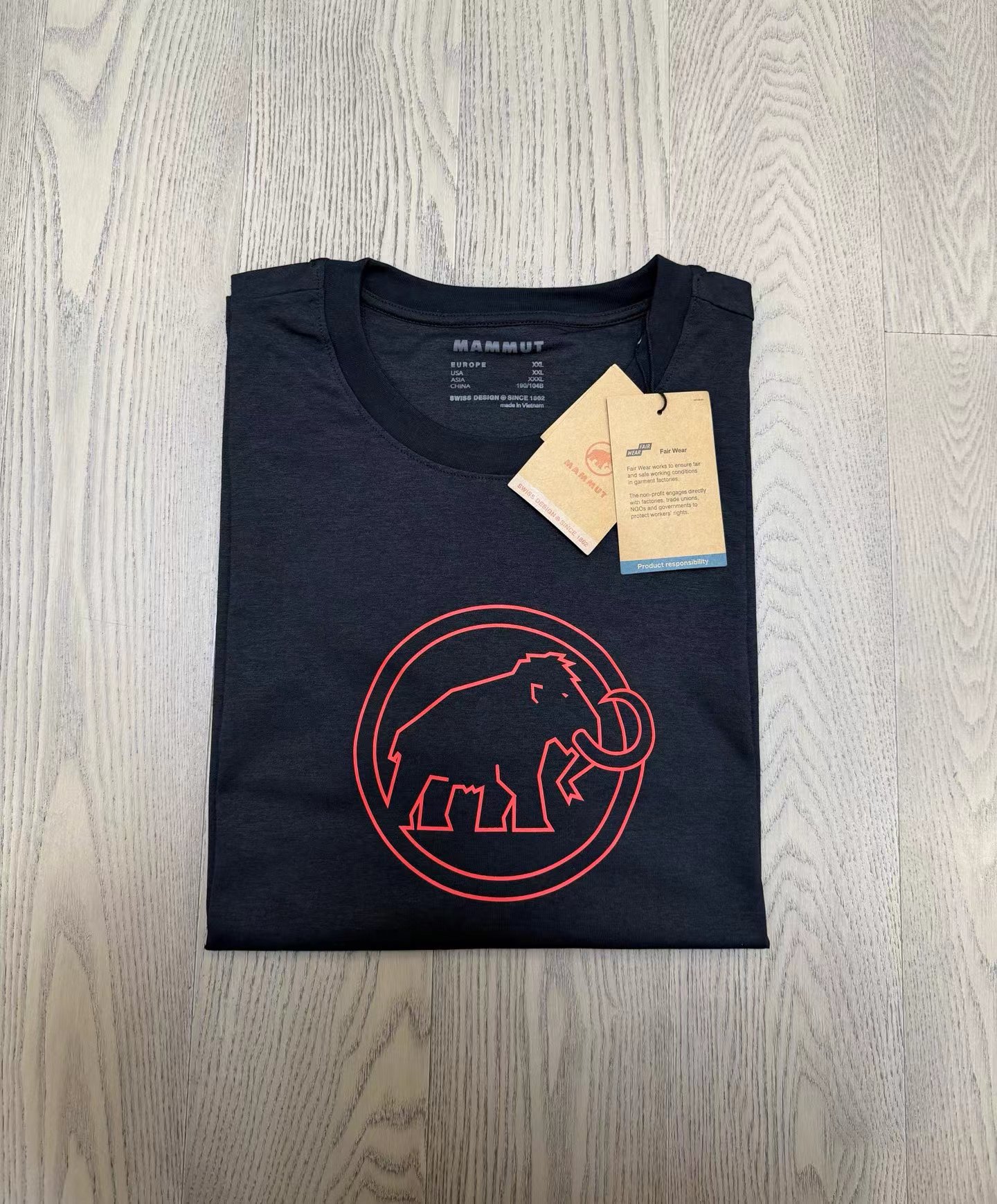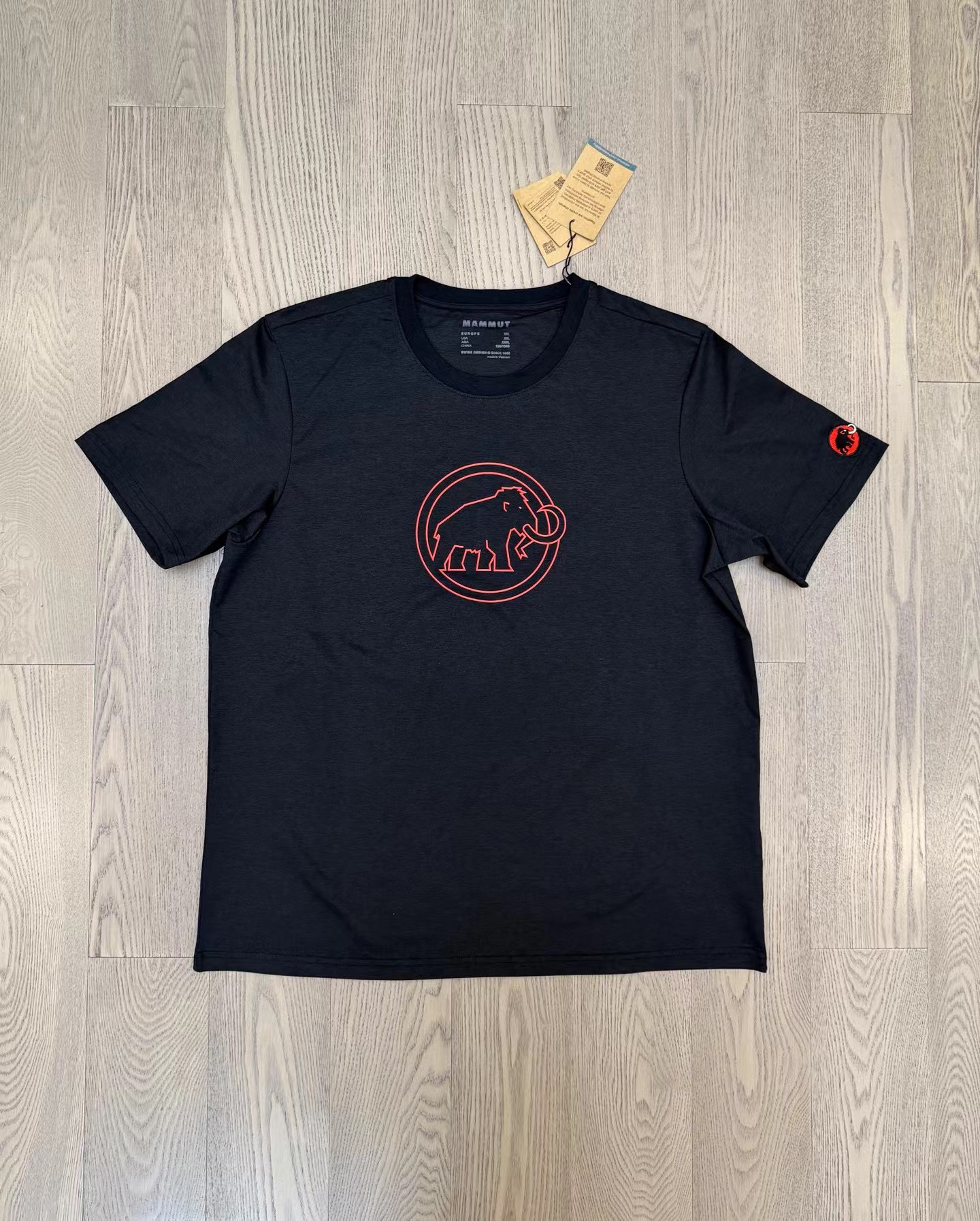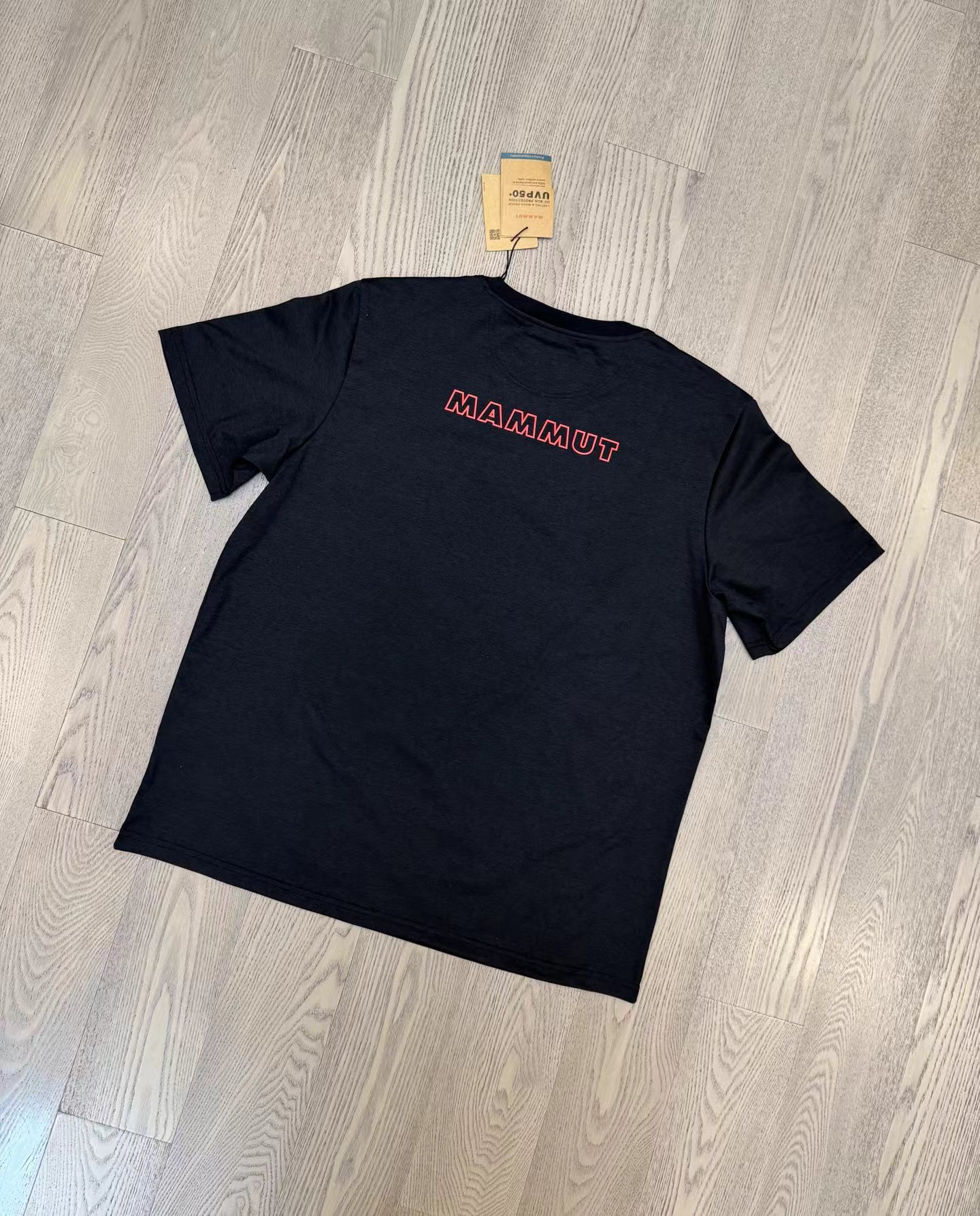 男士户外红标舒适休闲短袖T恤。正面采用标志性的红标Logo,线条简洁醒目;左袖也有小标呼应,整体风格低调专业。面料与性能:采用QD(Quick Dry)180克速干面料,透气排汗,适合运动和户外环境,同时保持舒适亲肤。