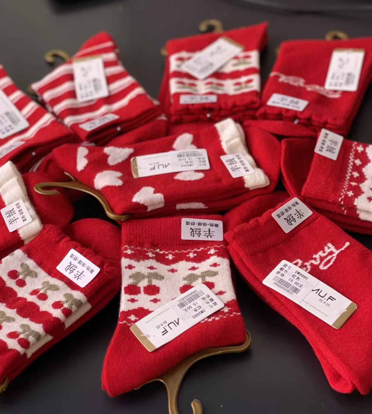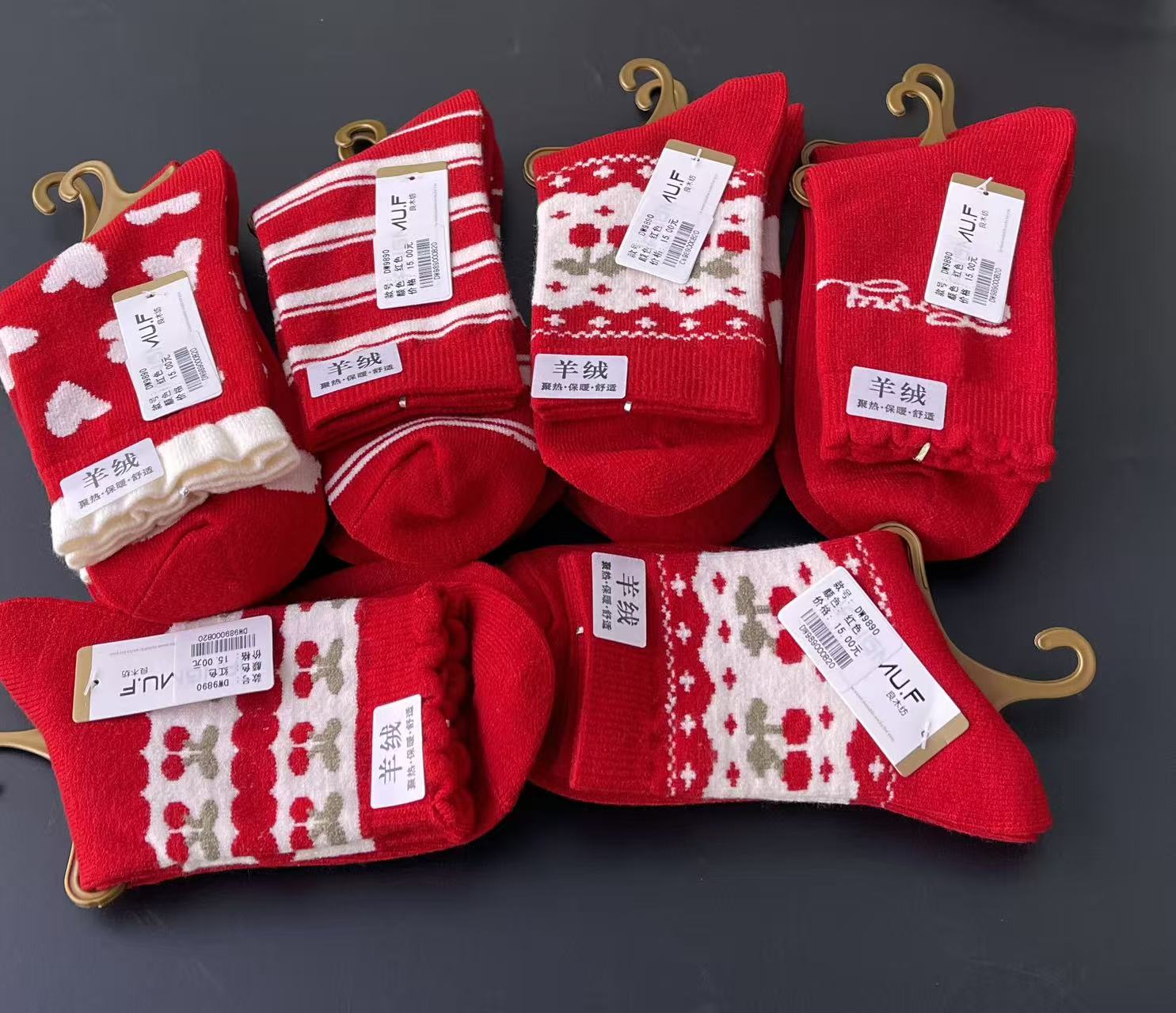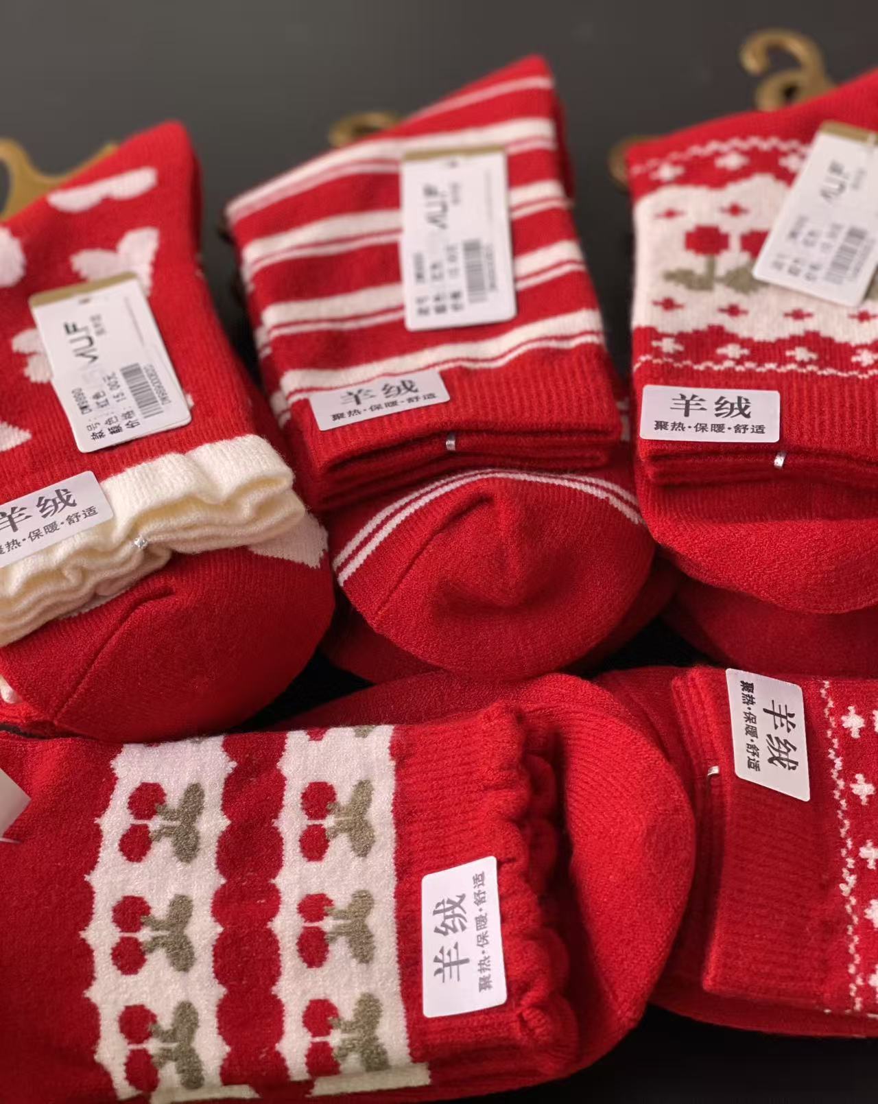 喜庆大红色羊绒棉袜83-82-90