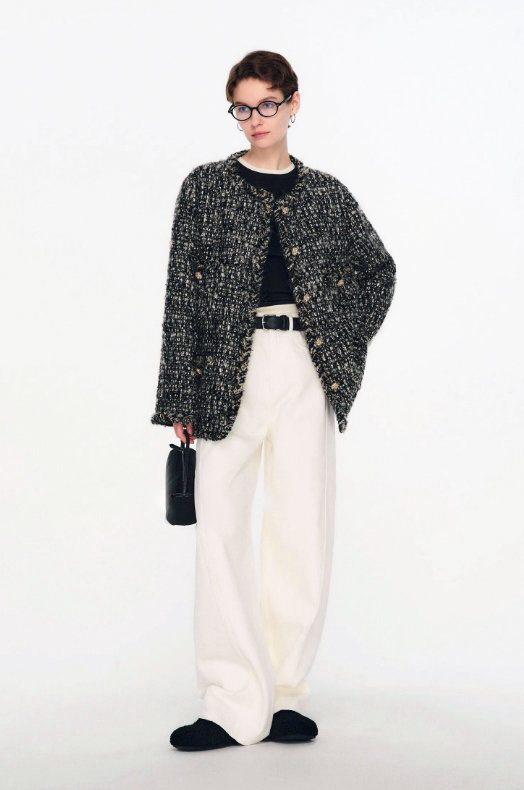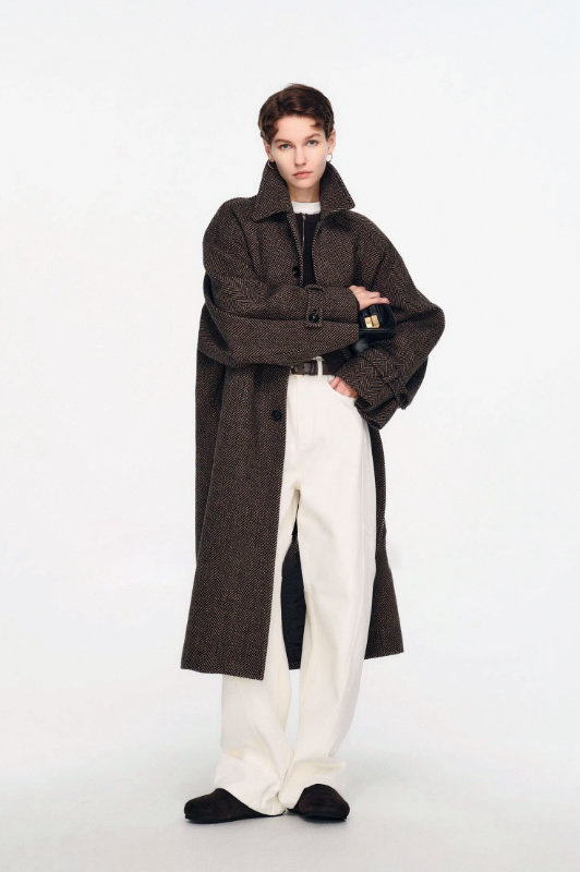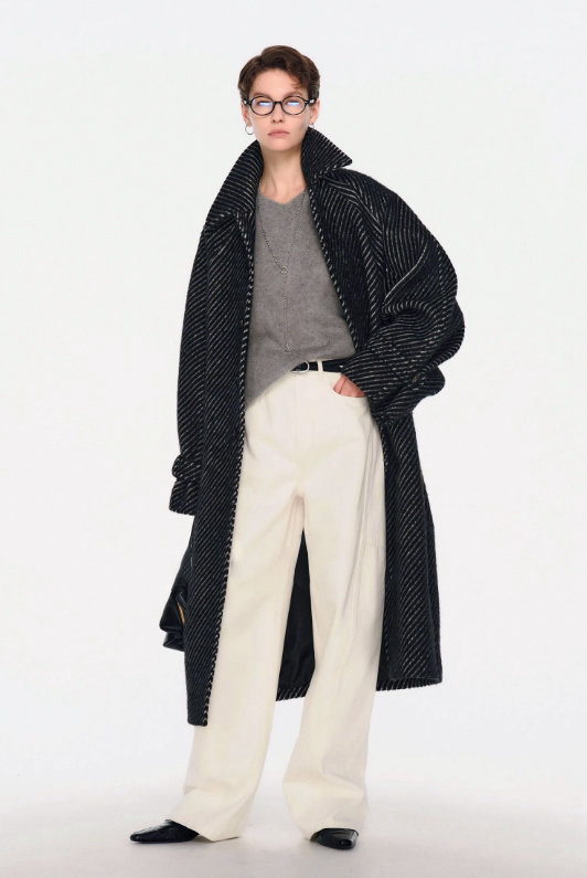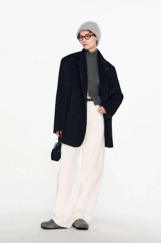 侧缝前移分割设计,提升视觉立体感,清解构主义突破常规,先锋前卫,飒爽时髦,流畅利落的线条之下,重新定义都市服装美学。