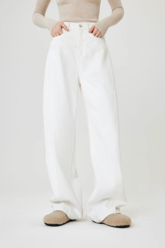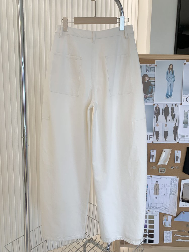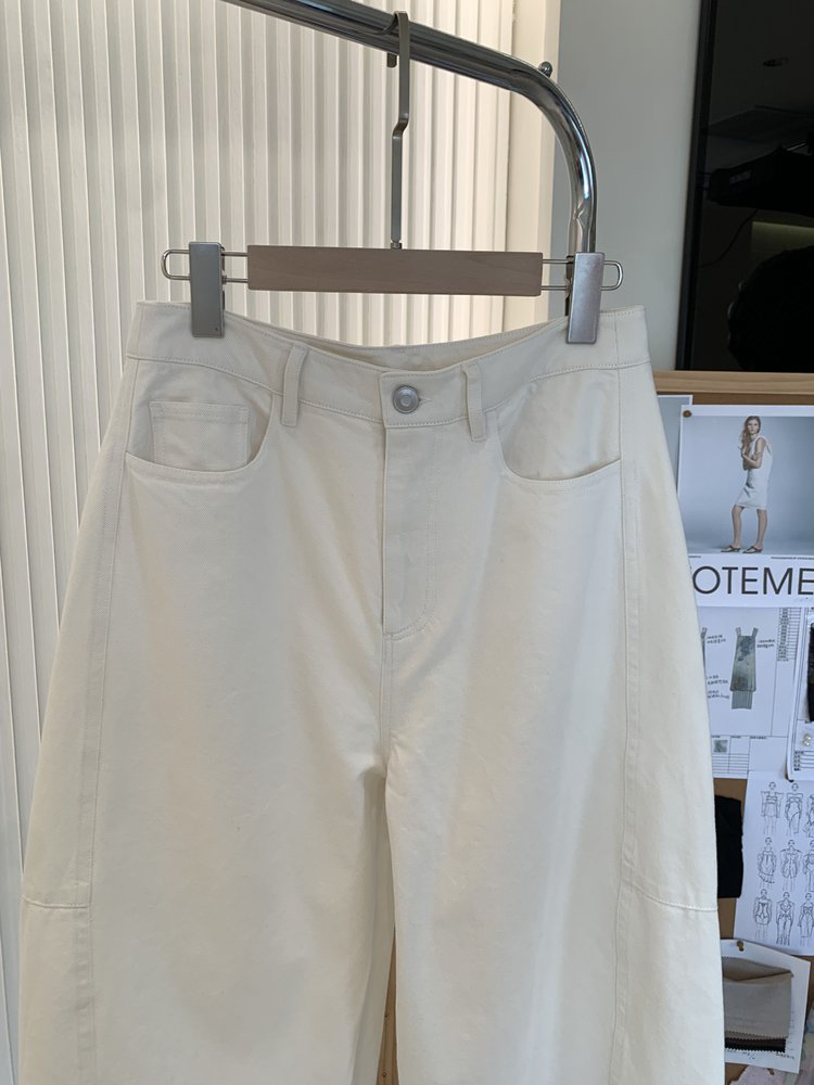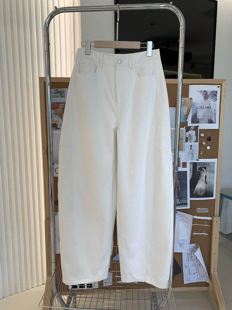 百搭宽松弧线茧型牛仔裤 先锋解构主义分割线牛仔裤 经典款式茧型 土耳其进口牛仔面料 棉粗纱支斜纹布 侧缝前移分割设计视觉显瘦