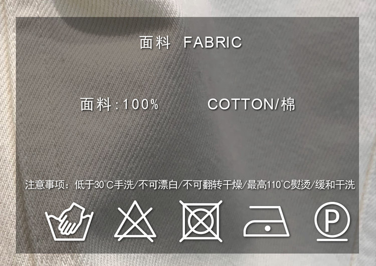 优选土耳其进口牛仔面料,组织为棉粗纱支斜纹布,纹路清晰,纤维长度长,易吸收水分,透湿吸汗,透气性佳,因其特殊的织造工艺,造就紧致厚实的质地,手感糯而有筋骨,穿着舒适,线色系带来轻盈视觉感。