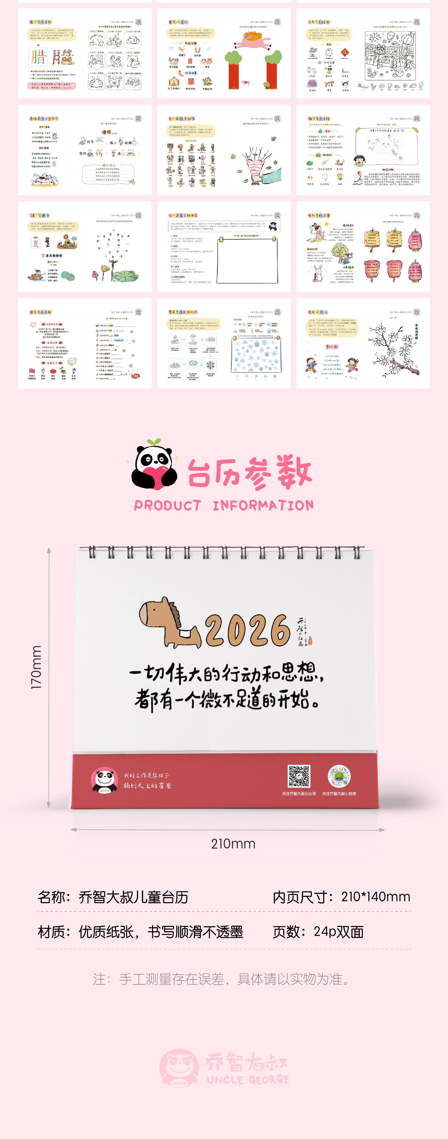 乔智大叔 2026年儿童台历