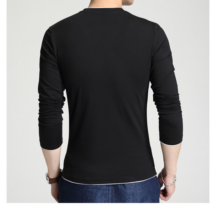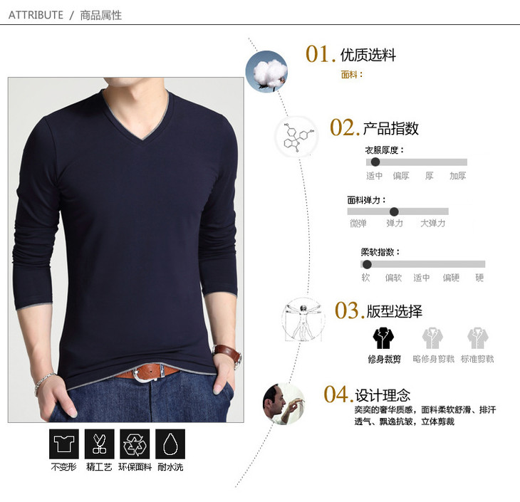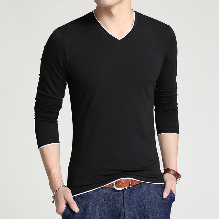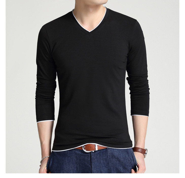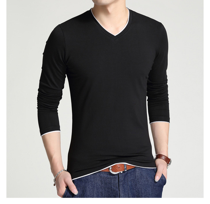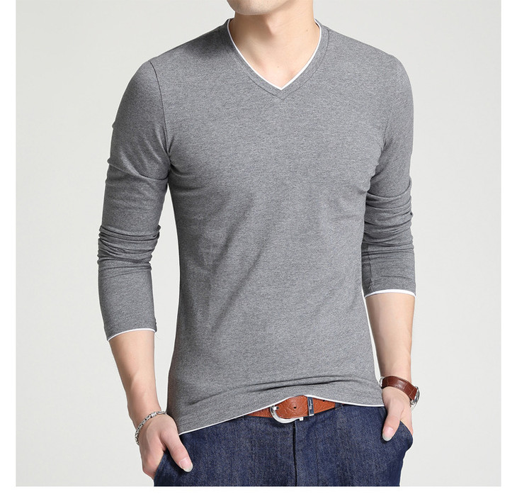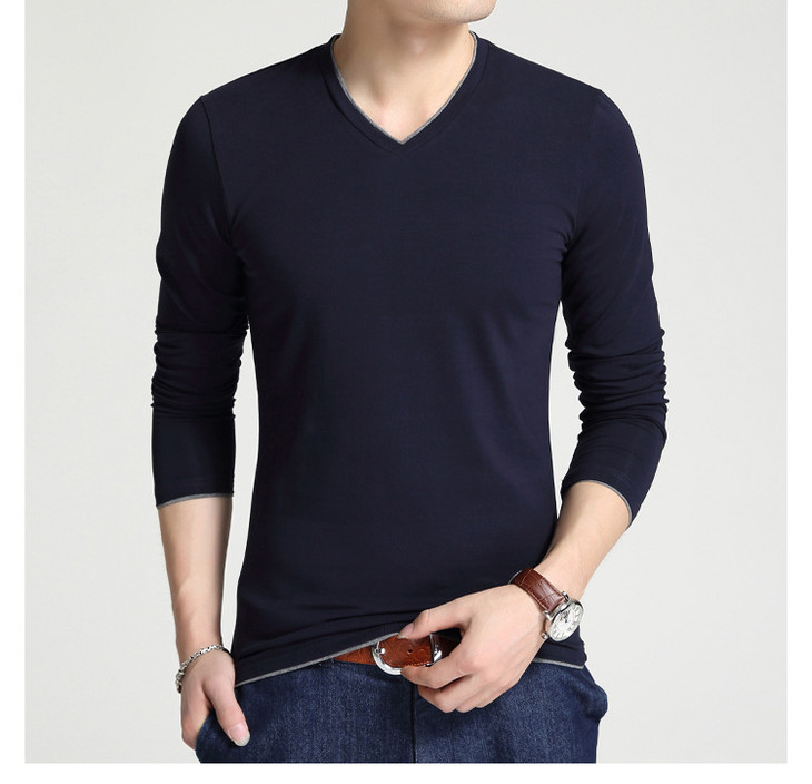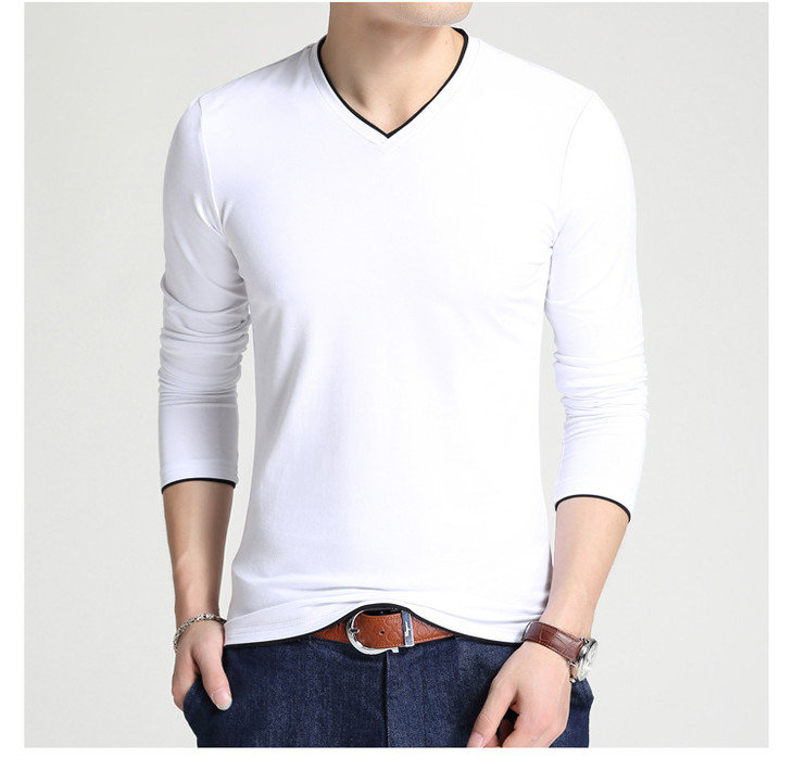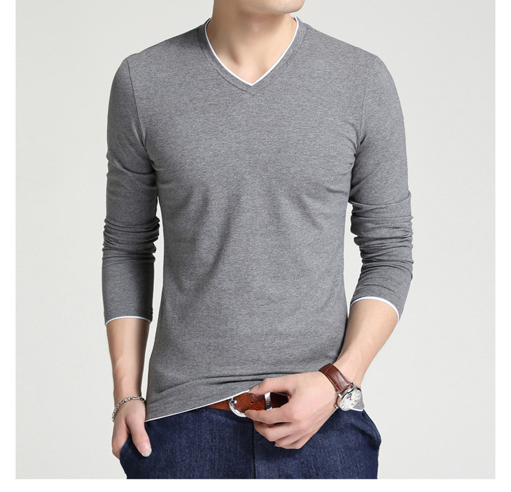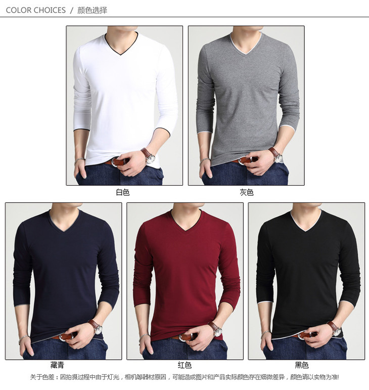 【服饰鞋包】秋季男式纯色棉T恤 青年长袖休闲V领百搭纯T简单款