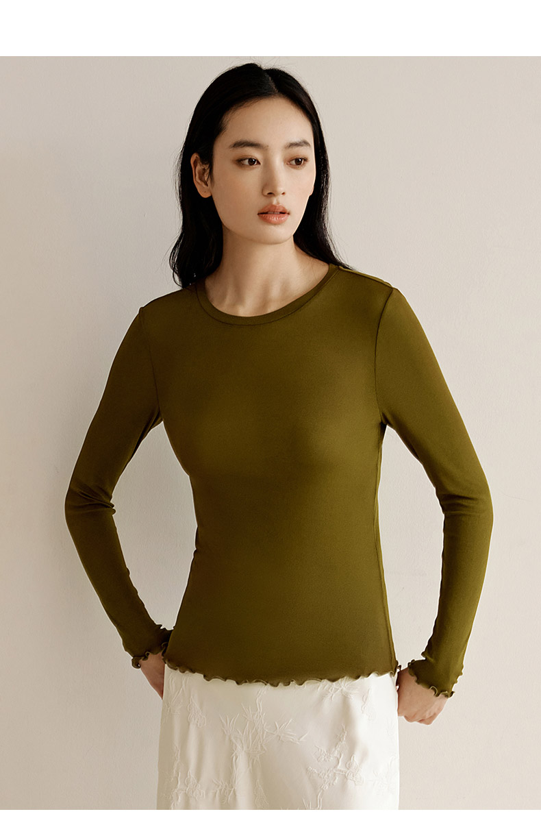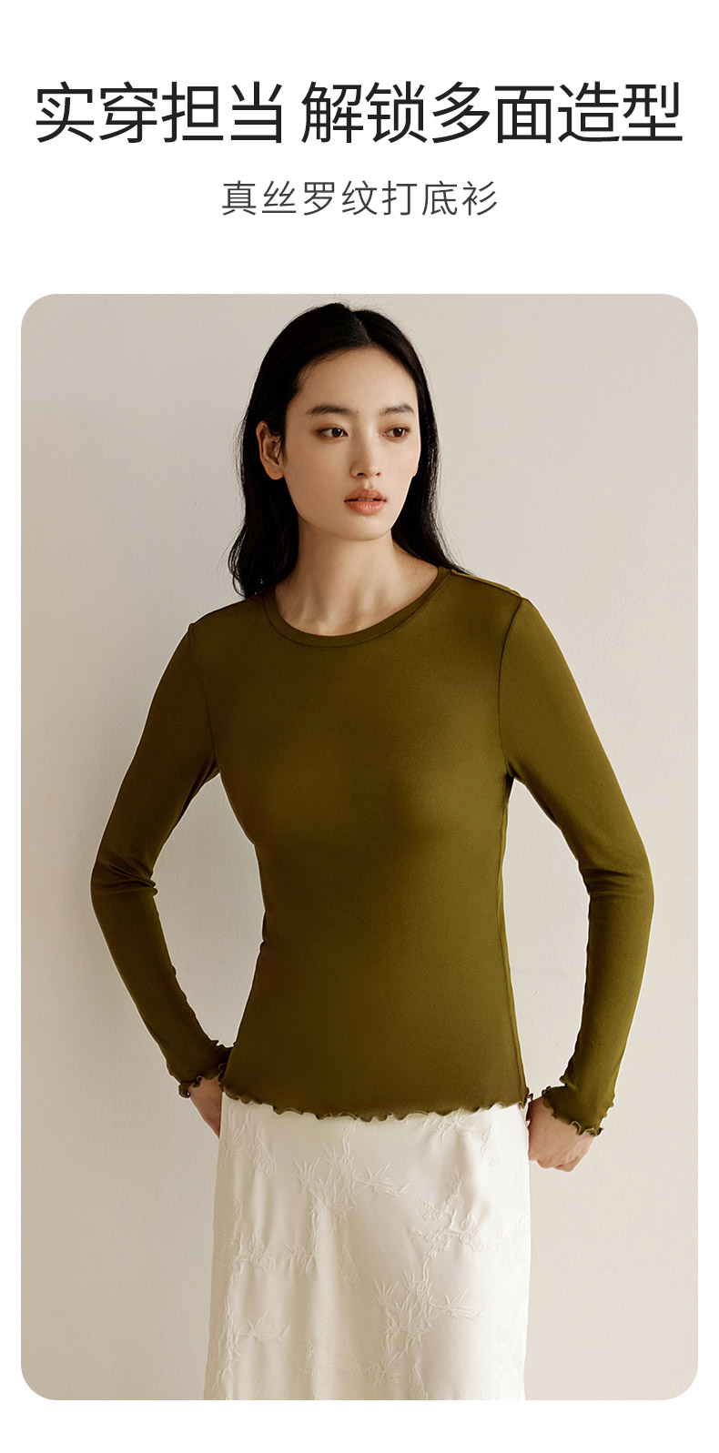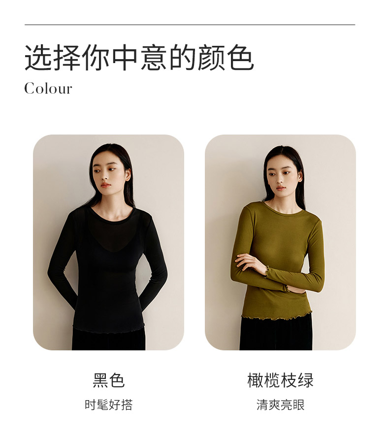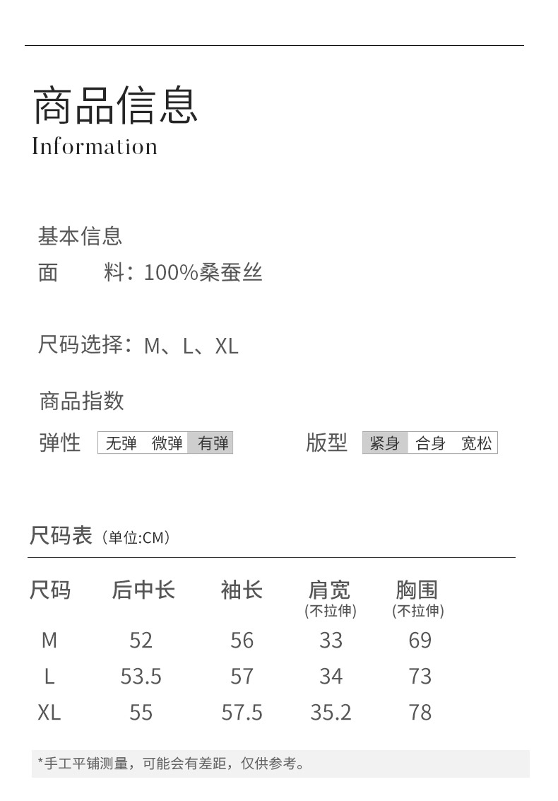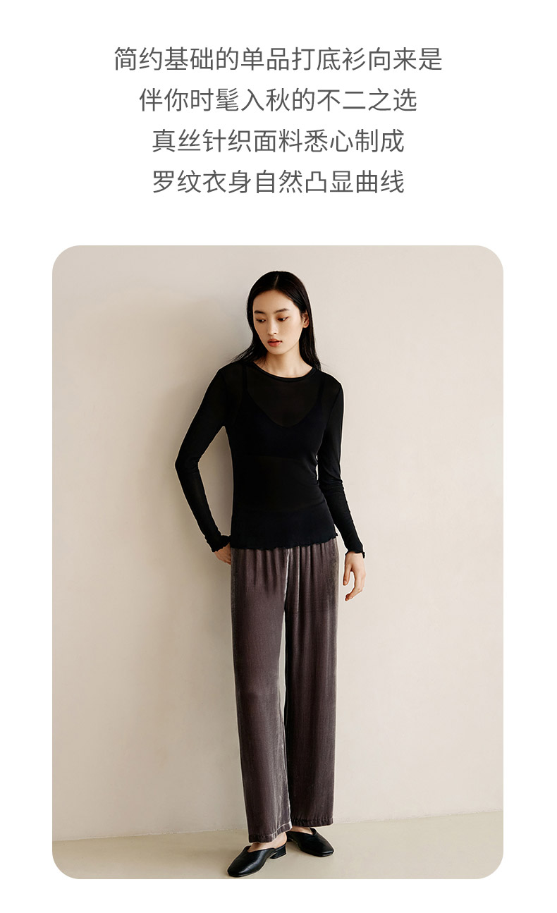 【真丝罗纹面膜T】100%桑蚕丝打底衫舒适贴肤小圆领高弹T恤女金三塔 NZFEC720