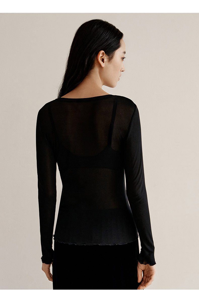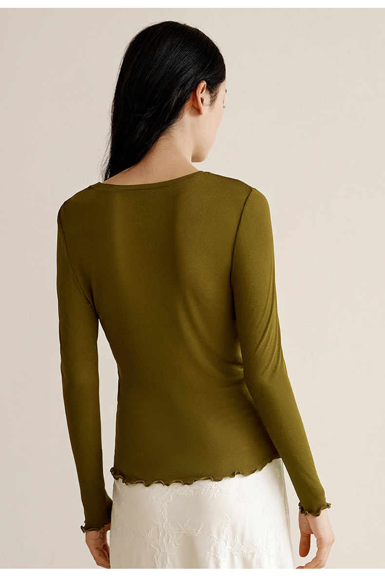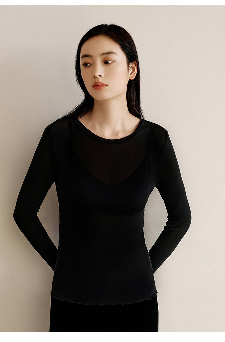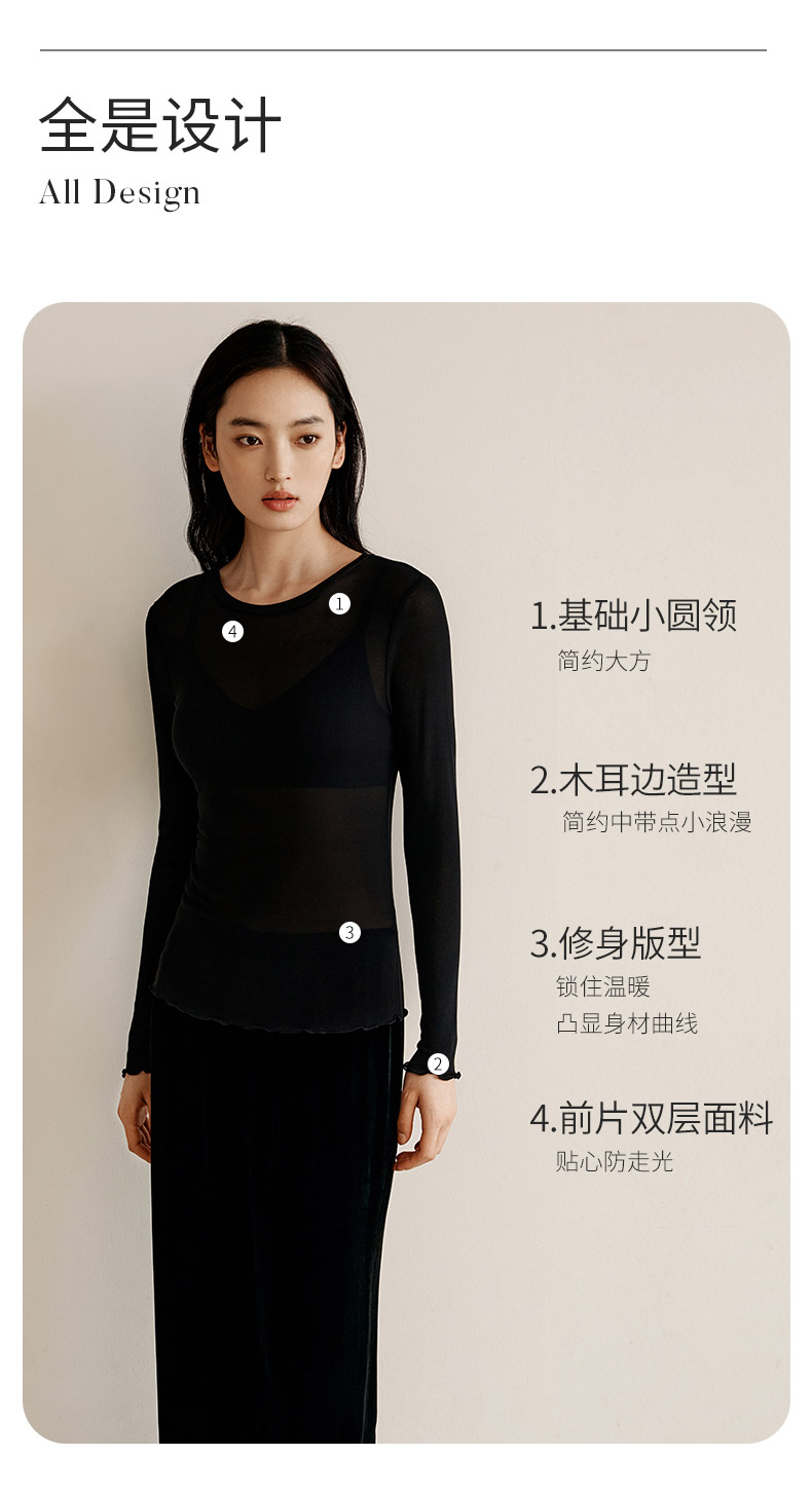 【真丝罗纹面膜T】100%桑蚕丝打底衫舒适贴肤小圆领高弹T恤女金三塔 NZFEC720