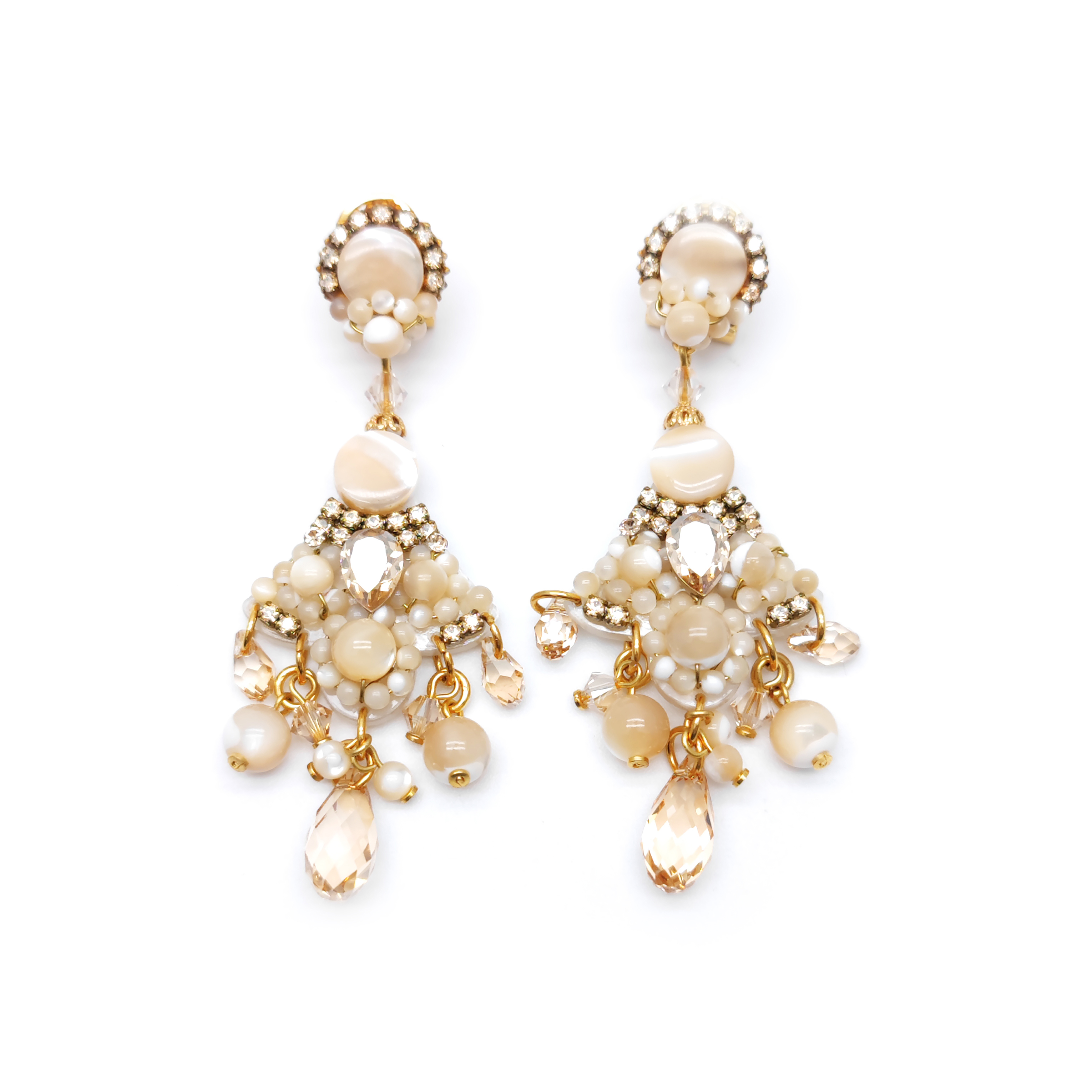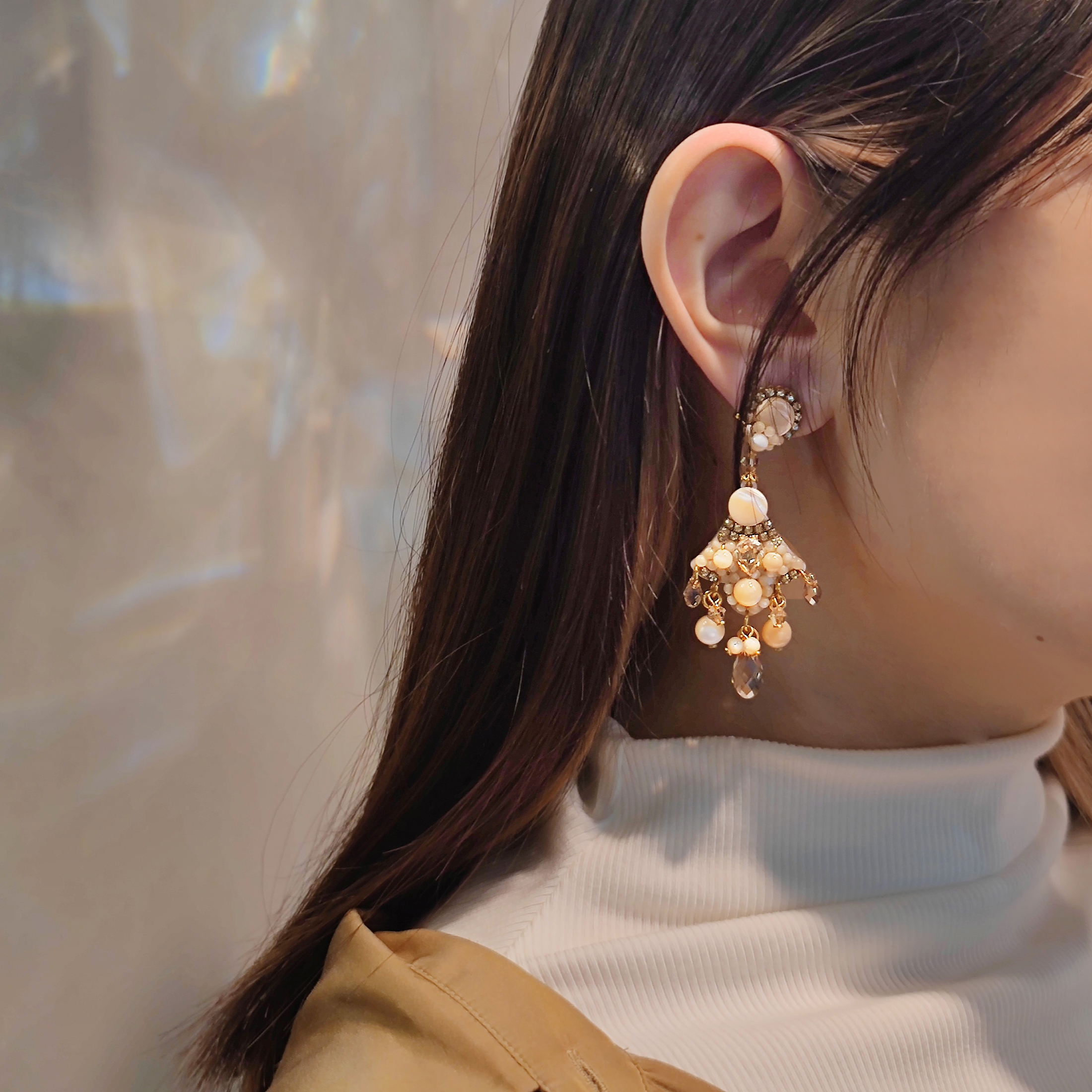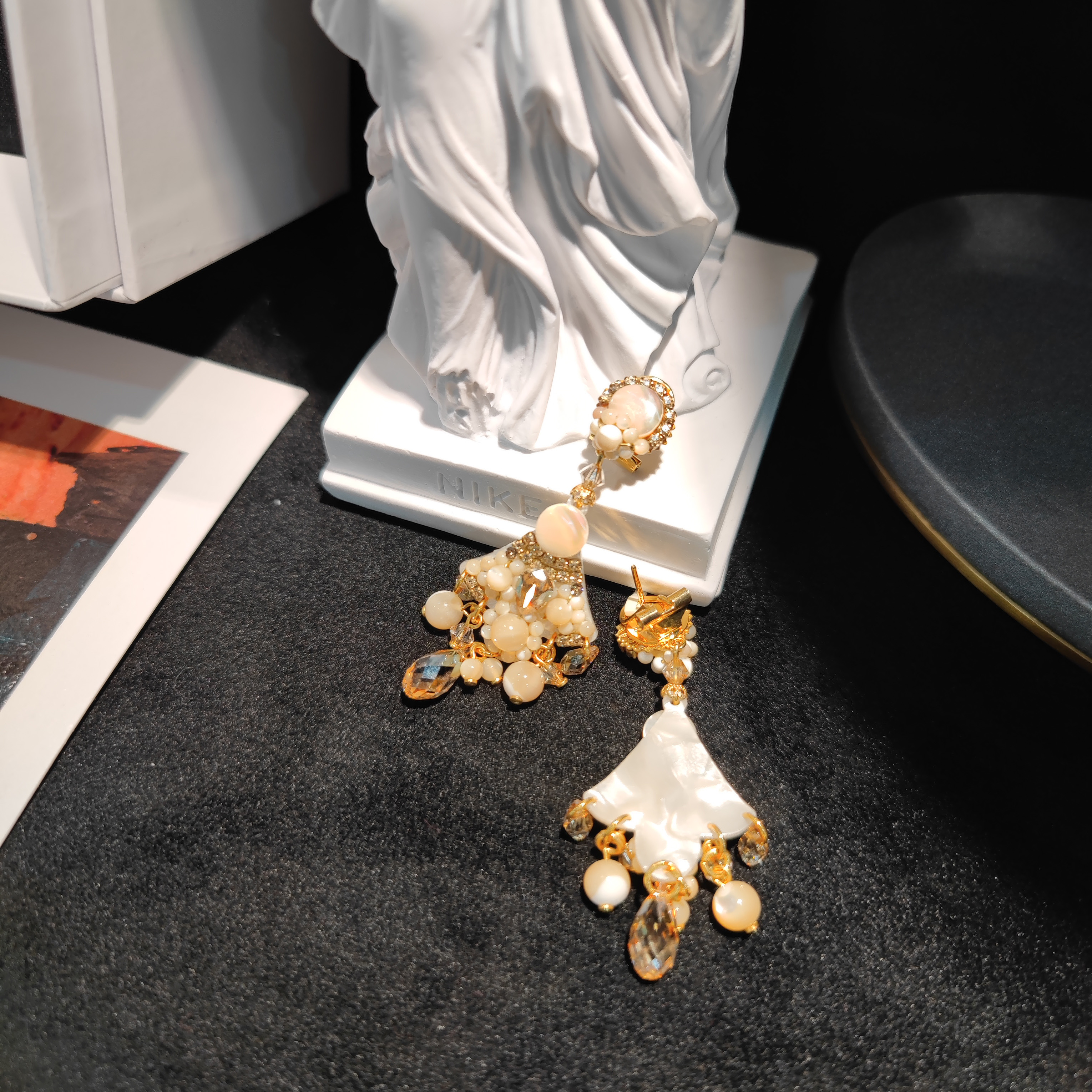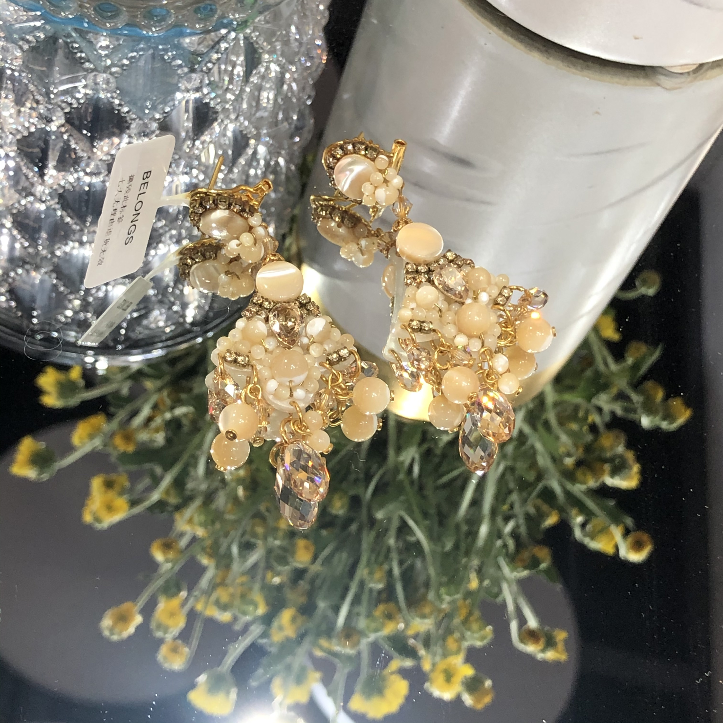耳环材质为:珠宝级合金镀14K黄金 施华洛世奇水晶 珠宝级树脂 人工玻璃水晶