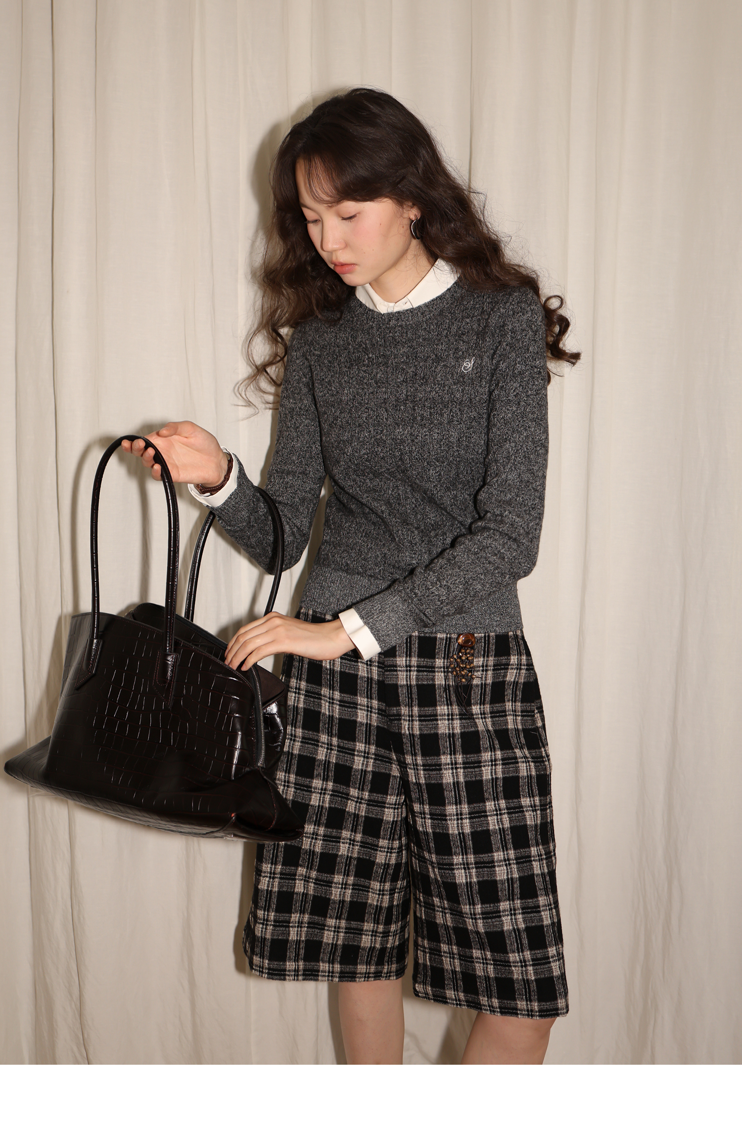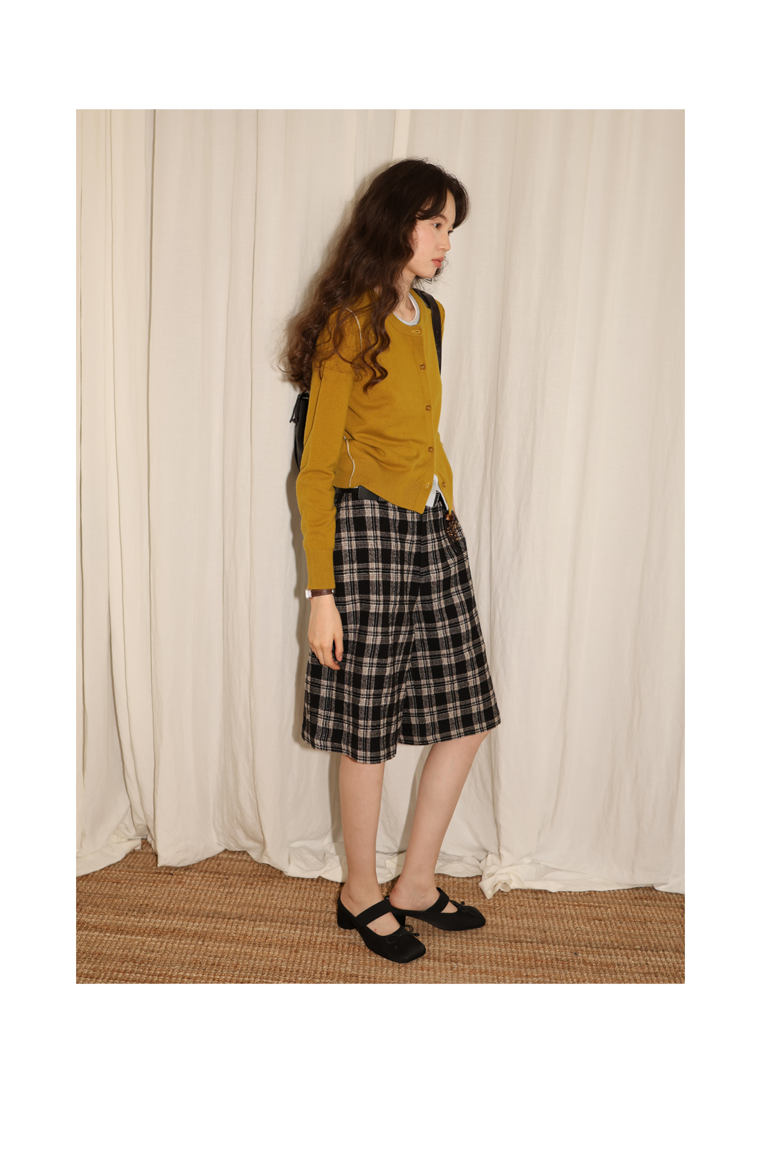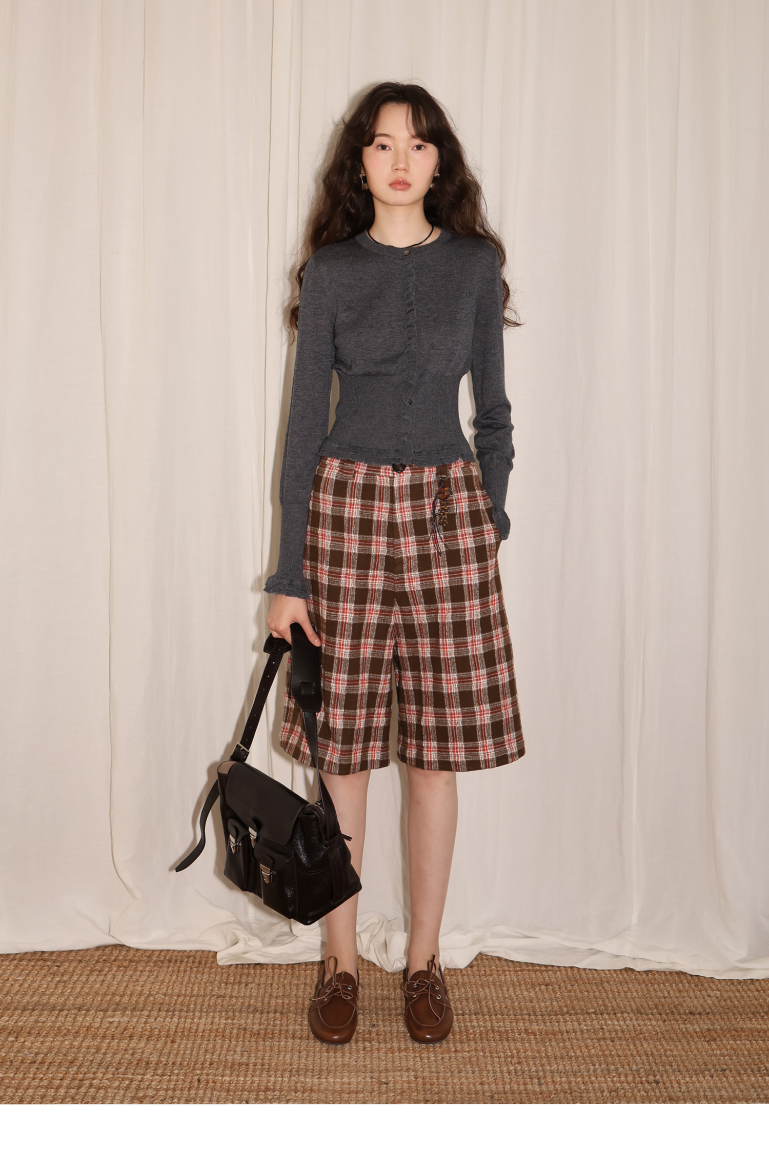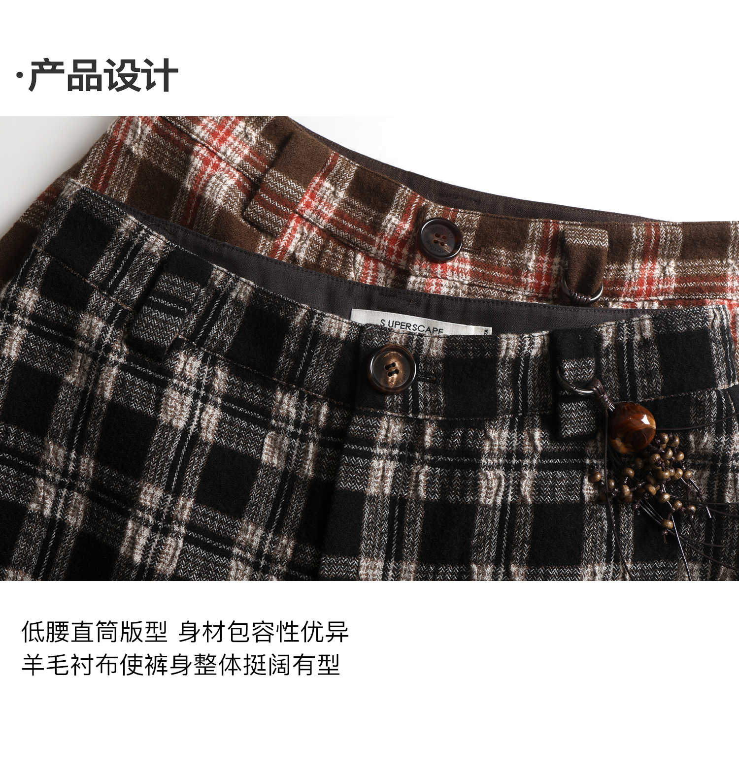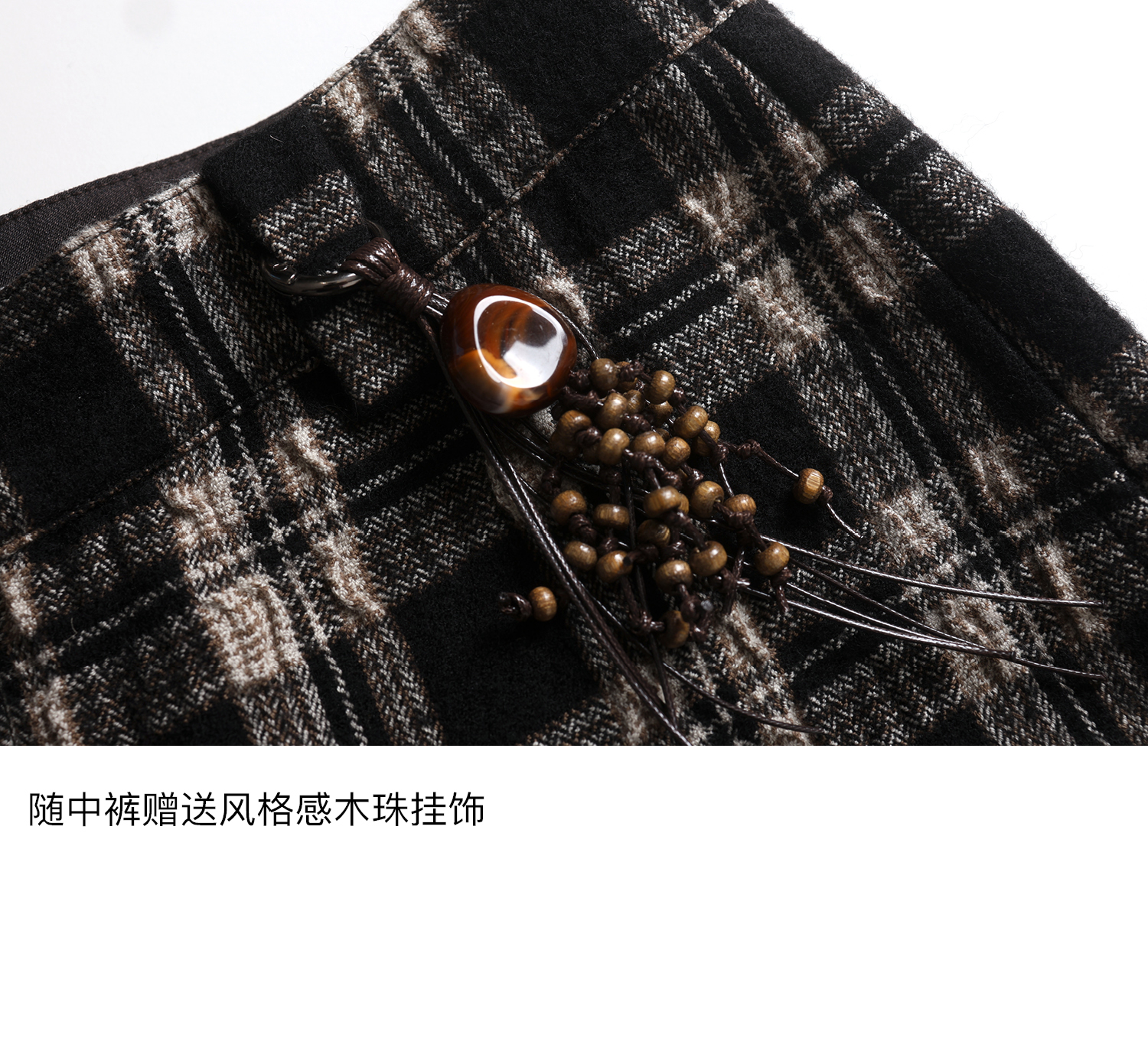【8/6新品】素舶羊毛薄呢格纹直筒中裤 搭配神器/送木珠挂饰