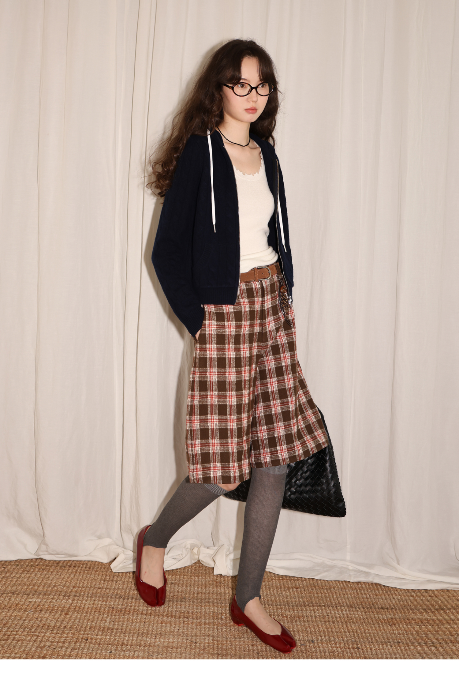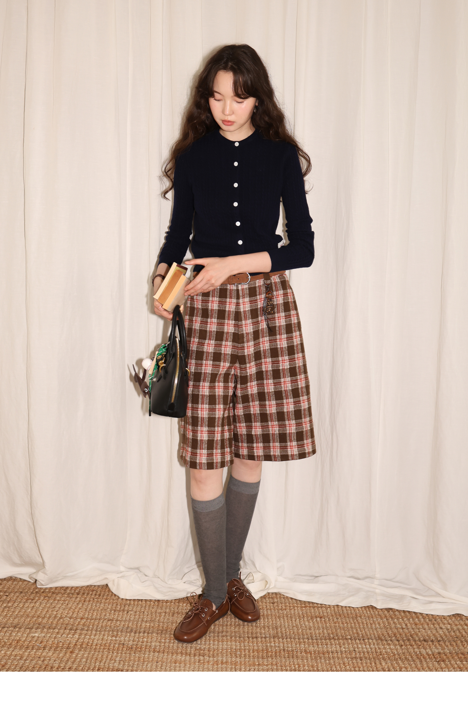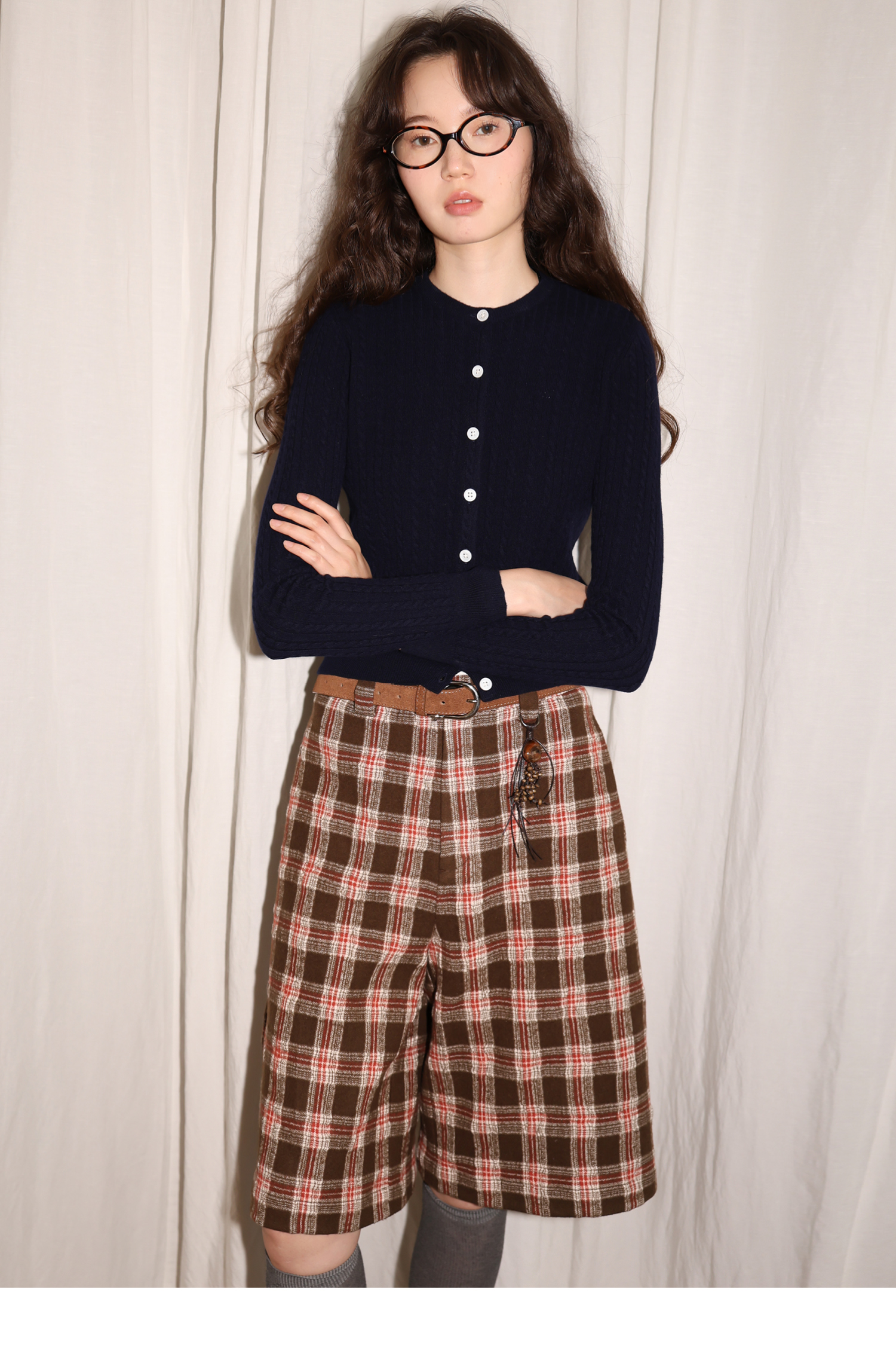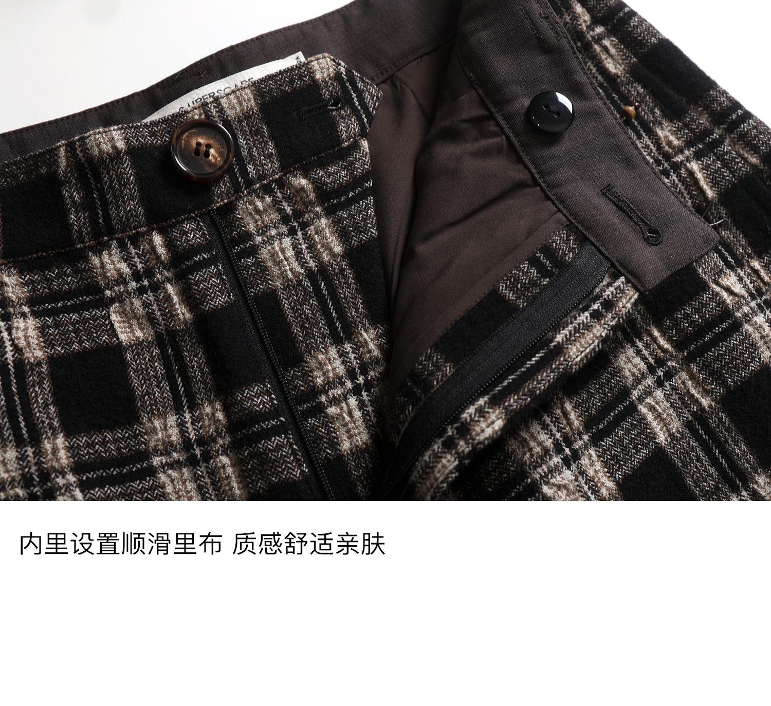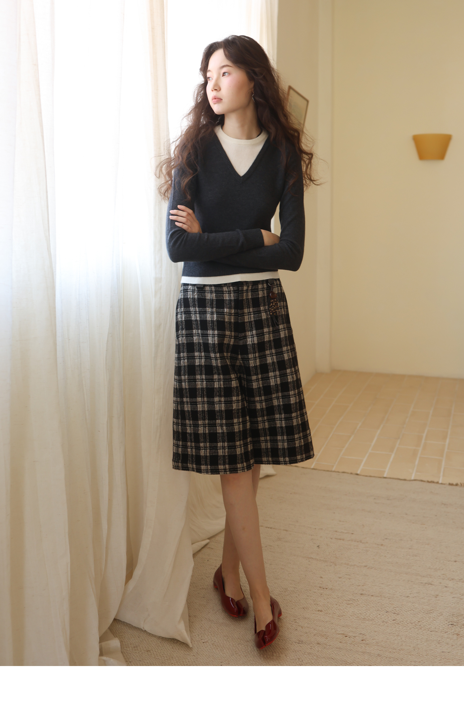 【8/6新品】素舶羊毛薄呢格纹直筒中裤 搭配神器/送木珠挂饰