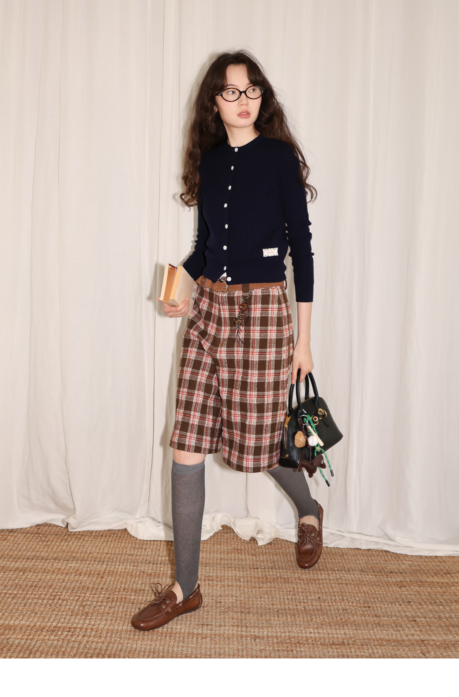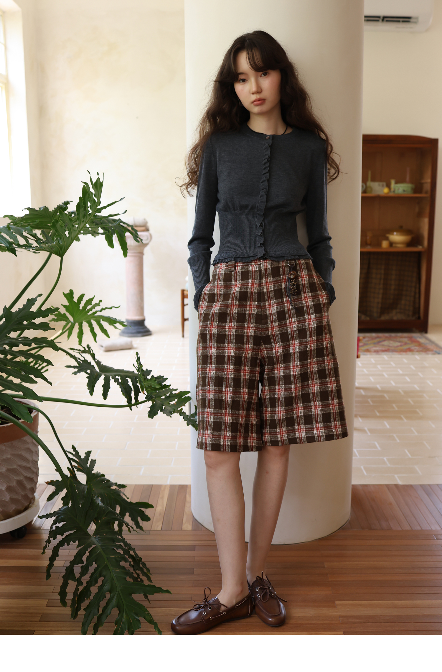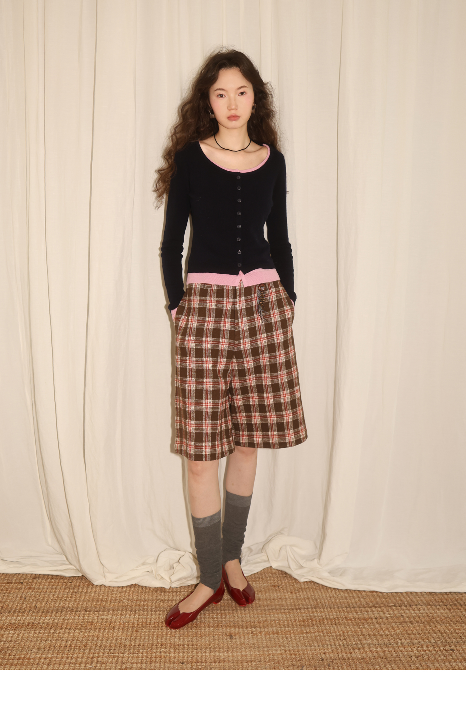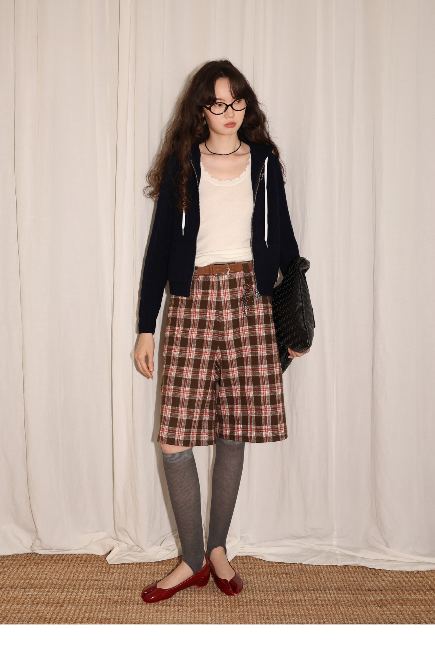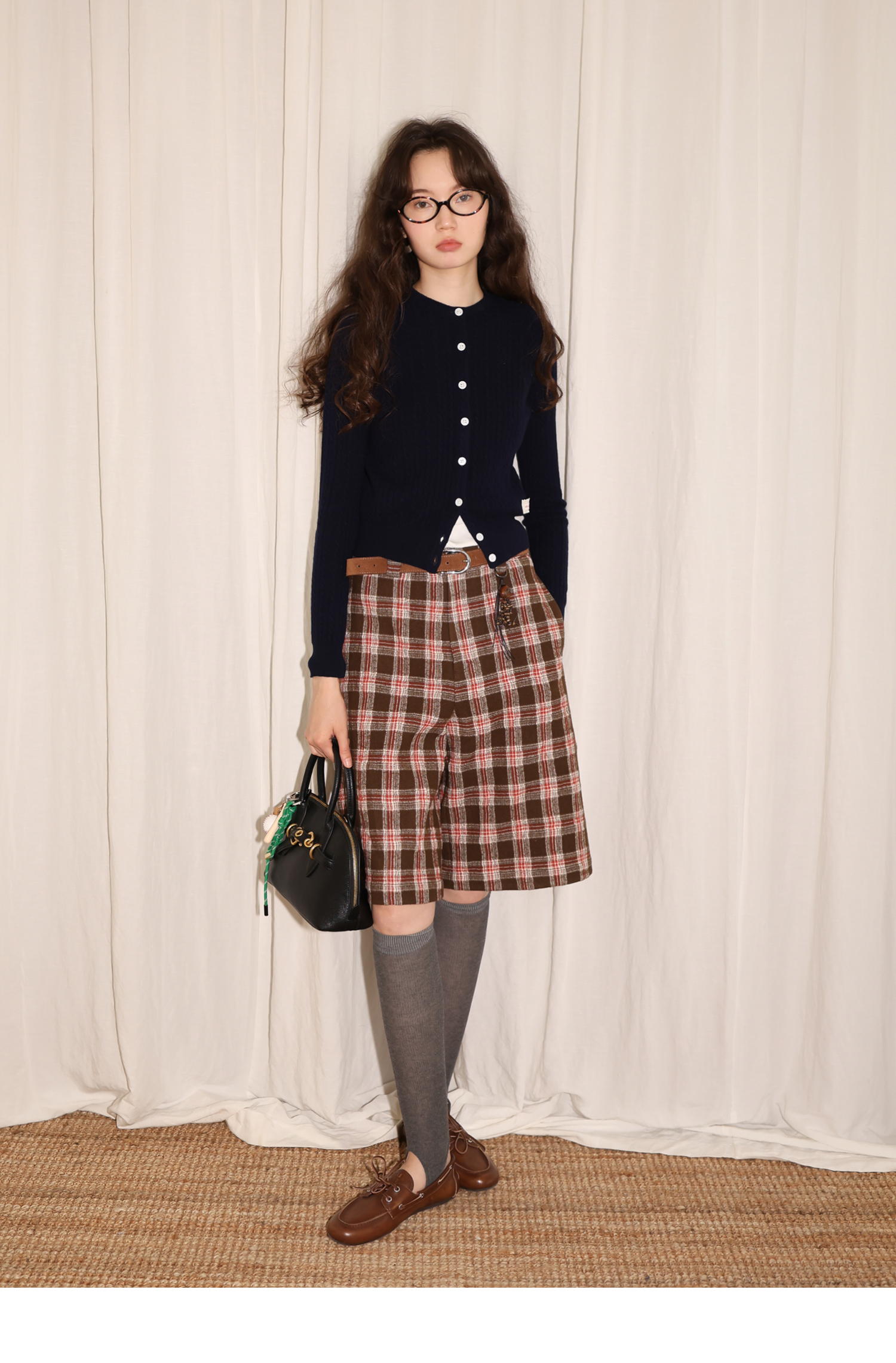 【8/6新品】素舶羊毛薄呢格纹直筒中裤 搭配神器/送木珠挂饰