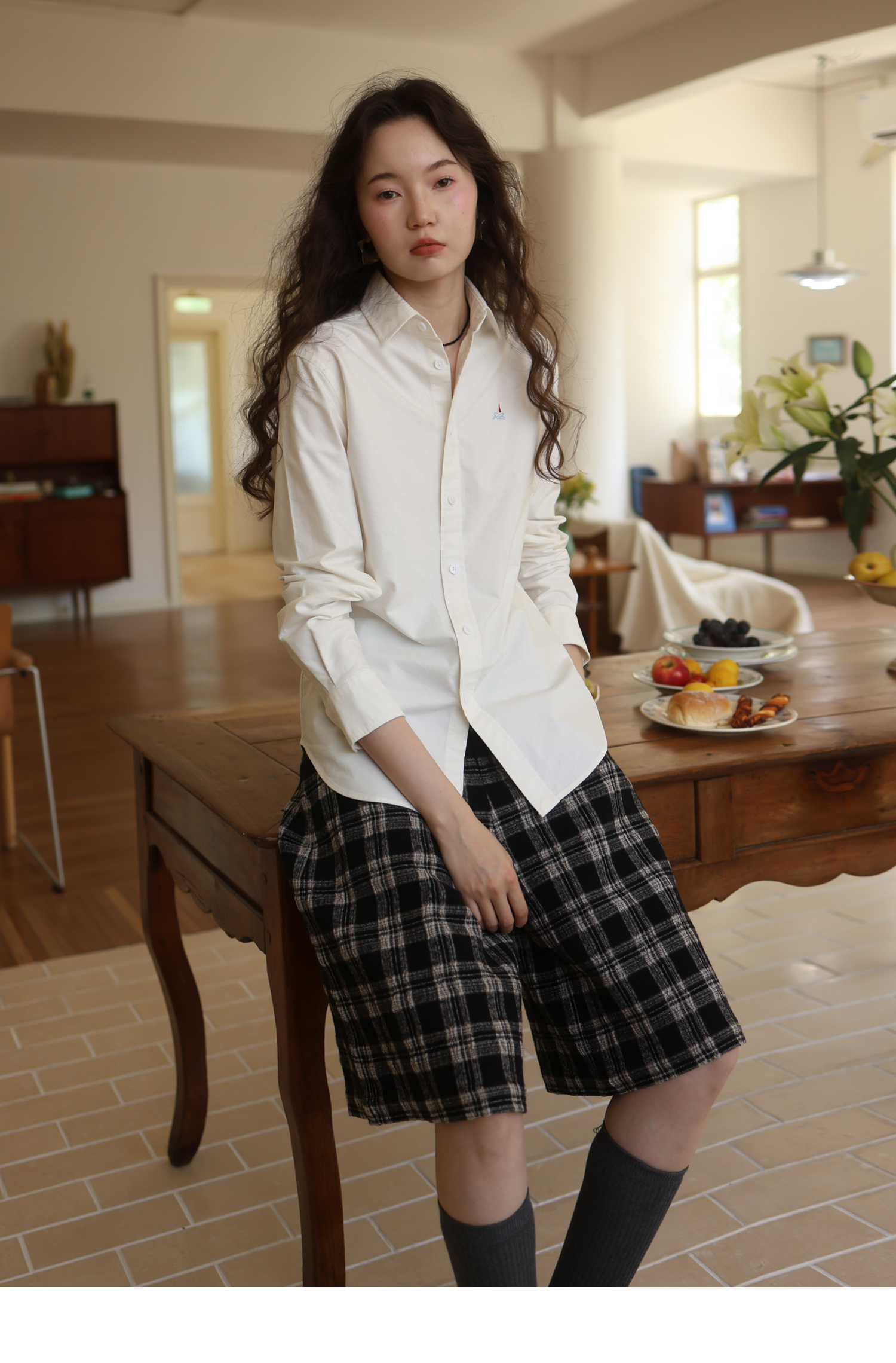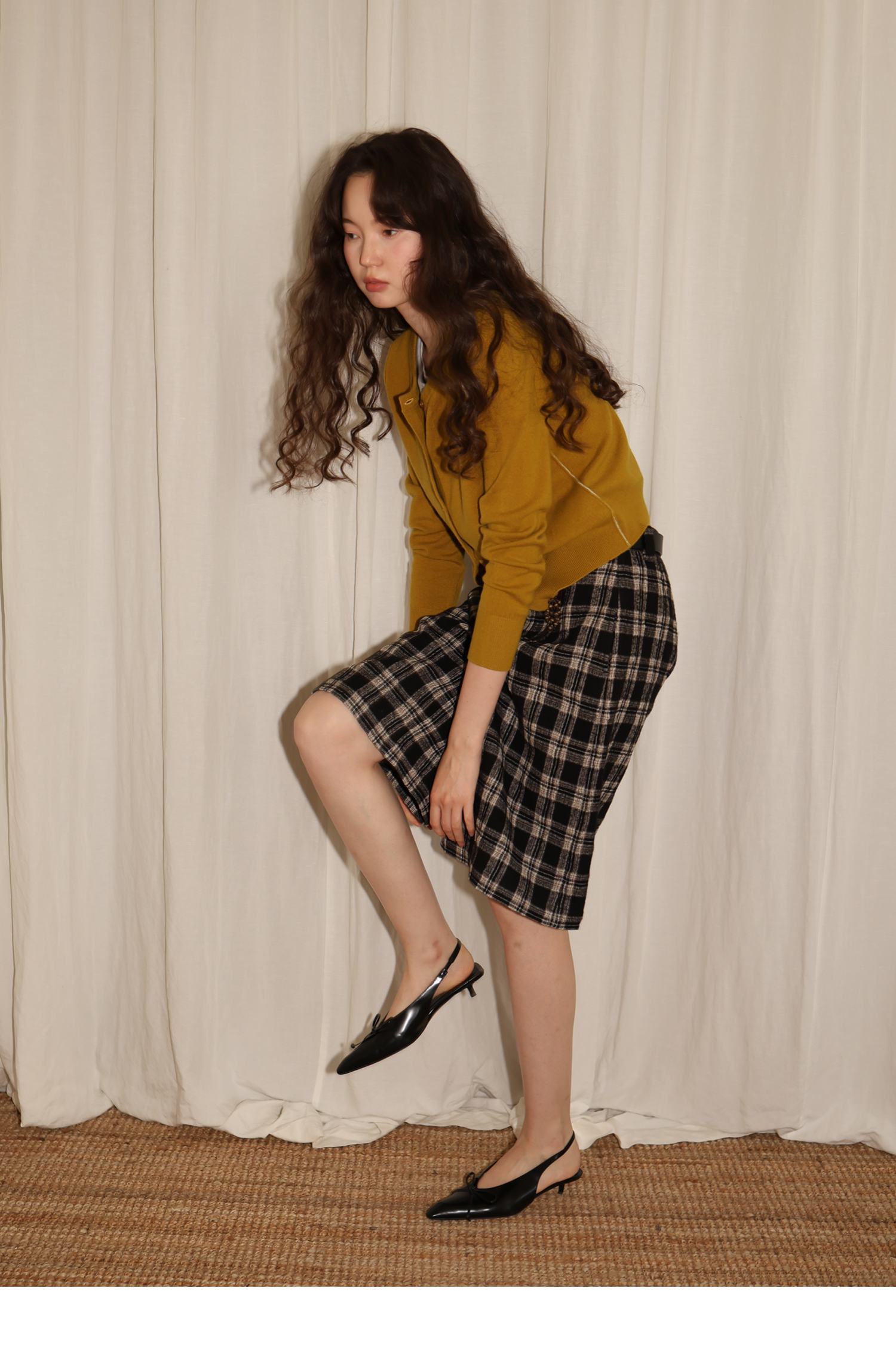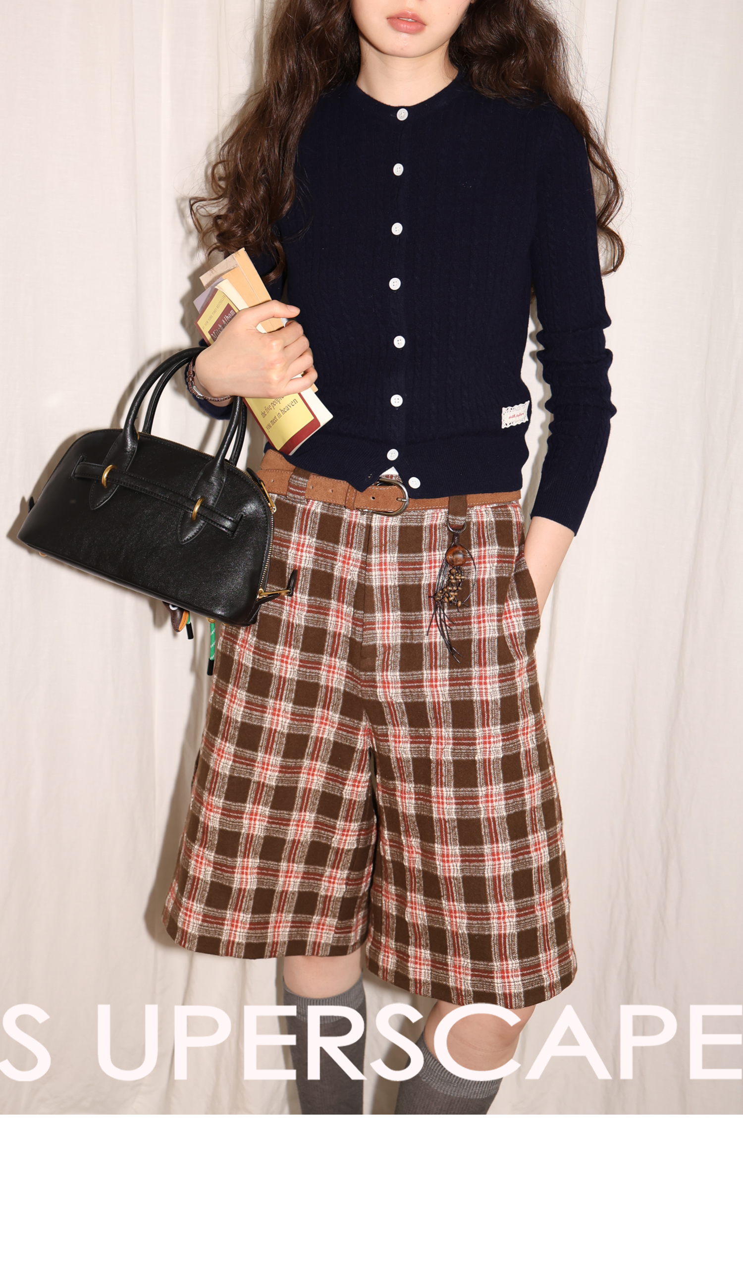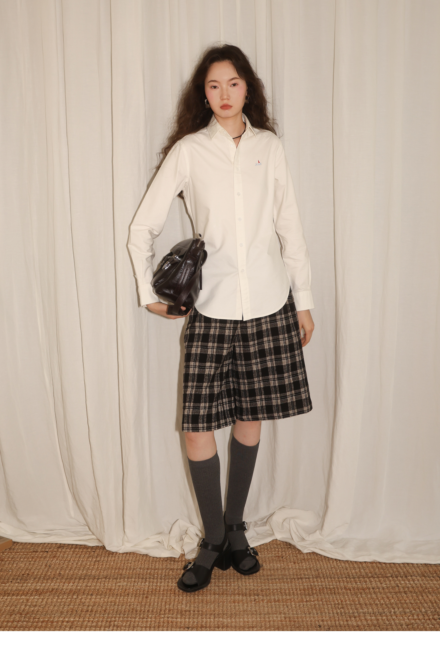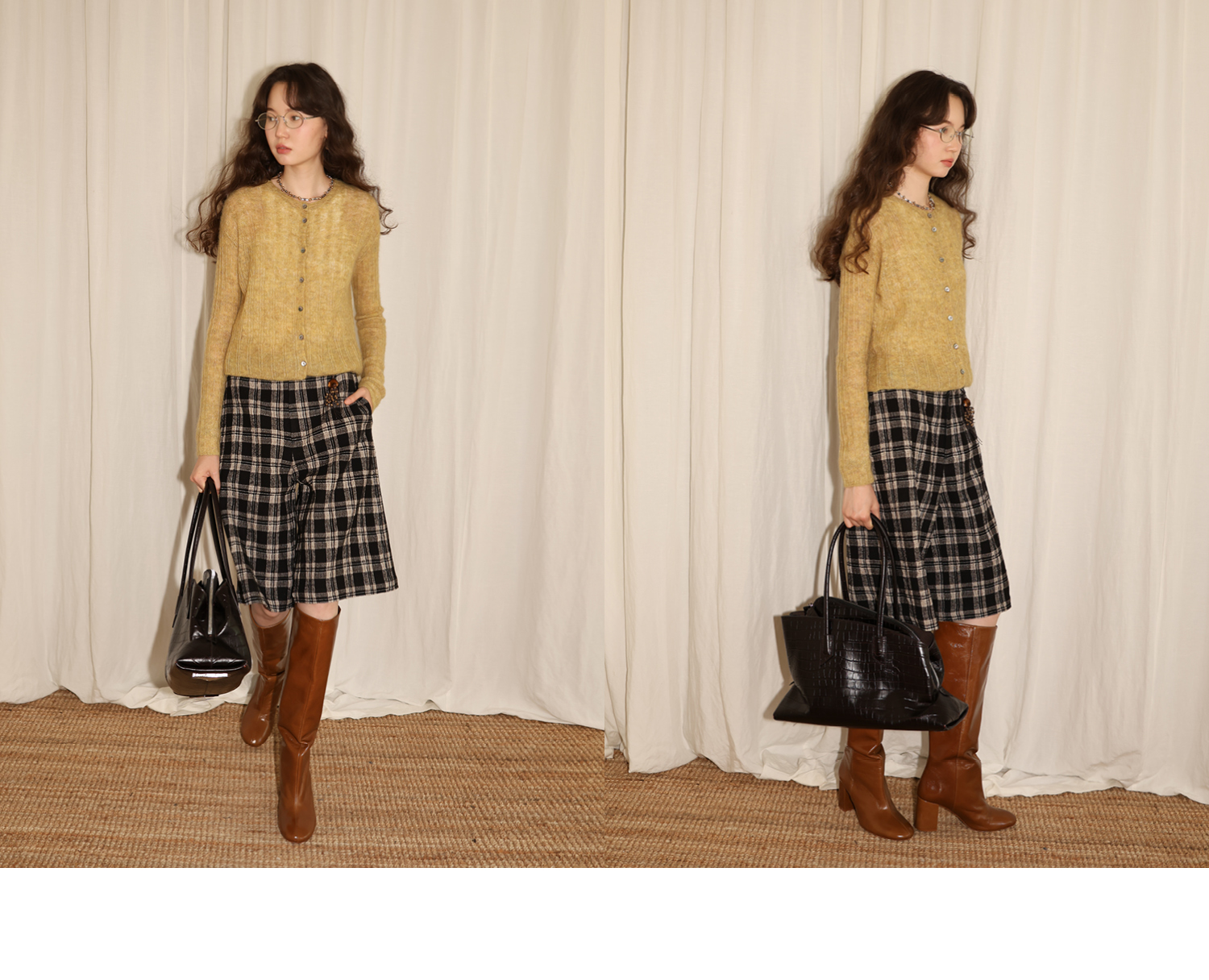 【8/6新品】素舶羊毛薄呢格纹直筒中裤 搭配神器/送木珠挂饰