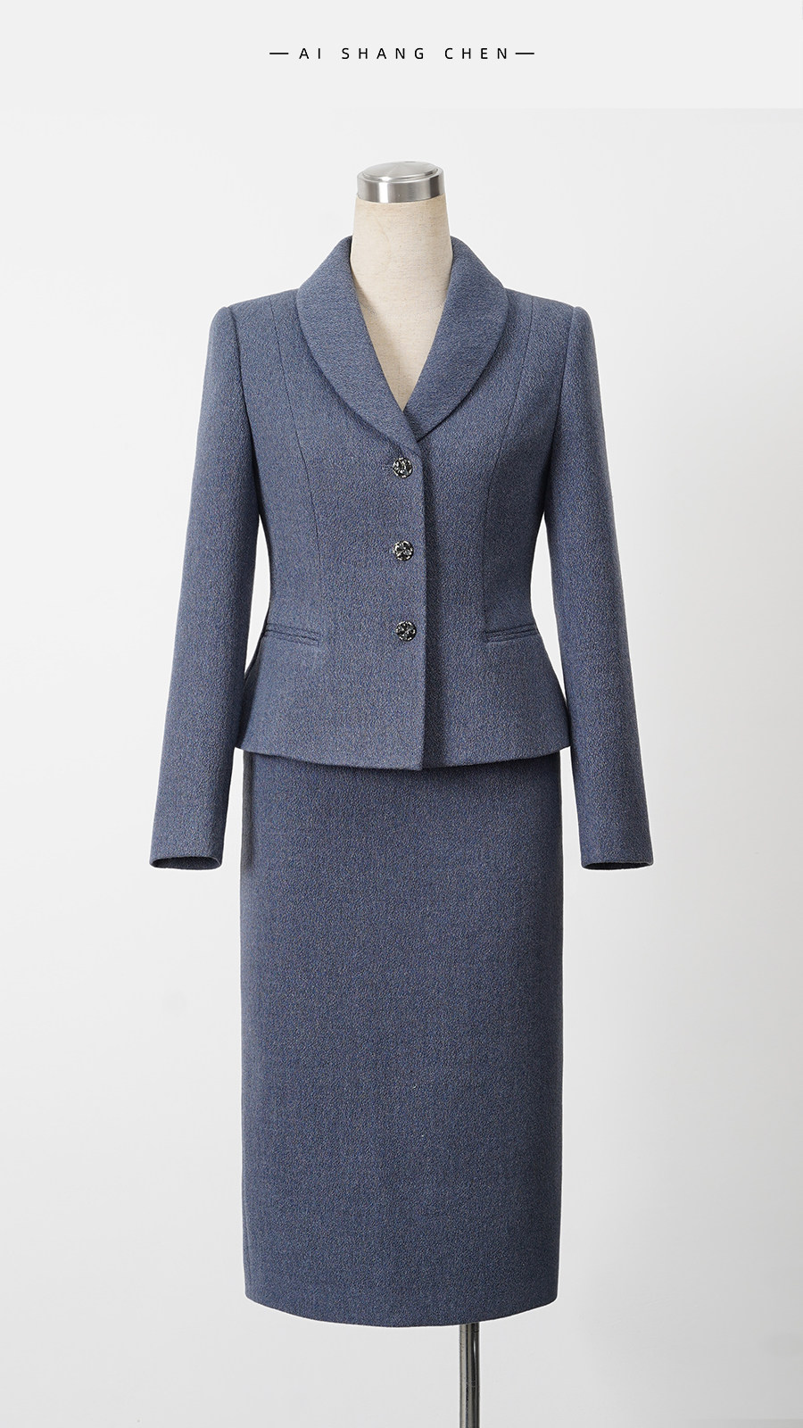 艾尚臣【迪木尔风】通勤毛呢子西装套装女职业装暖冬质简两件套厚