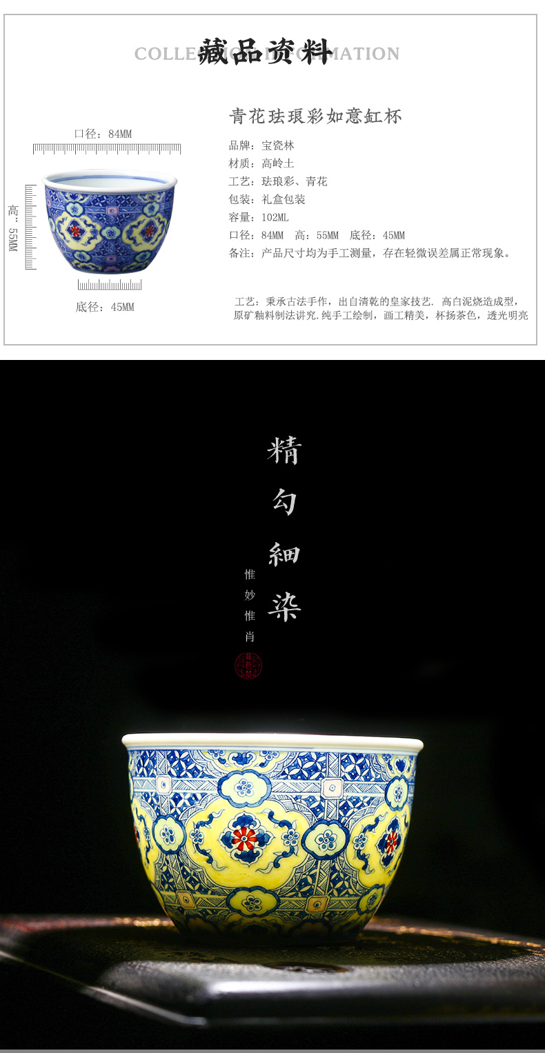 青花珐琅彩如意缸杯