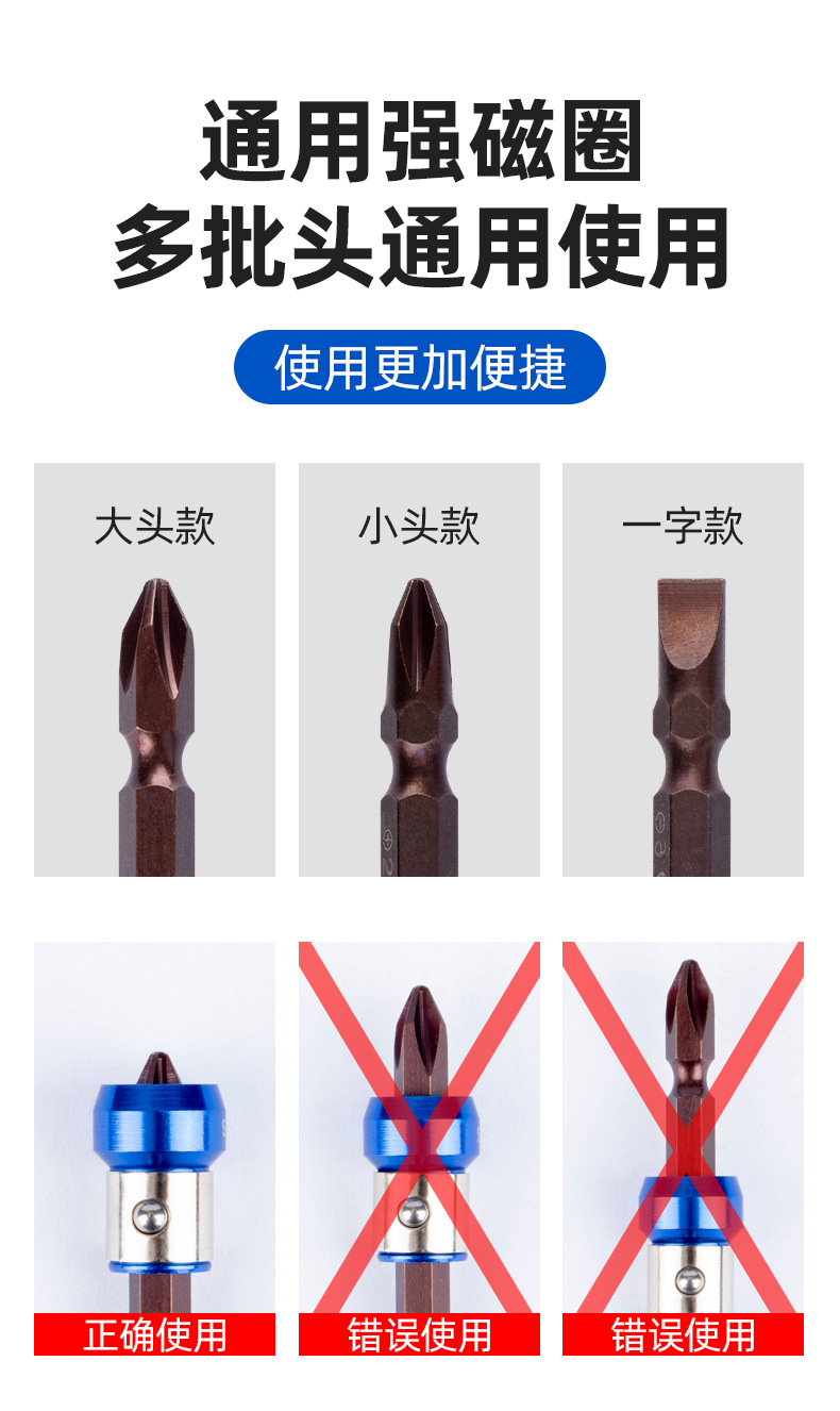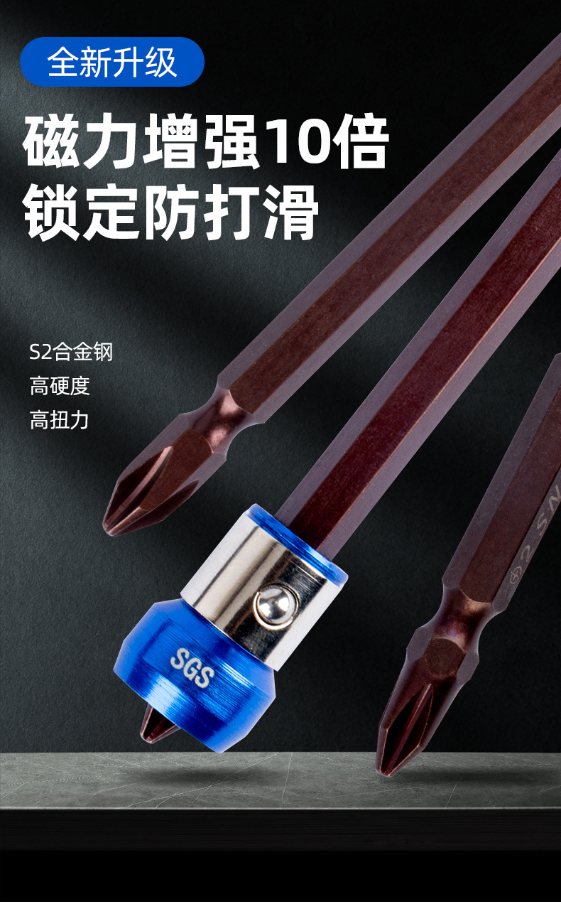 S2电动批头双头十字强磁圈环十字风起子头磁性通用圆形电钻金属加磁器1支
