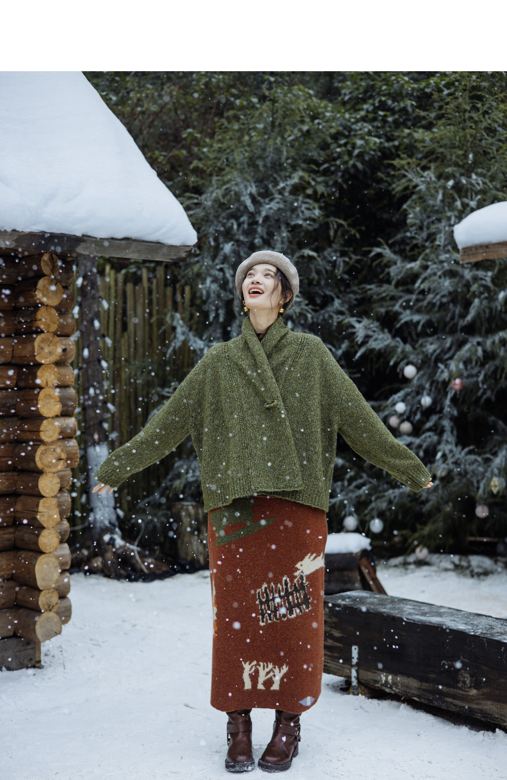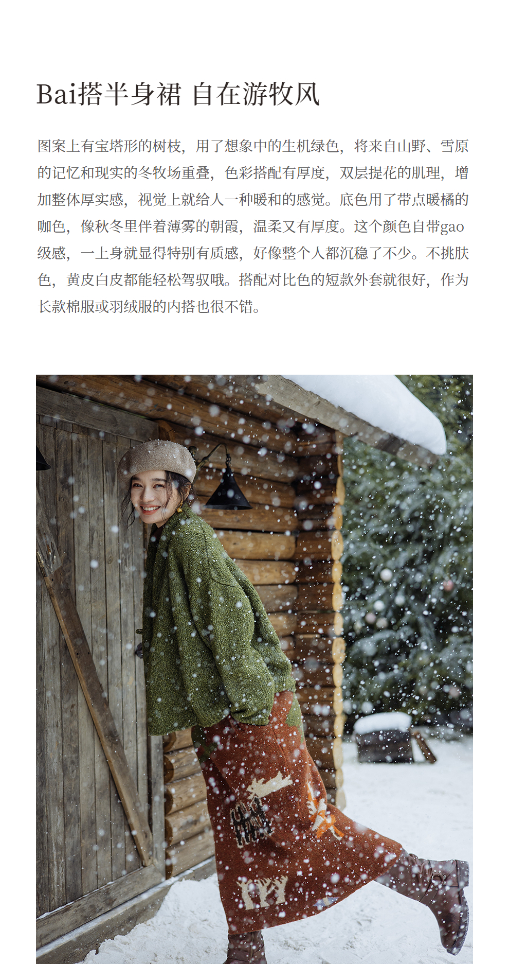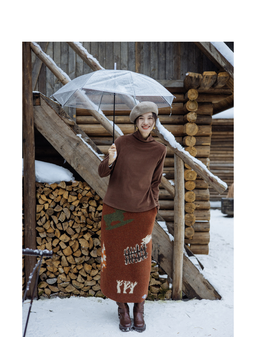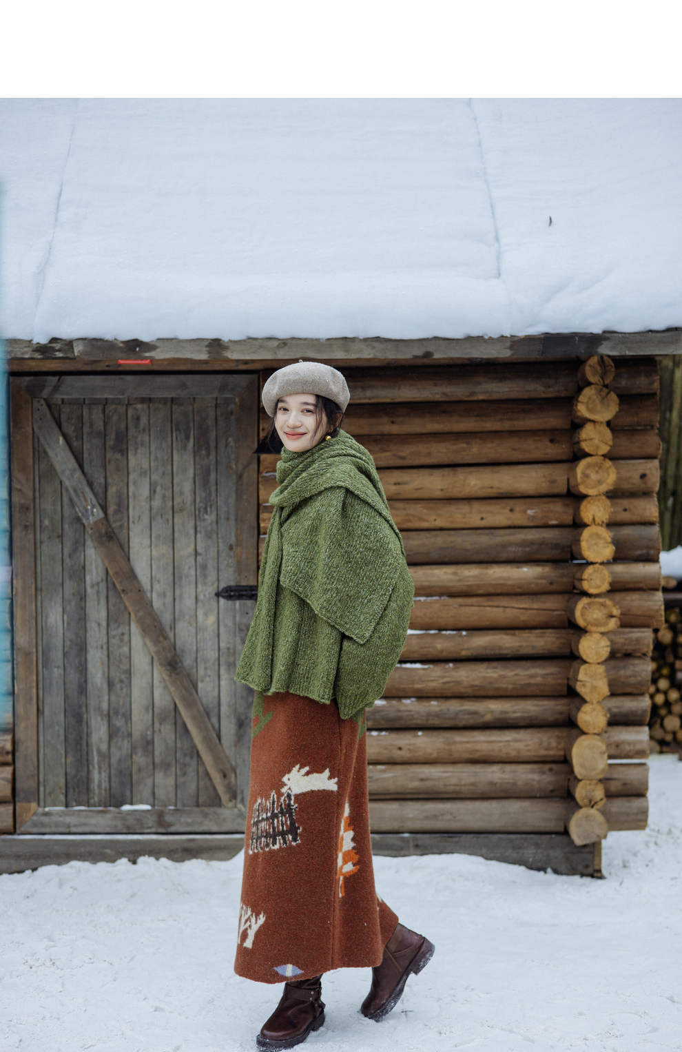 绽放832朵/羊毛卷冬牧场动物主题提花松紧腰百搭毛织半身中长裙