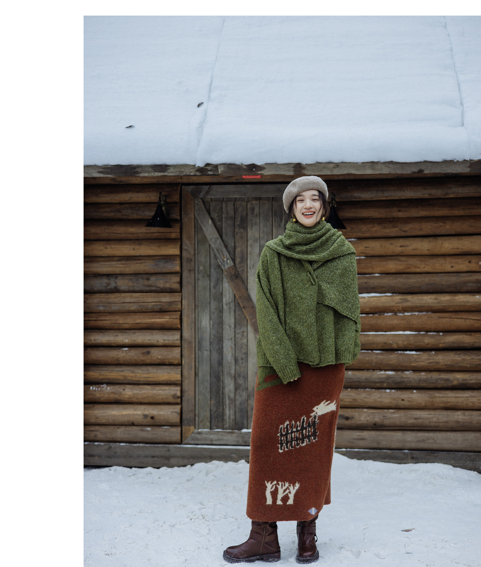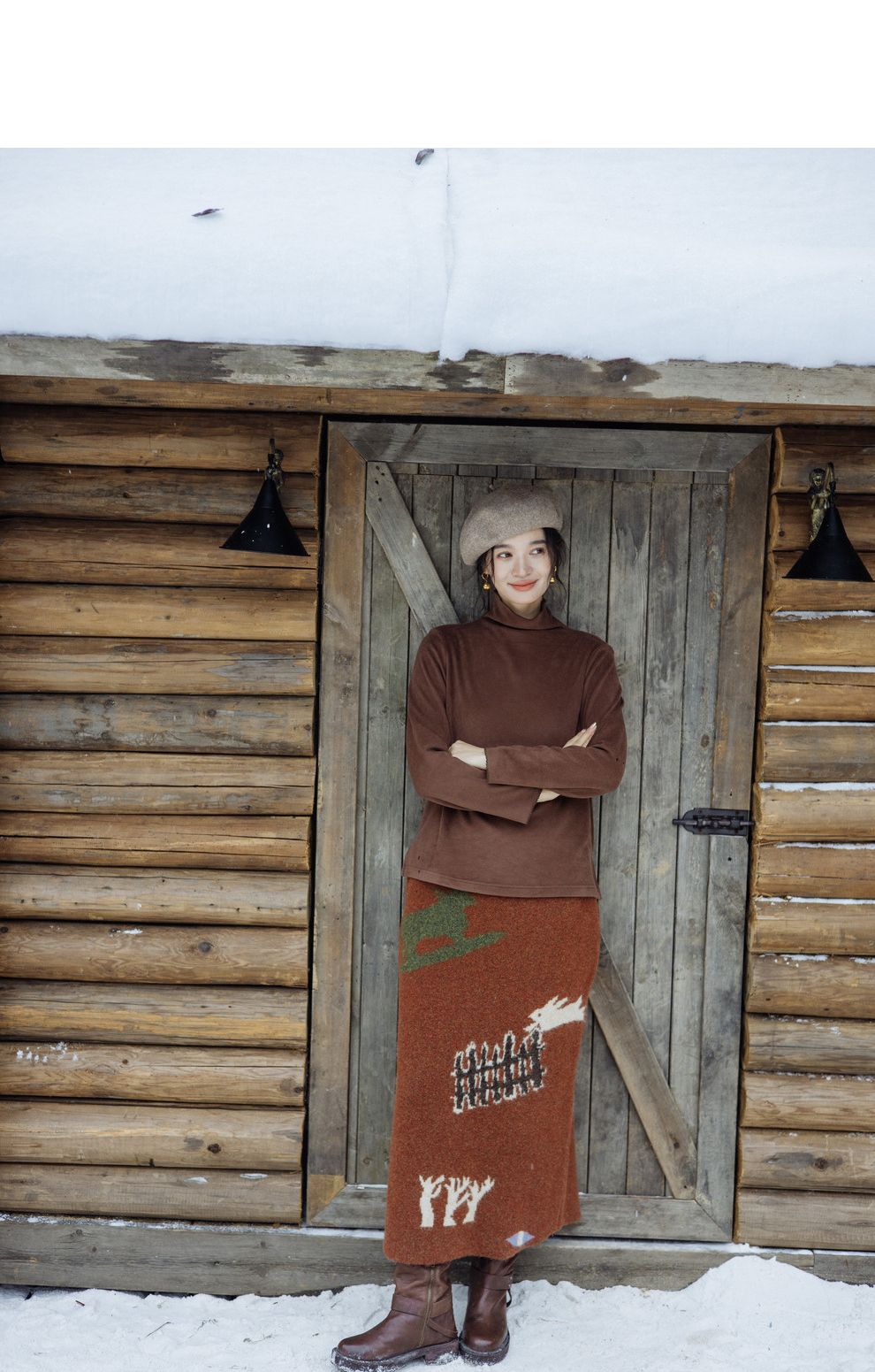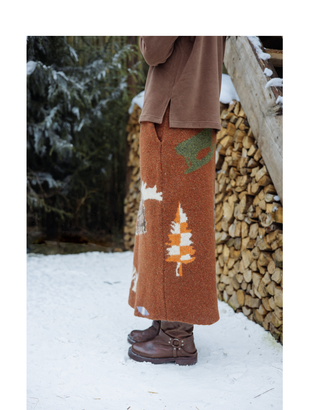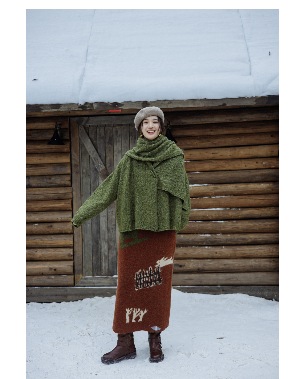 绽放832朵/羊毛卷冬牧场动物主题提花松紧腰百搭毛织半身中长裙