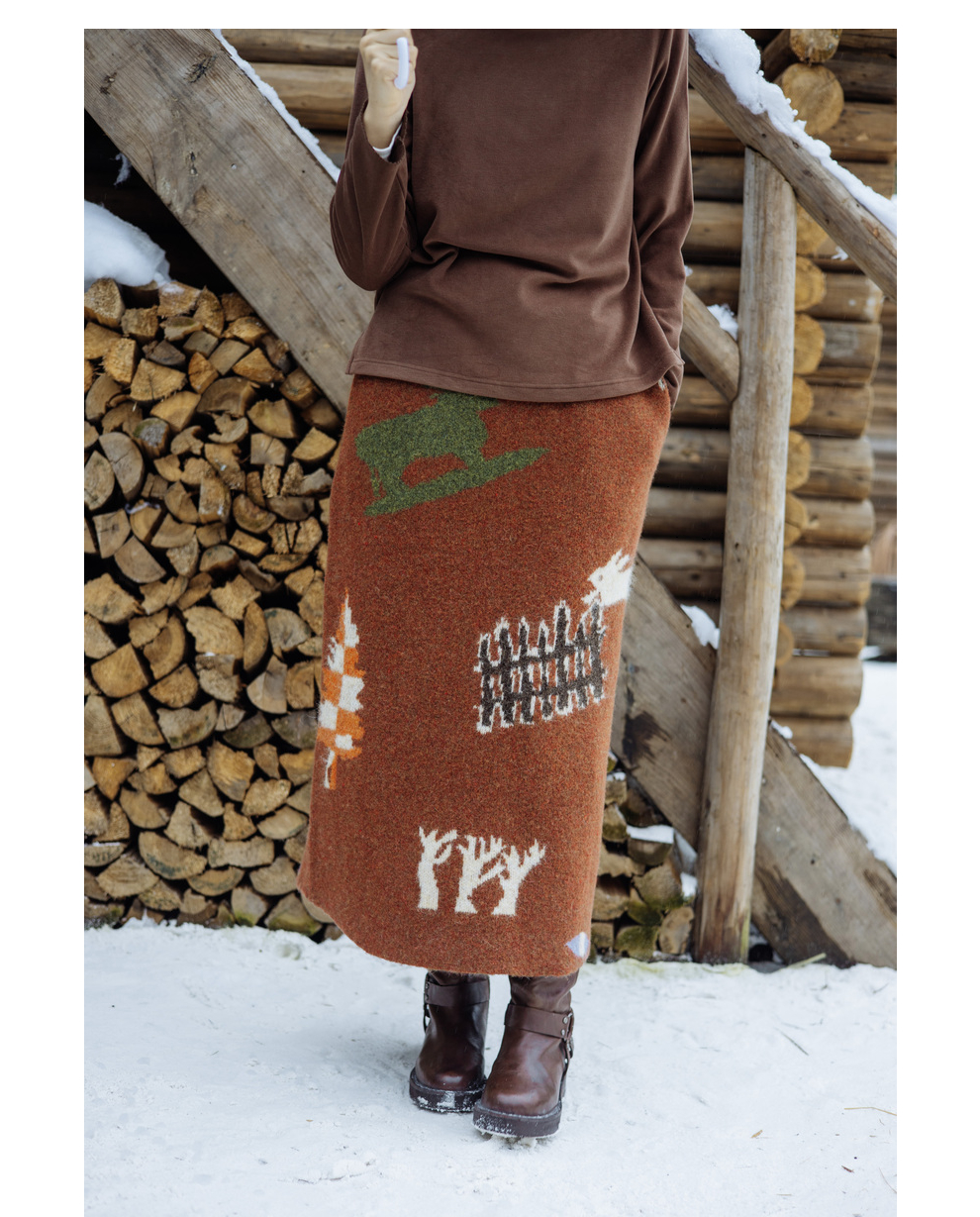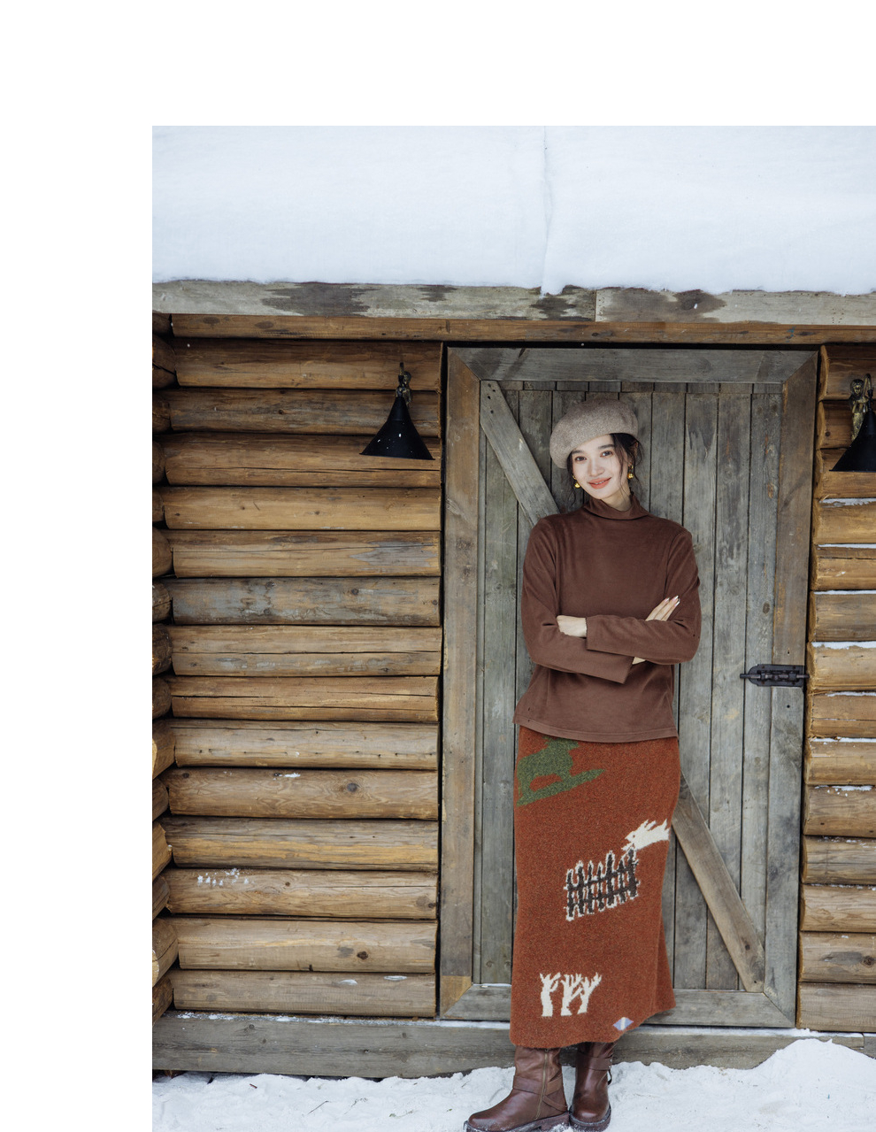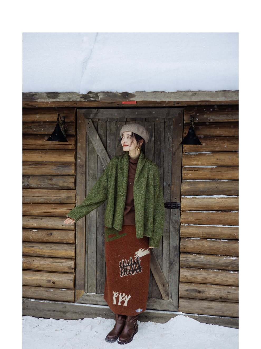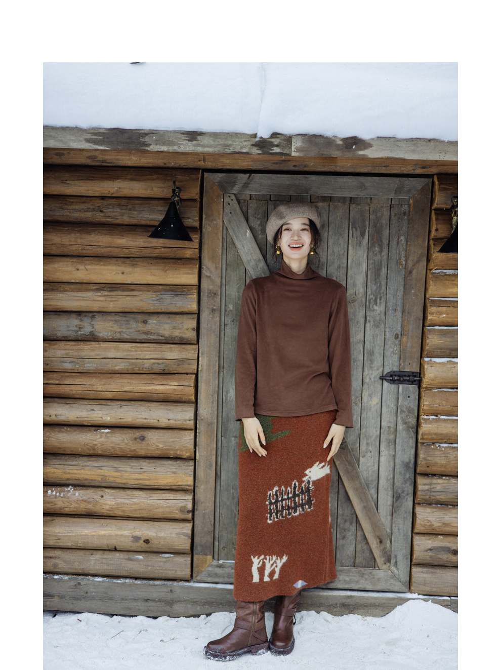 绽放832朵/羊毛卷冬牧场动物主题提花松紧腰百搭毛织半身中长裙