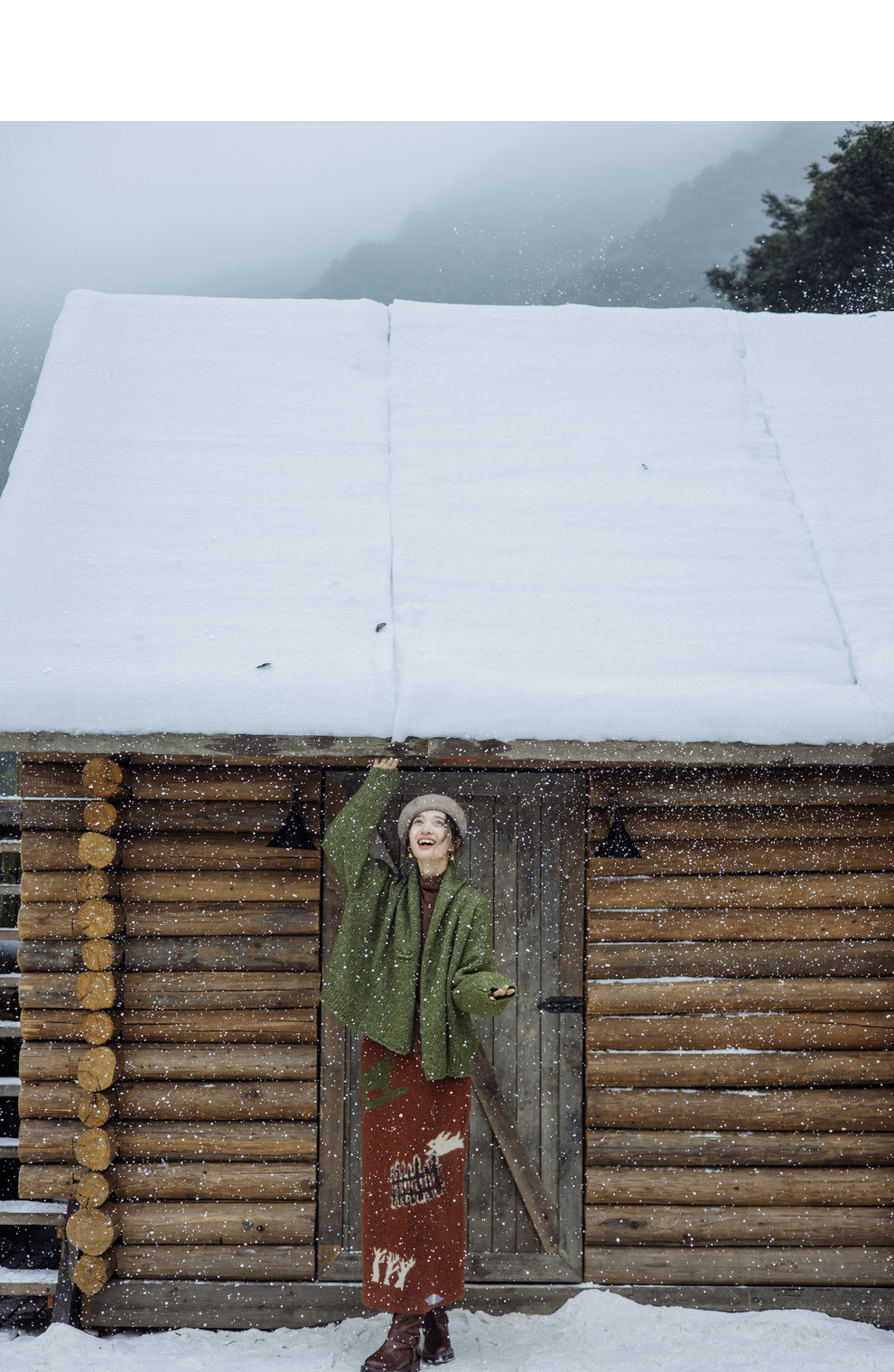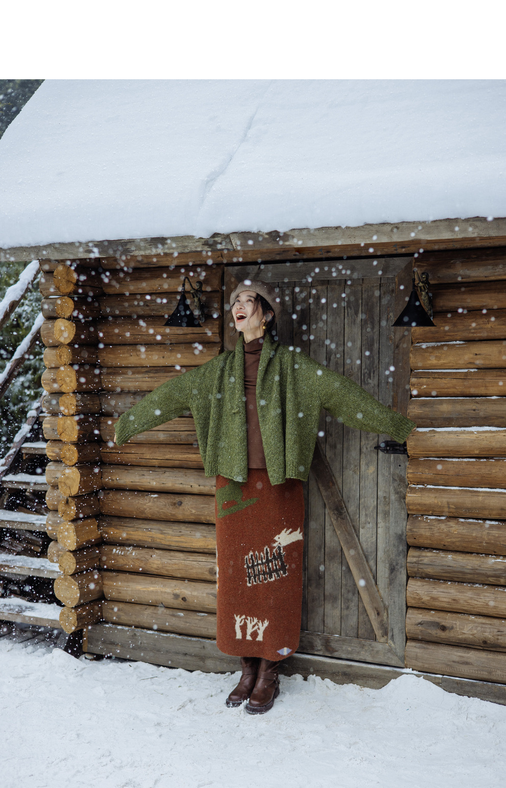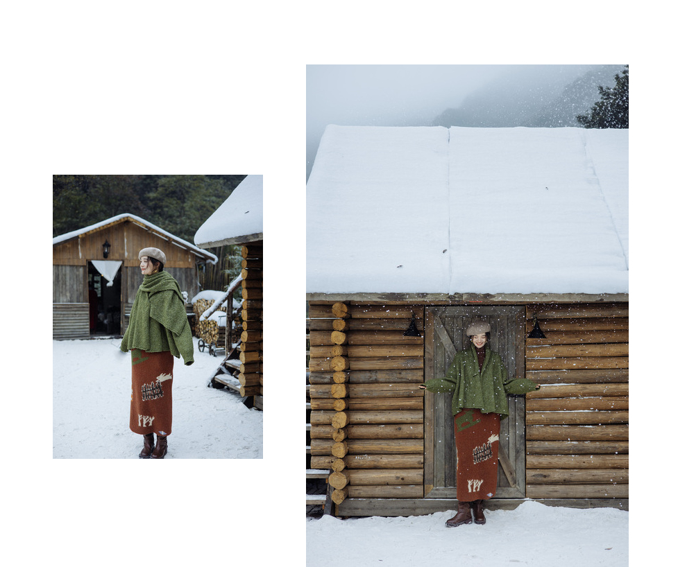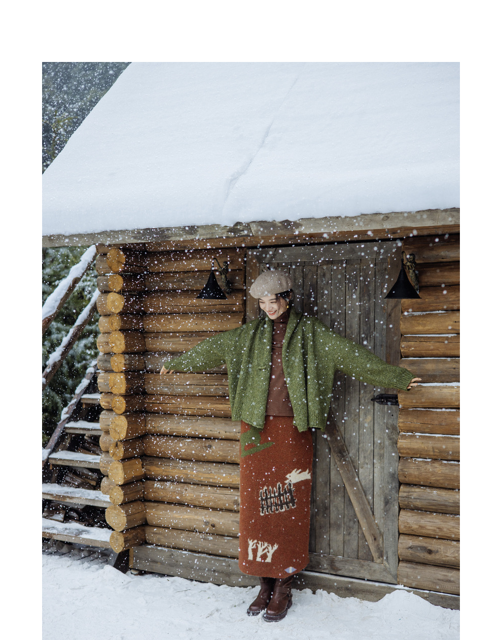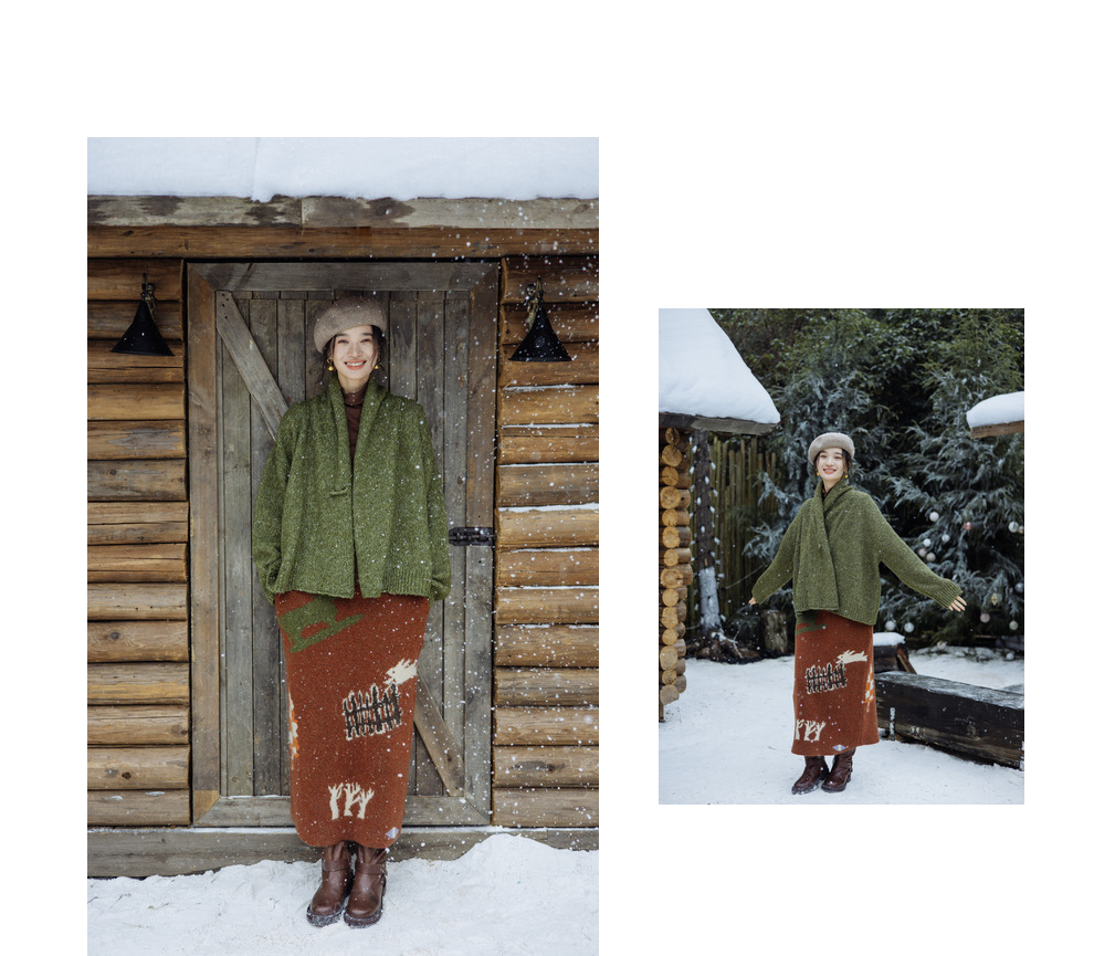 绽放832朵/羊毛卷冬牧场动物主题提花松紧腰百搭毛织半身中长裙